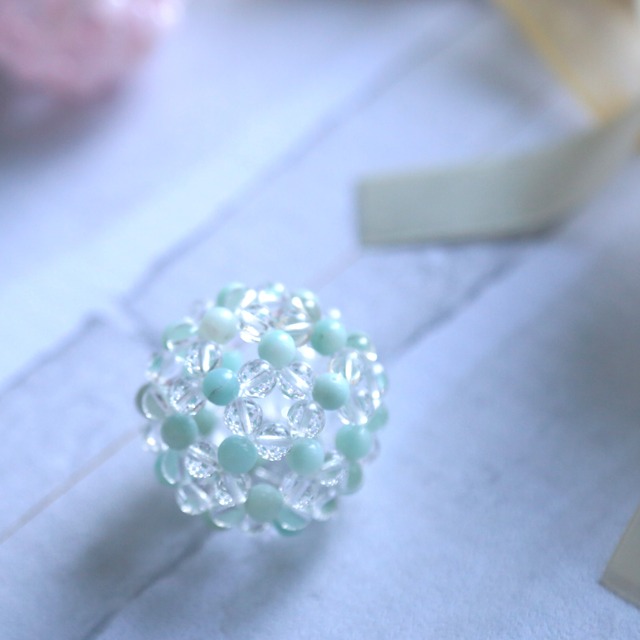 水晶にアマゾナイトを合わせたフラーレン♡ 直径約4.5センチ アマゾナイトは『ホープストーン』とも言われ 望みを叶えるエネルギーのストーンと言われています♡ 優しい水色✨ お部屋に、玄関に、仕事場に・・ 置いておいて頂くだけで宇宙エネルギーの受信機・循環器として お守りとしても♡ サンキャッチャーのように窓際にぶら下げてもらってもいいし 置き方・飾り方、使い方は自由です♡ ☆cosmic energy witch♡宇宙エネルギーの魔女 『宇宙と地球を撮る写真家』 『高波動エネルギーアーティスト』 『優しい魔女の魔法のハーブ』 『エネルギー調整アクセサリー作家』 等々たくさんの顔を持つクリエイターようこのショップページをご訪問頂き ありがとうございます♡ 『物質』『商品』としてだけではなく、高波動やエネルギーを共にお受け取り頂き ご縁を頂きました皆様の『今』や『未来』の最幸のためのお手伝いをさせて頂くことができましたら 本当に本当に幸せに想います LOVE PEACE HARMONY FREE フラーレン 天然石 水晶 クリスタル 宇宙エネルギー