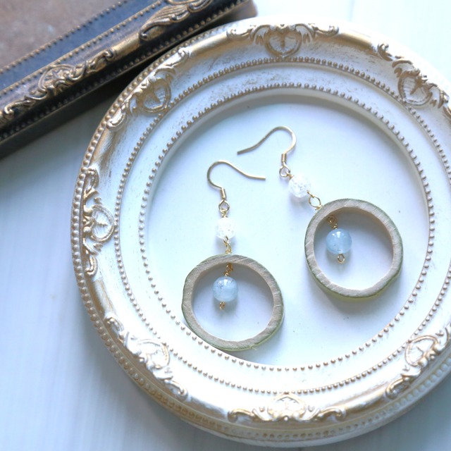 (試作価格)【bamboo&アクアマリン】ピアス(イヤリングに変更可)