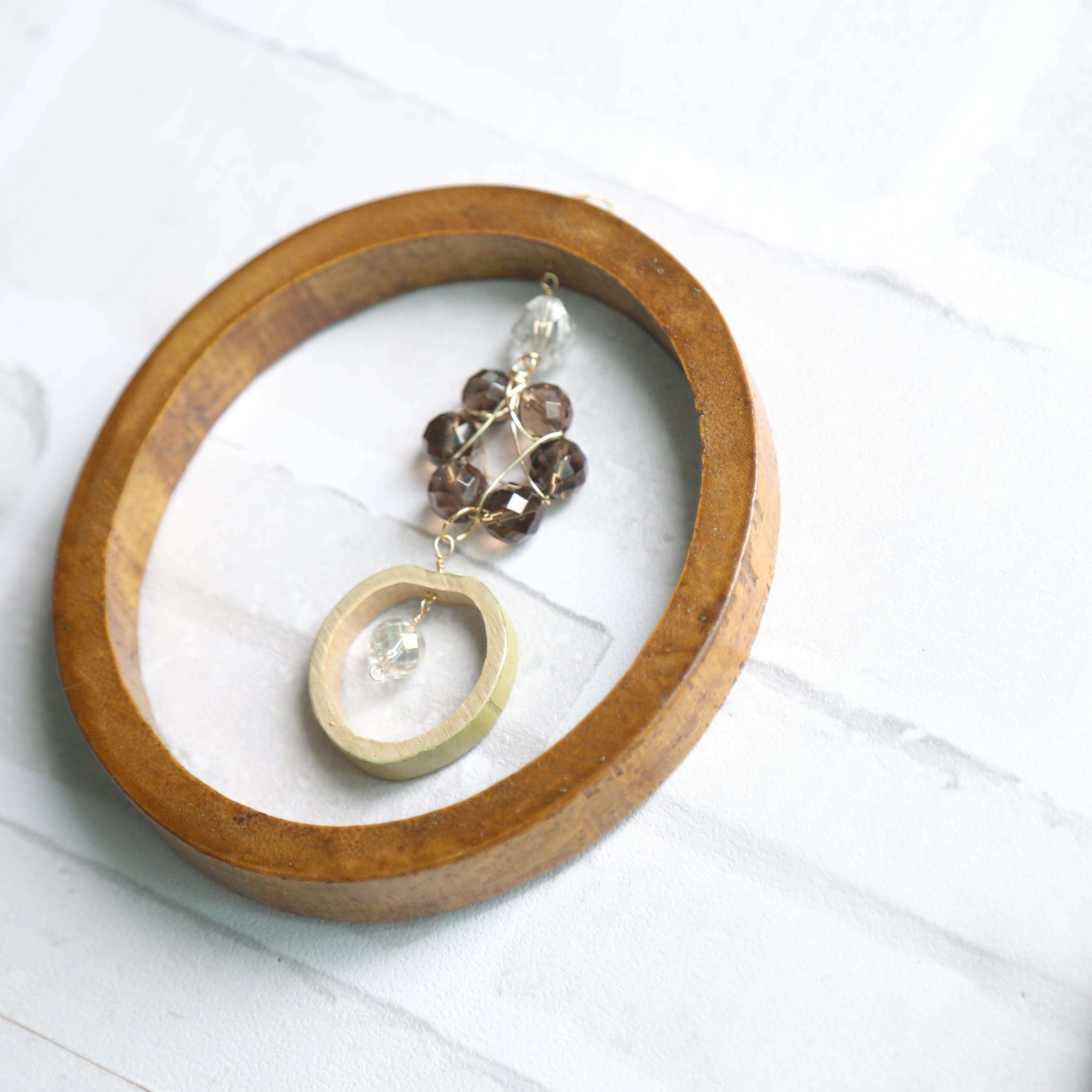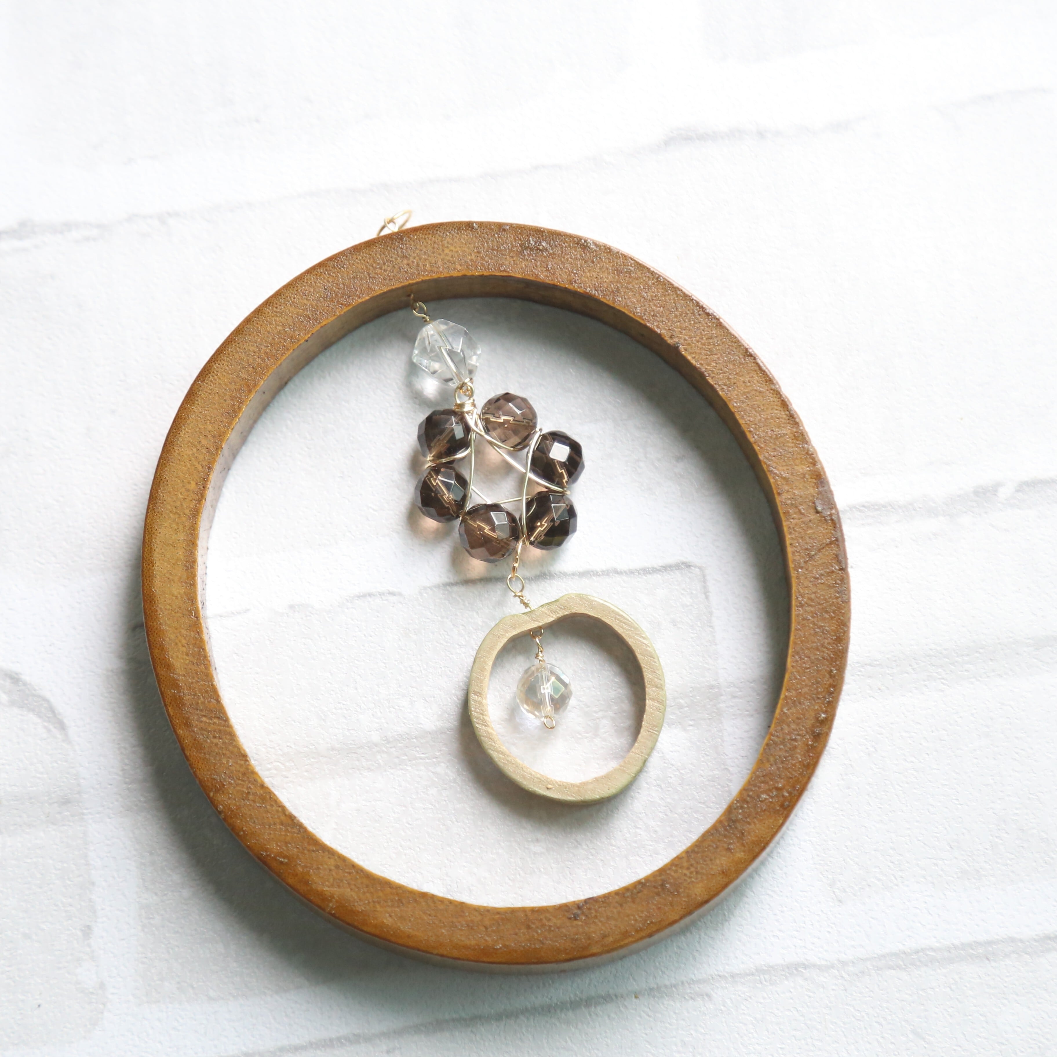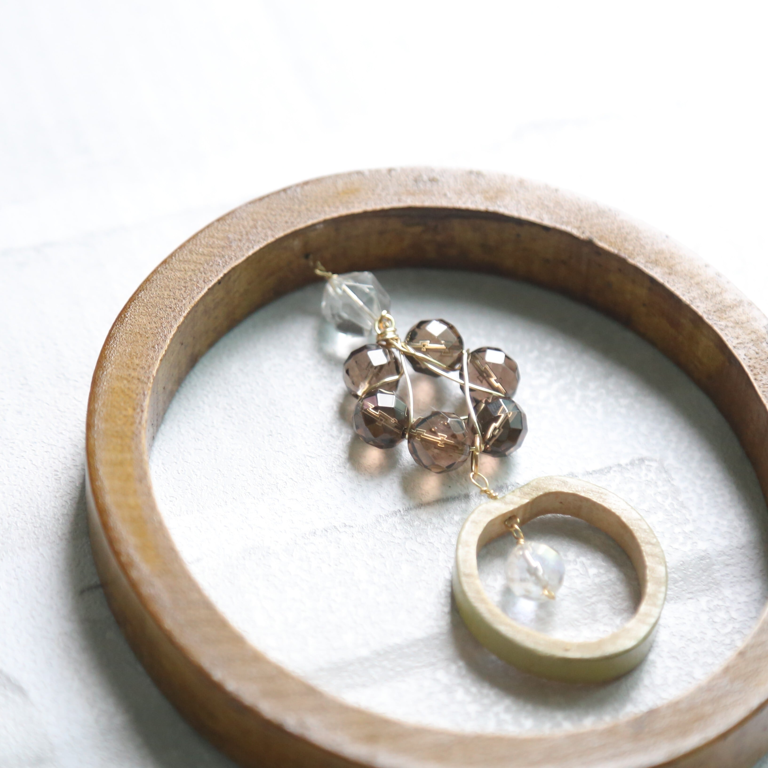 竹の輪に、スモーキークォーツとキラキラカットの2種類の水晶!