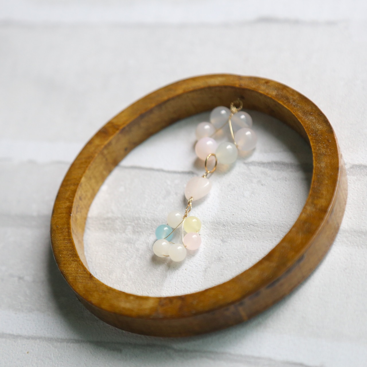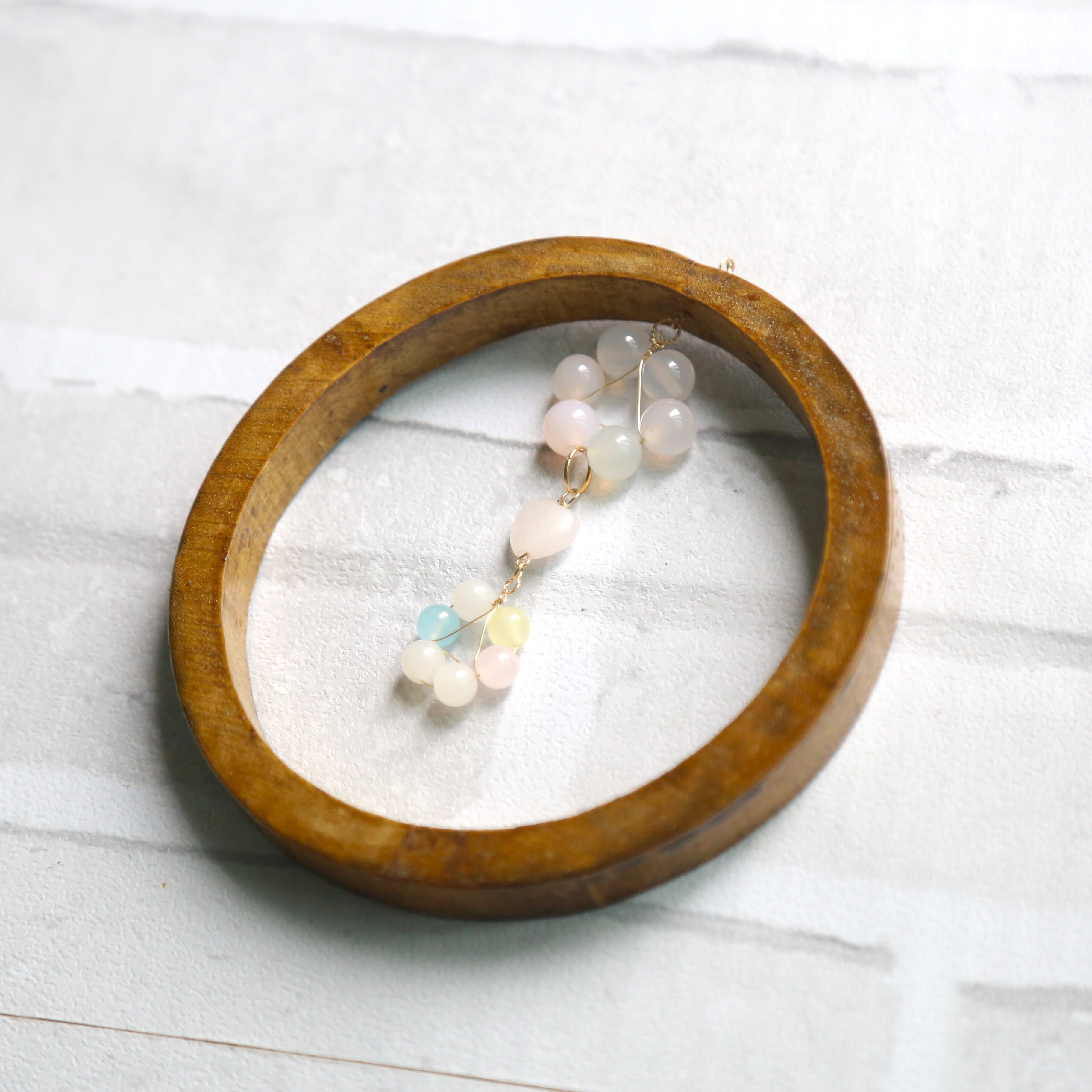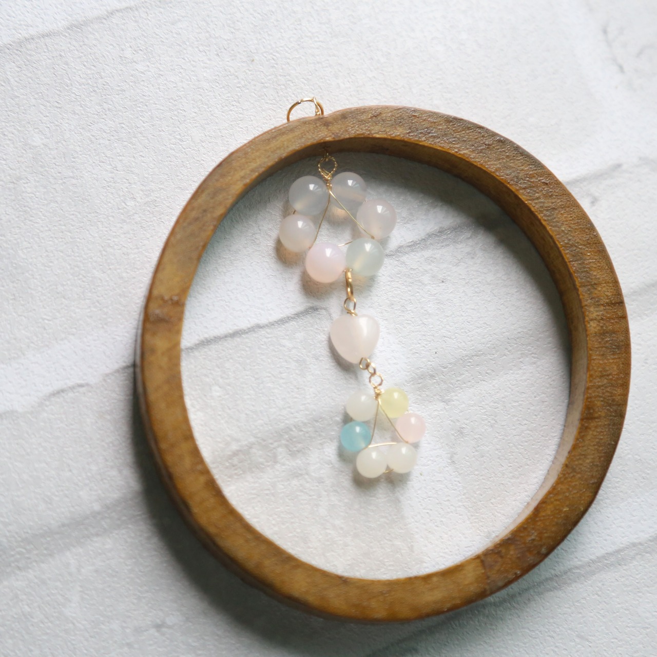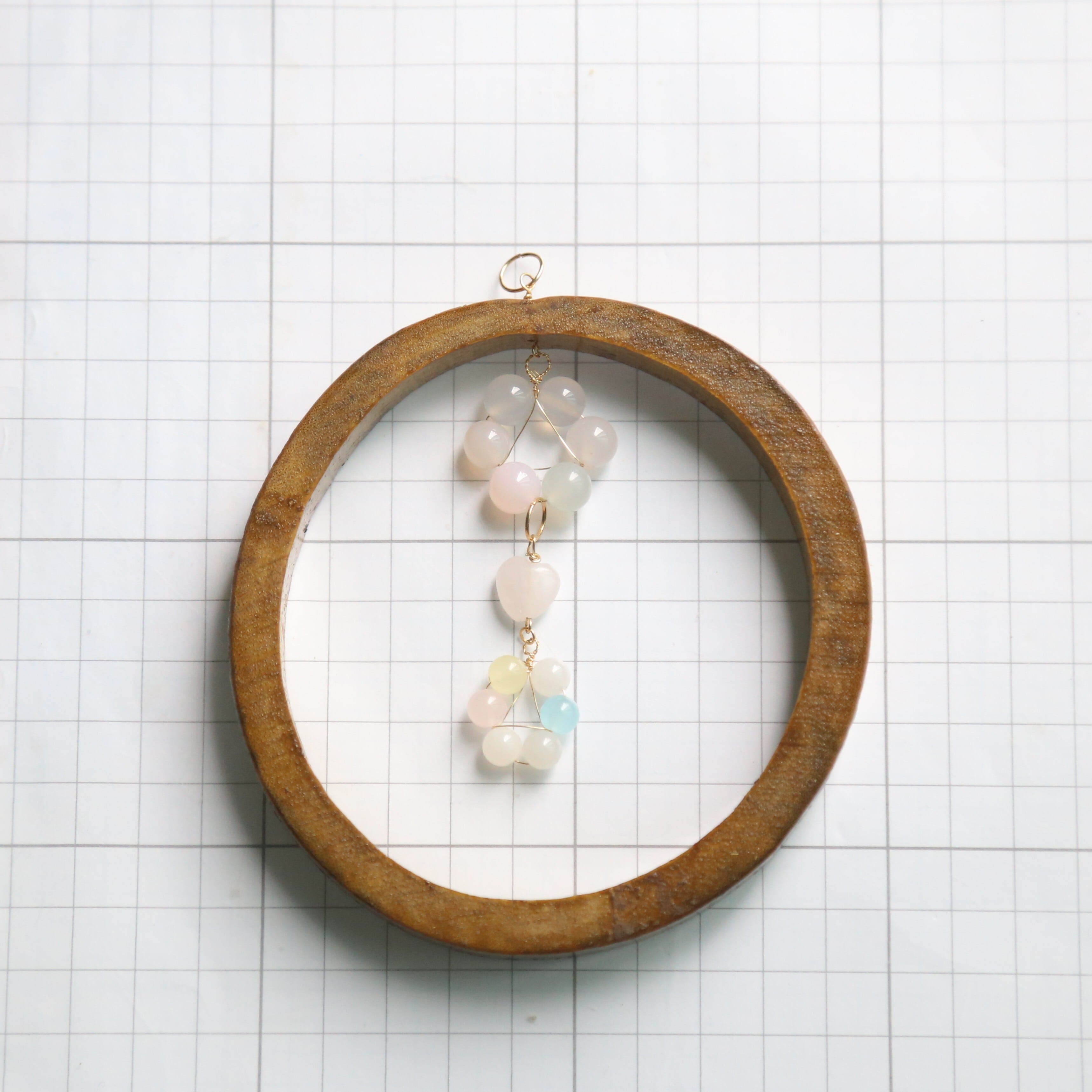 竹の輪に、キャンディ色のアゲート(瑪瑙)とハート♡のローズクォーツです