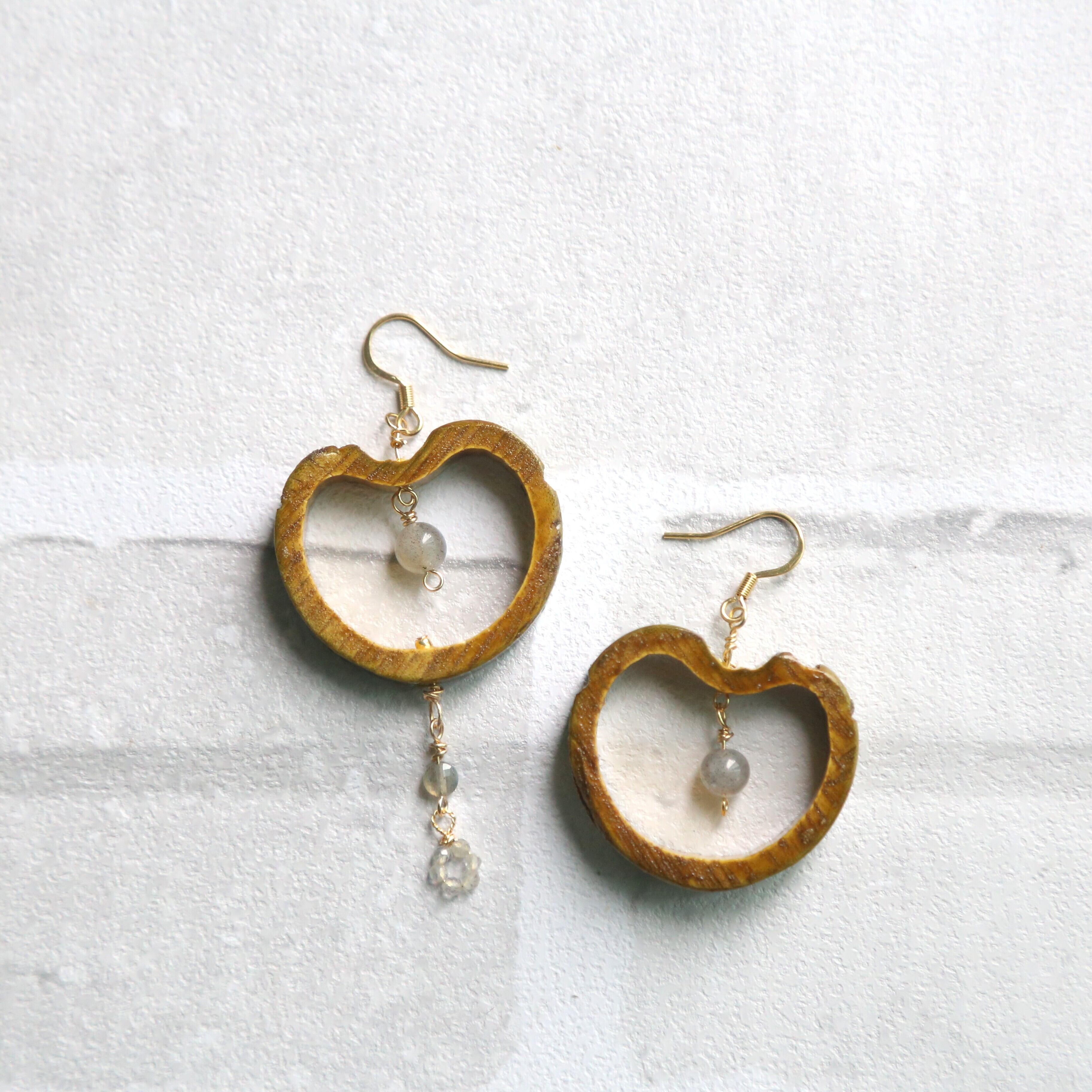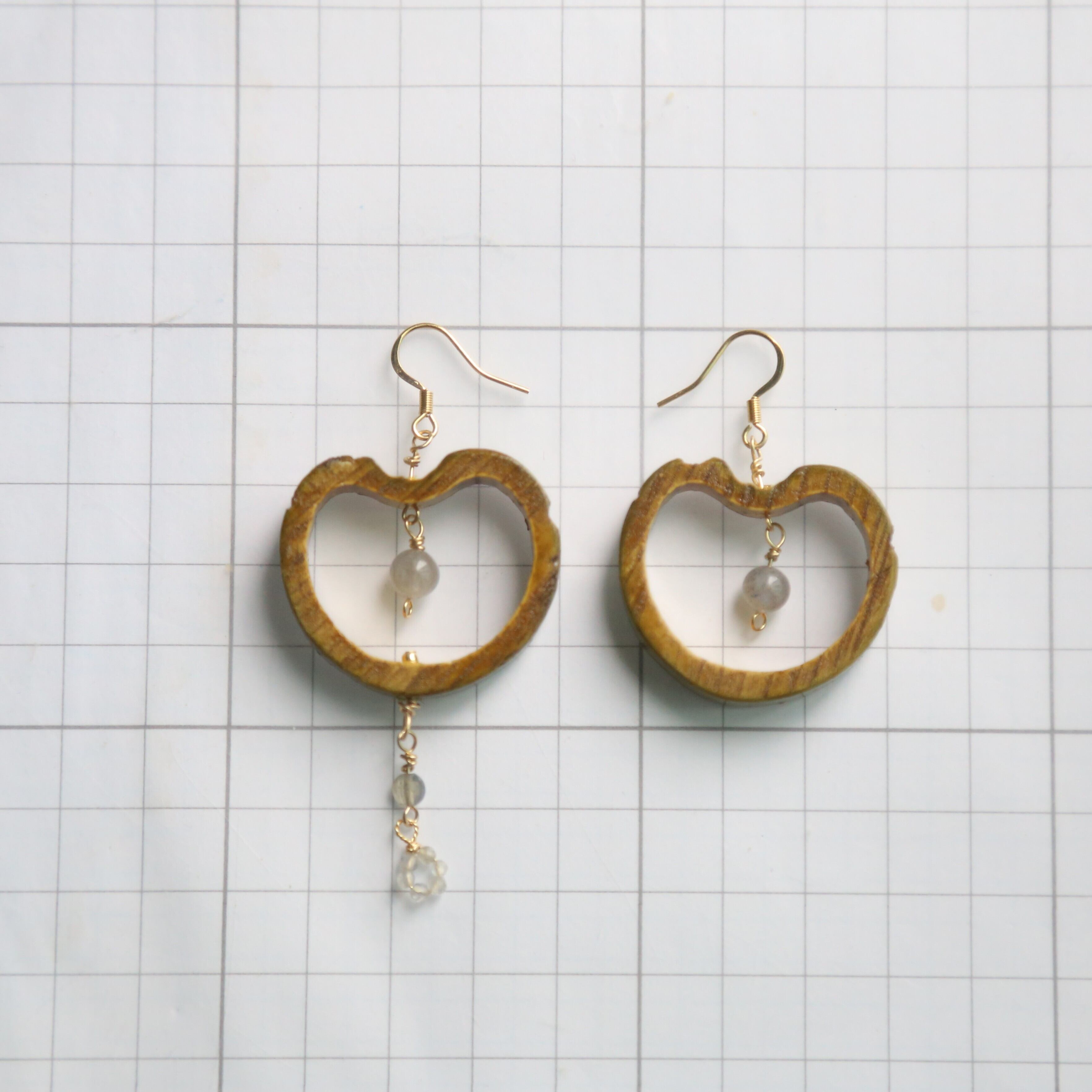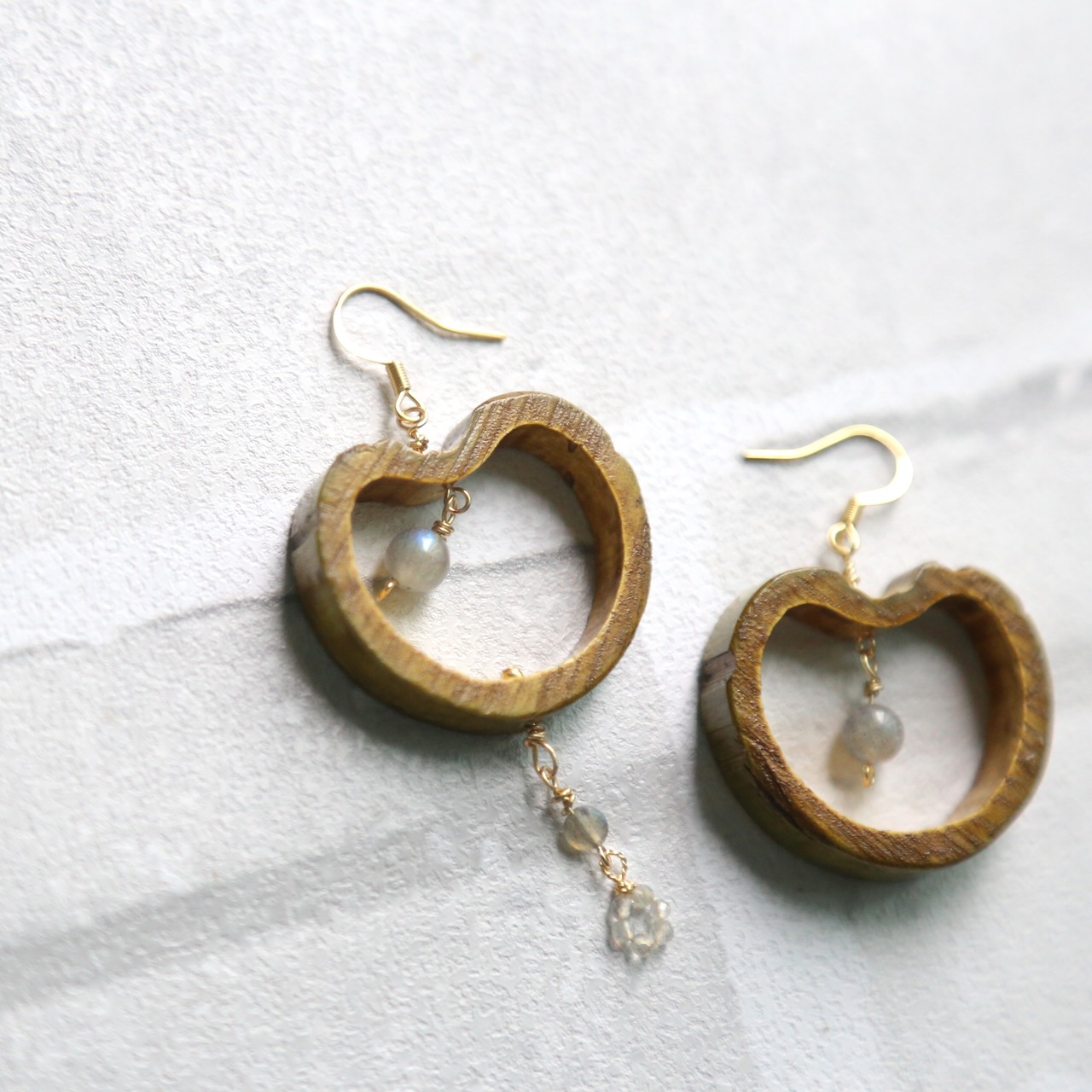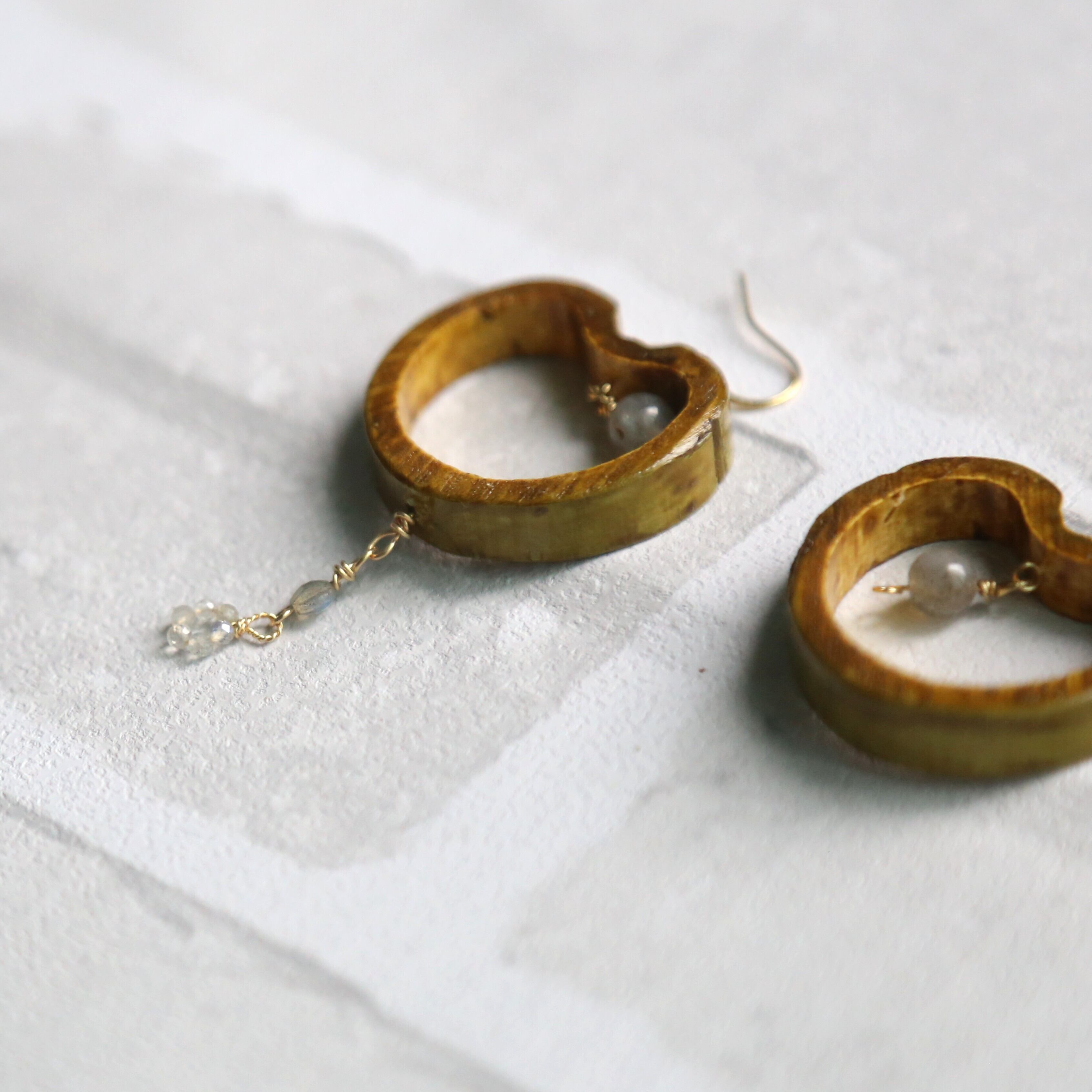 ハート♡型の竹とハート♡のローズクォーツのピアスです