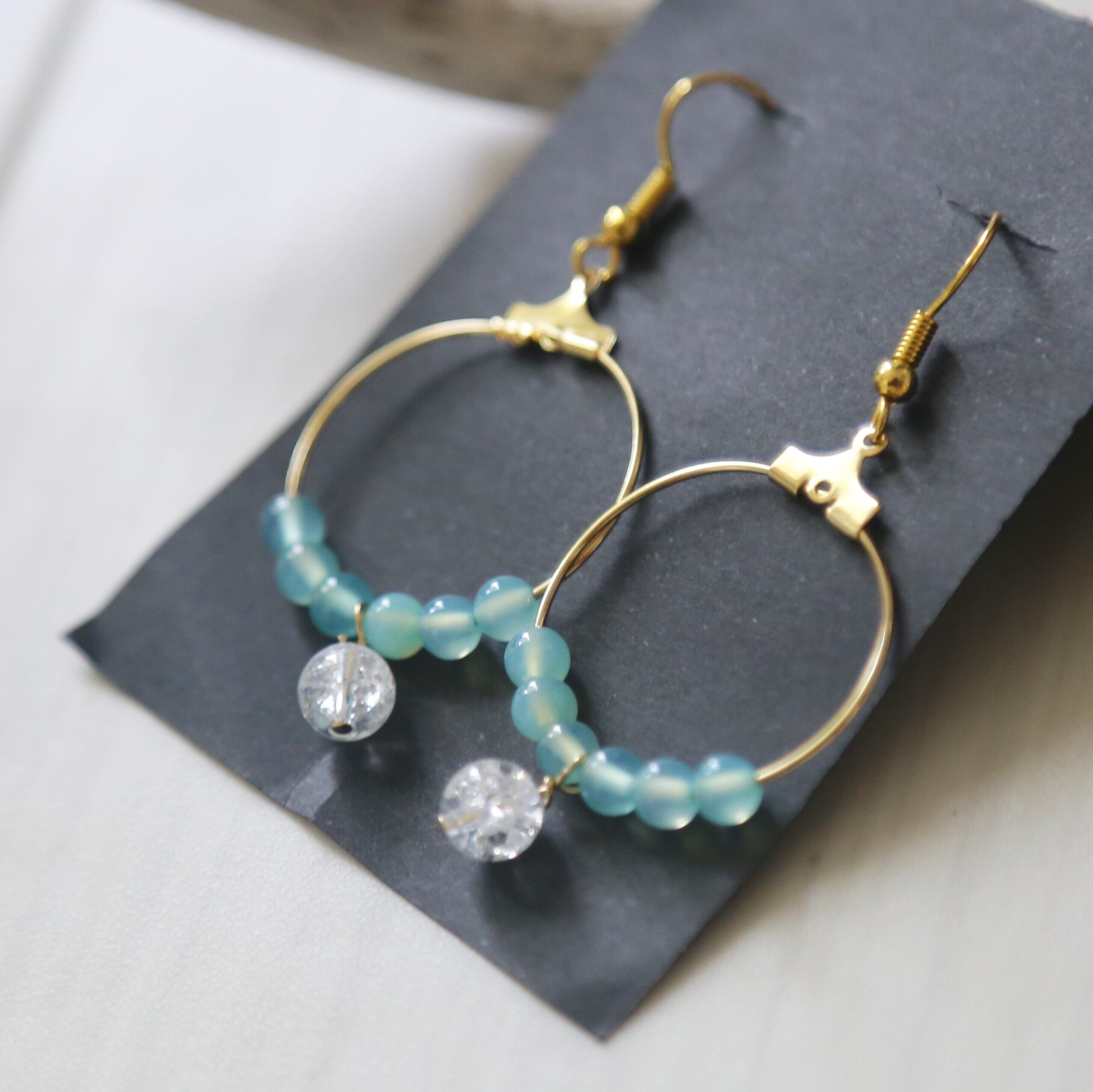 ③のキラキラのクラック水晶に、アクアブルーのメノウのピアス♡