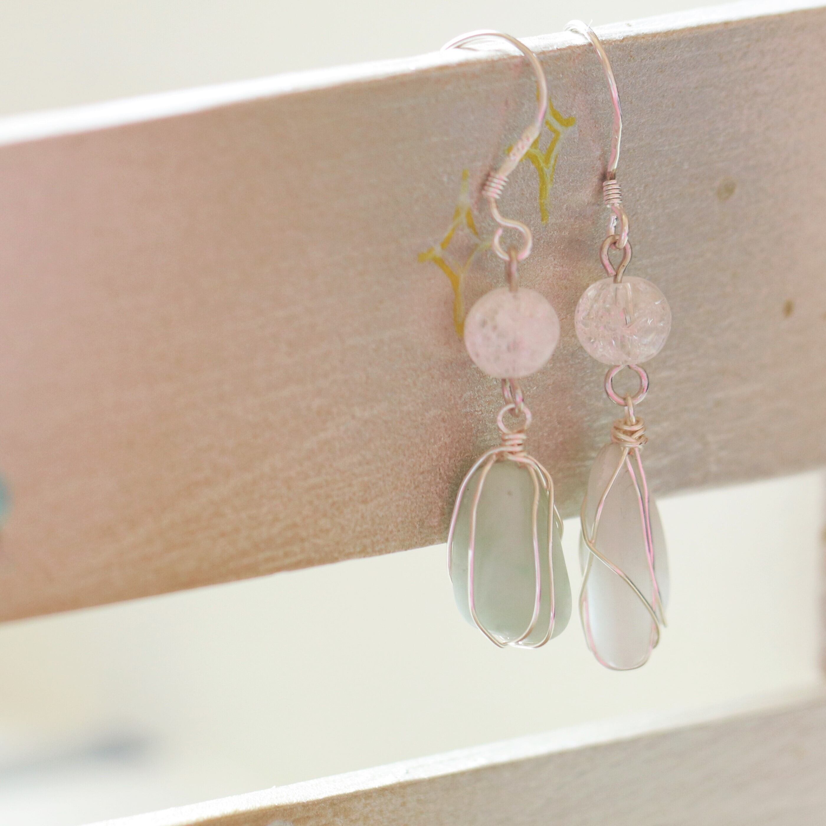 パステルグリーンが綺麗な翡翠♡ワイヤーピアス