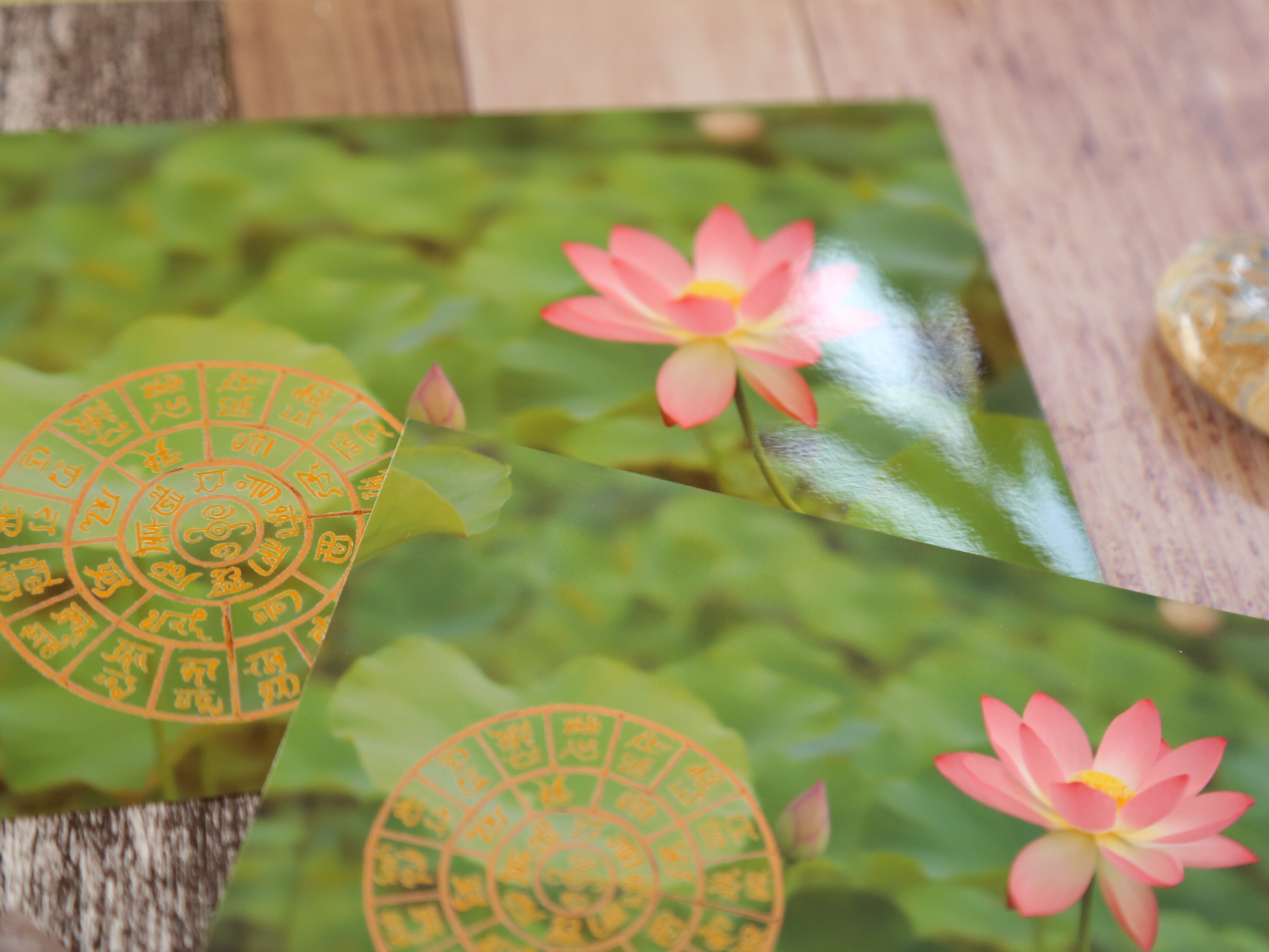 蓮の花の写真に龍体文字のフトマニ図を入れました♡