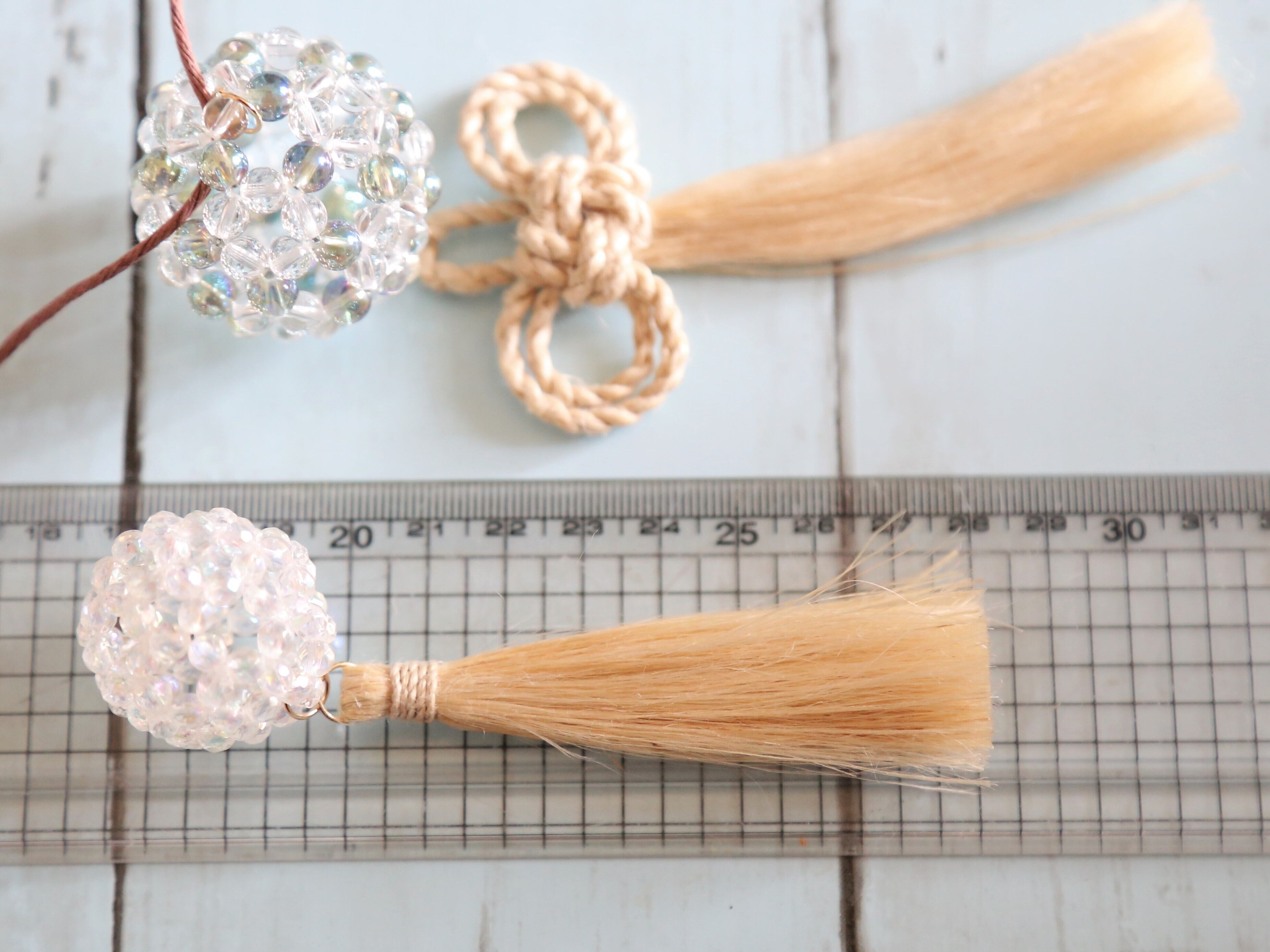 (1枚目の写真のように精麻に丸い金具がひとつ付いた状態でのお届けです)