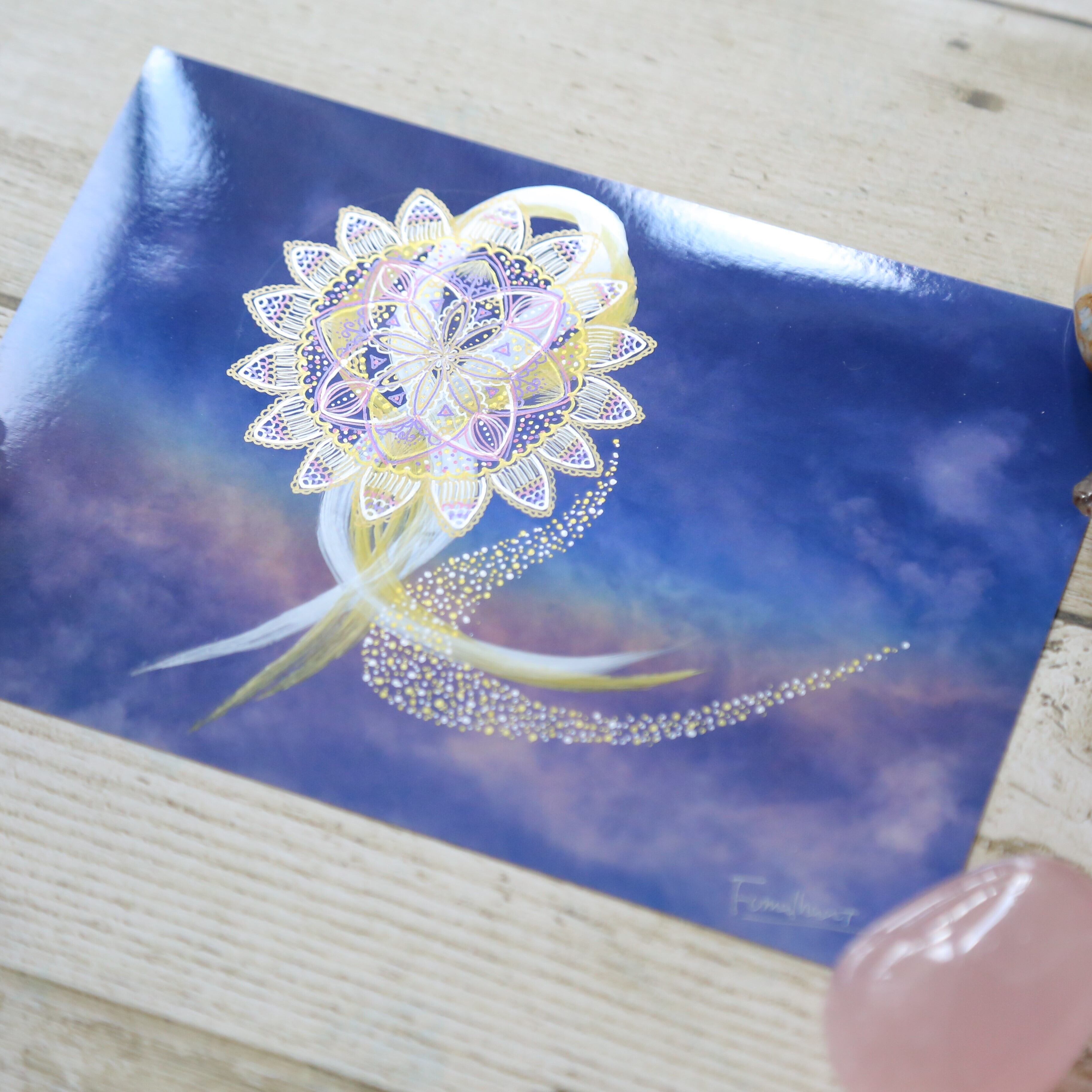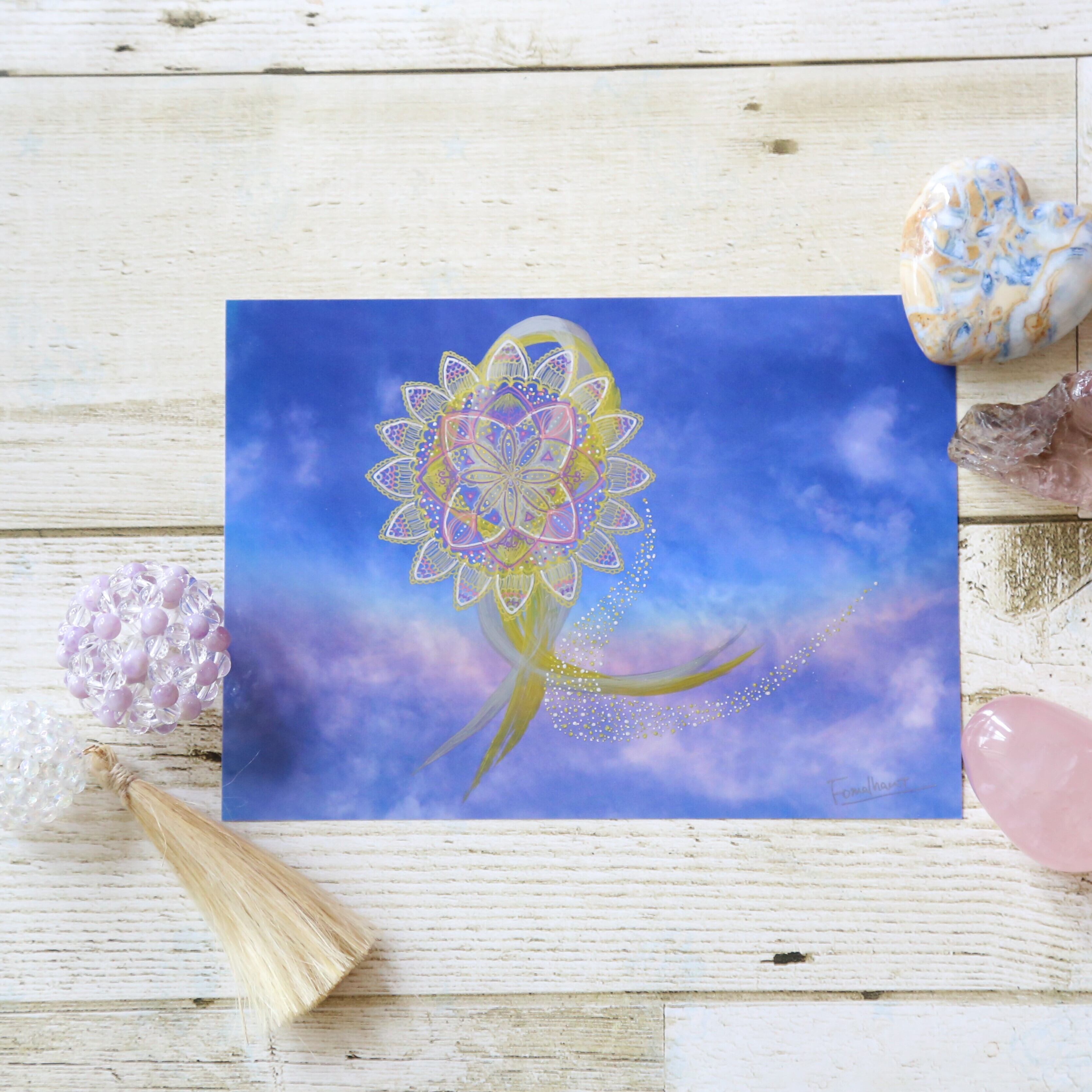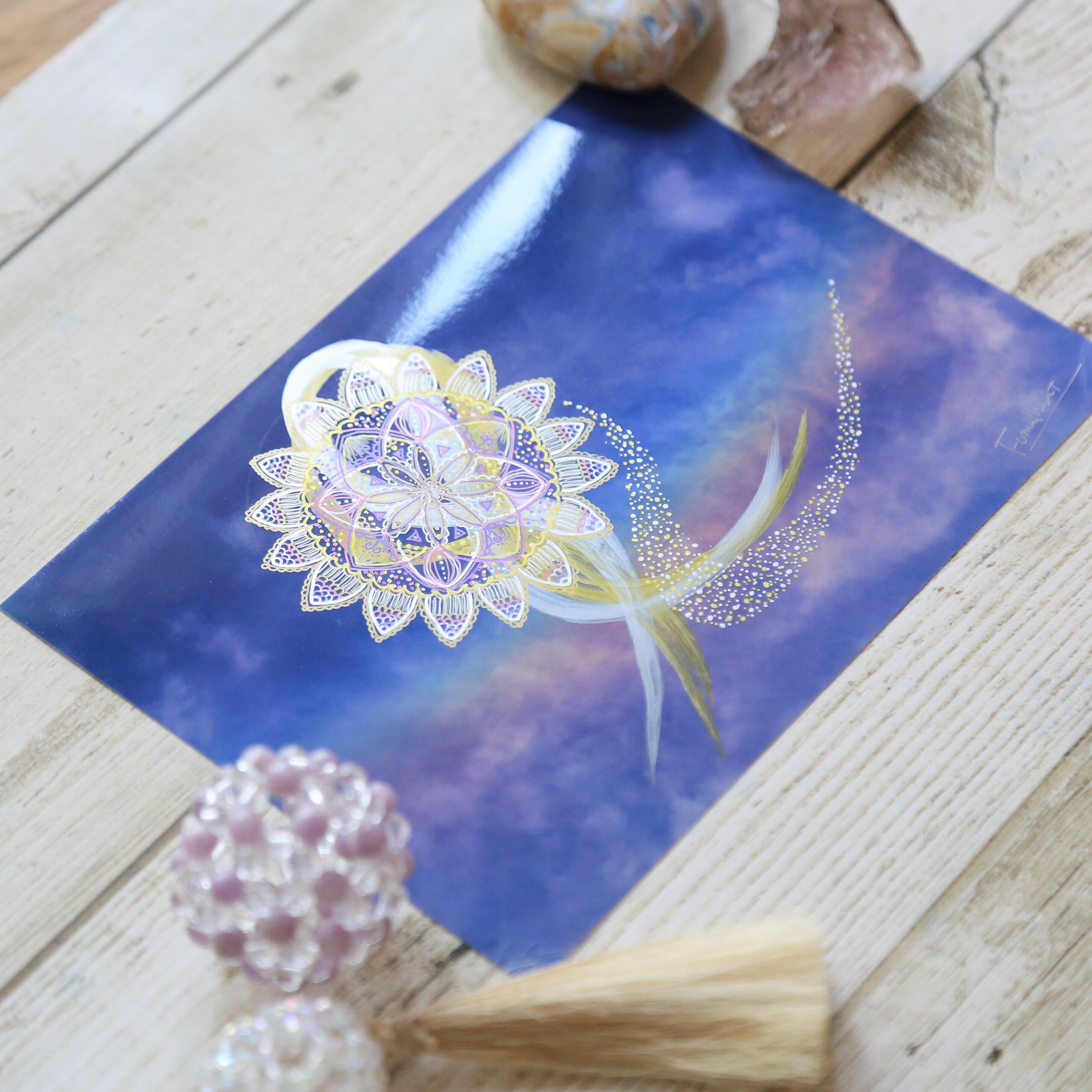 こちらはある神社へ参拝した際、初めてお姿を見せて下さったククリヒメ様のエネルギーが忘れられずアートに描いたものです。