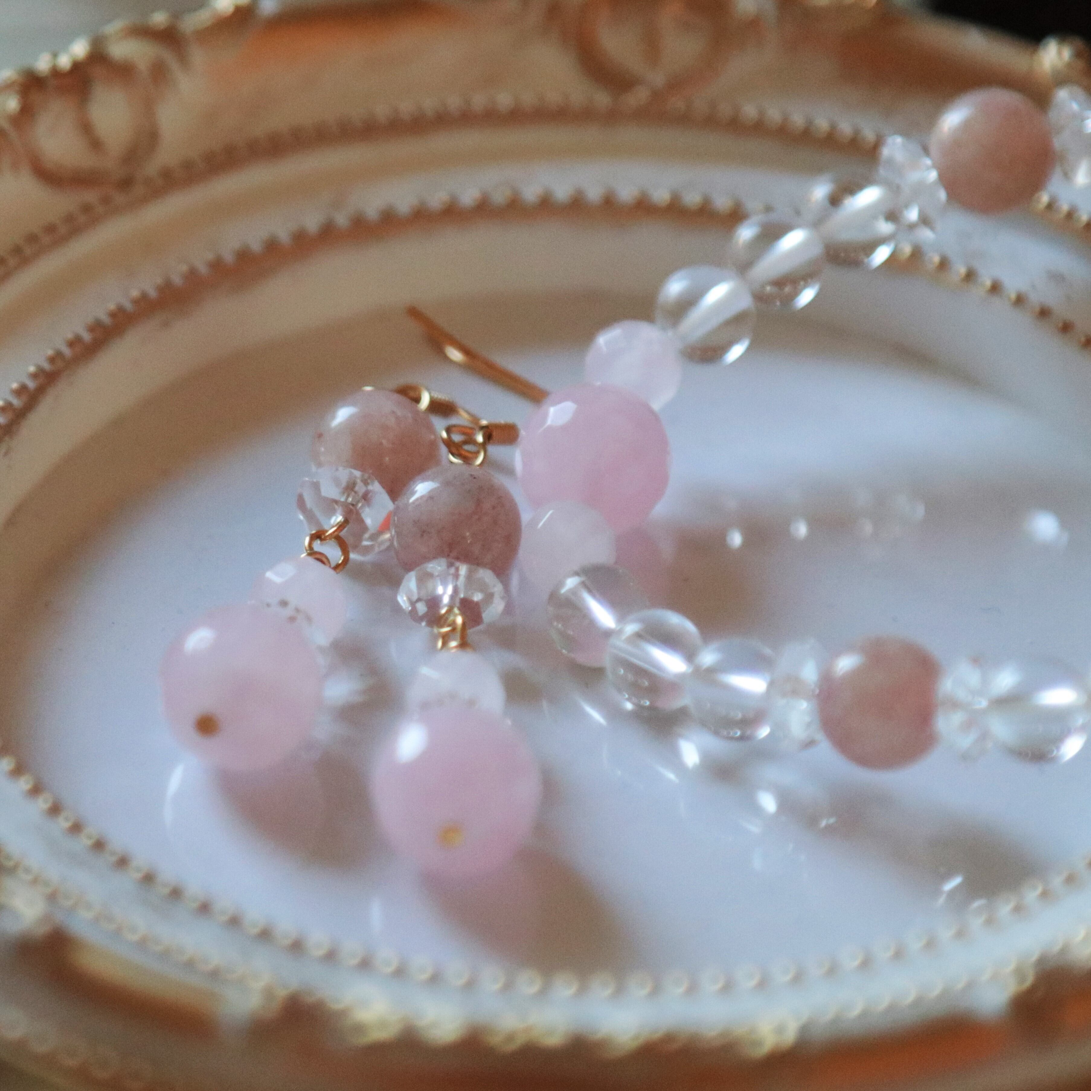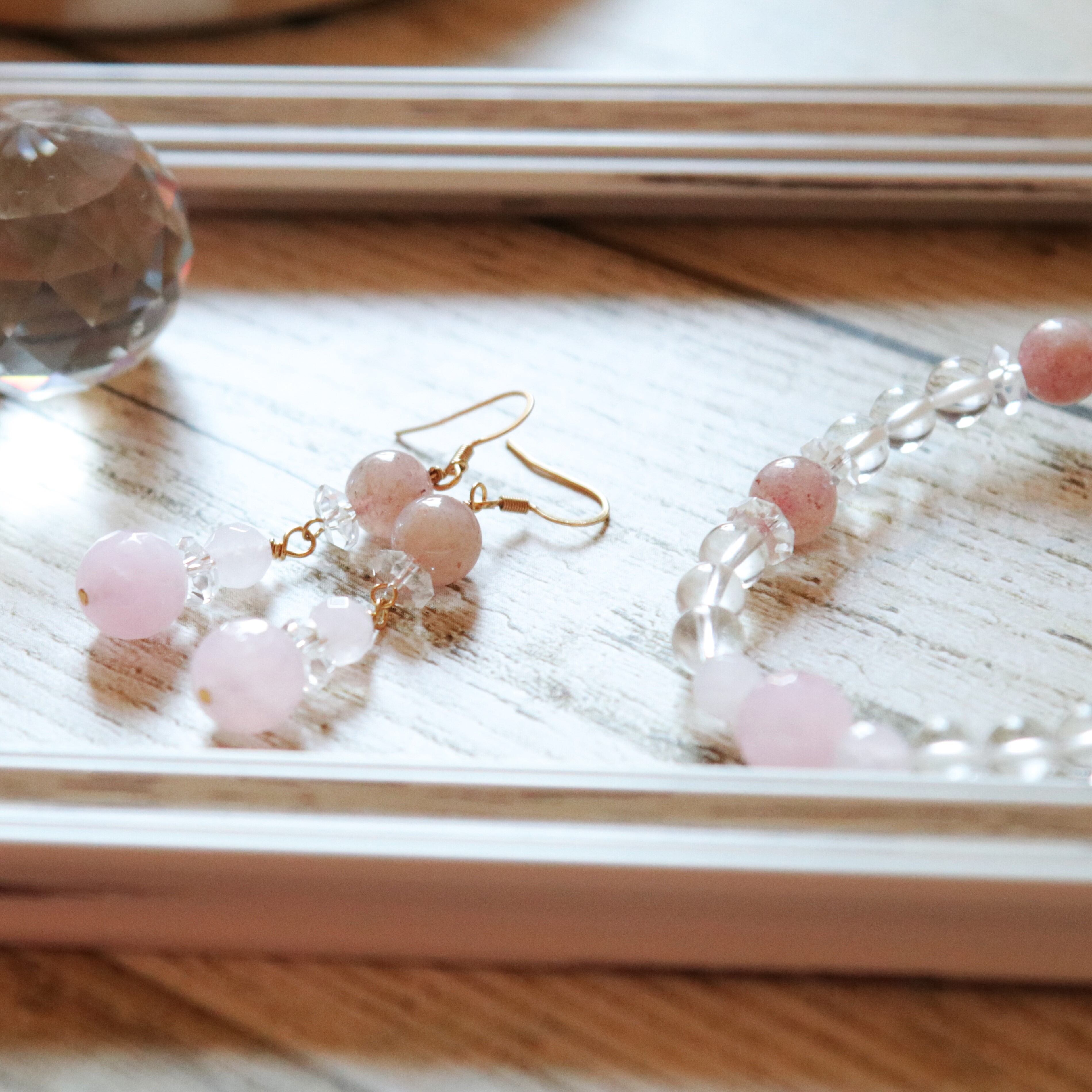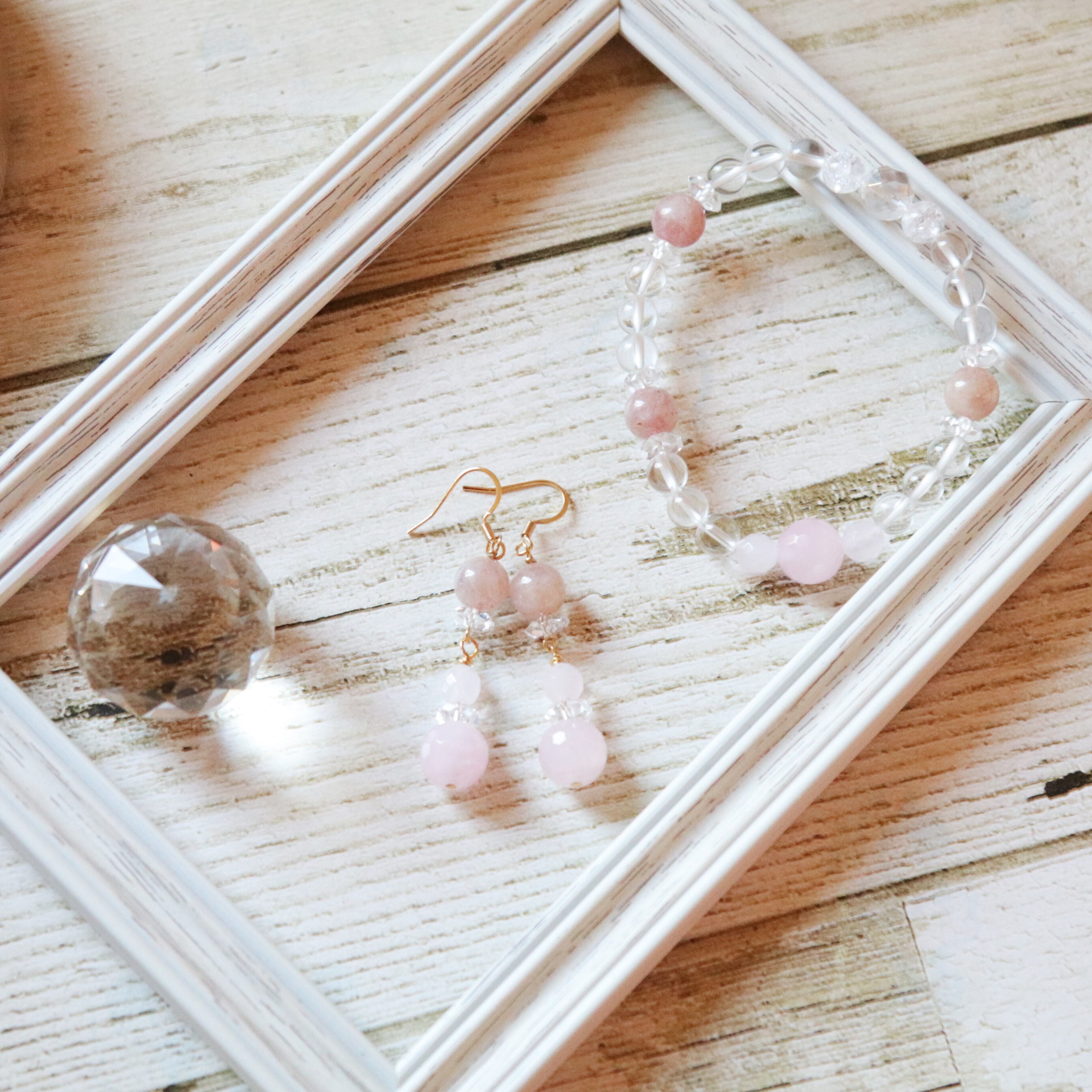 水晶(クリスタル)に、ストロベリークォーツとローズクォーツを使用した