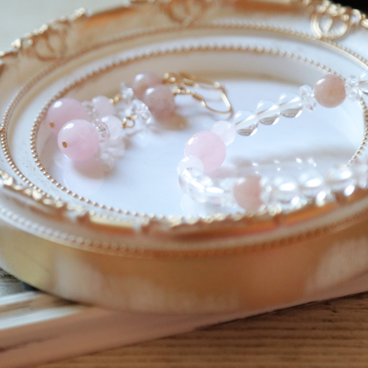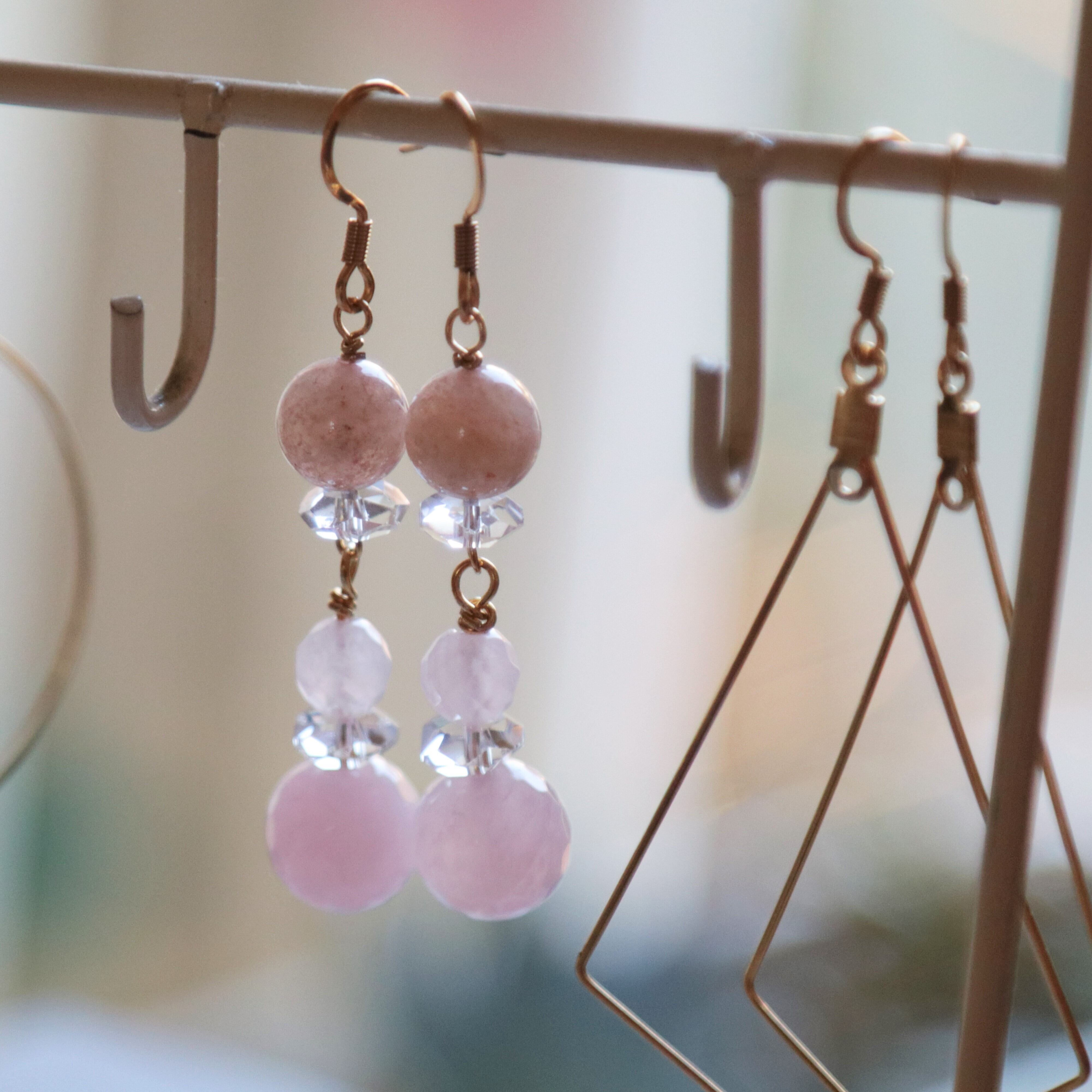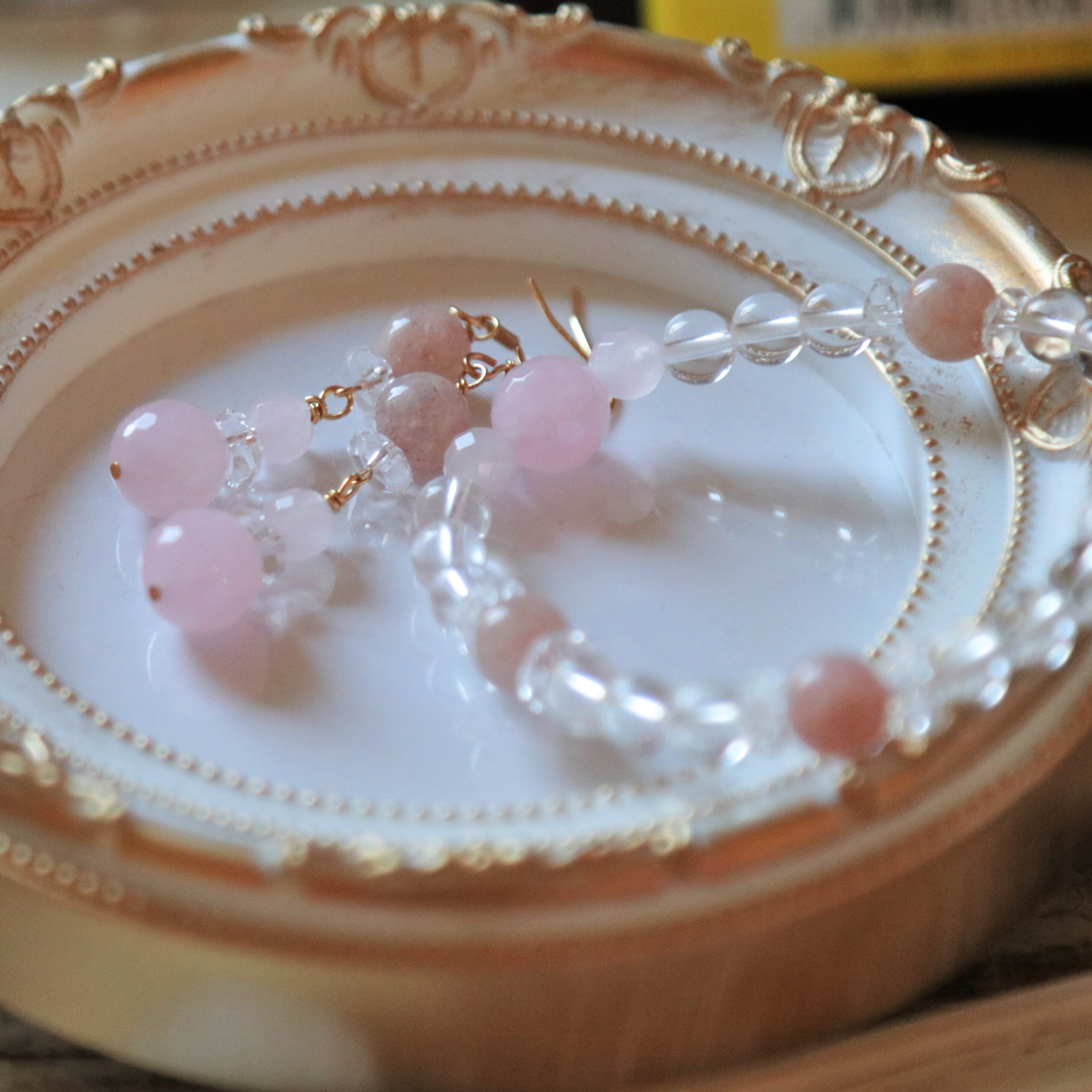 水晶(クリスタル)に、ストロベリークォーツとローズクォーツを使用した