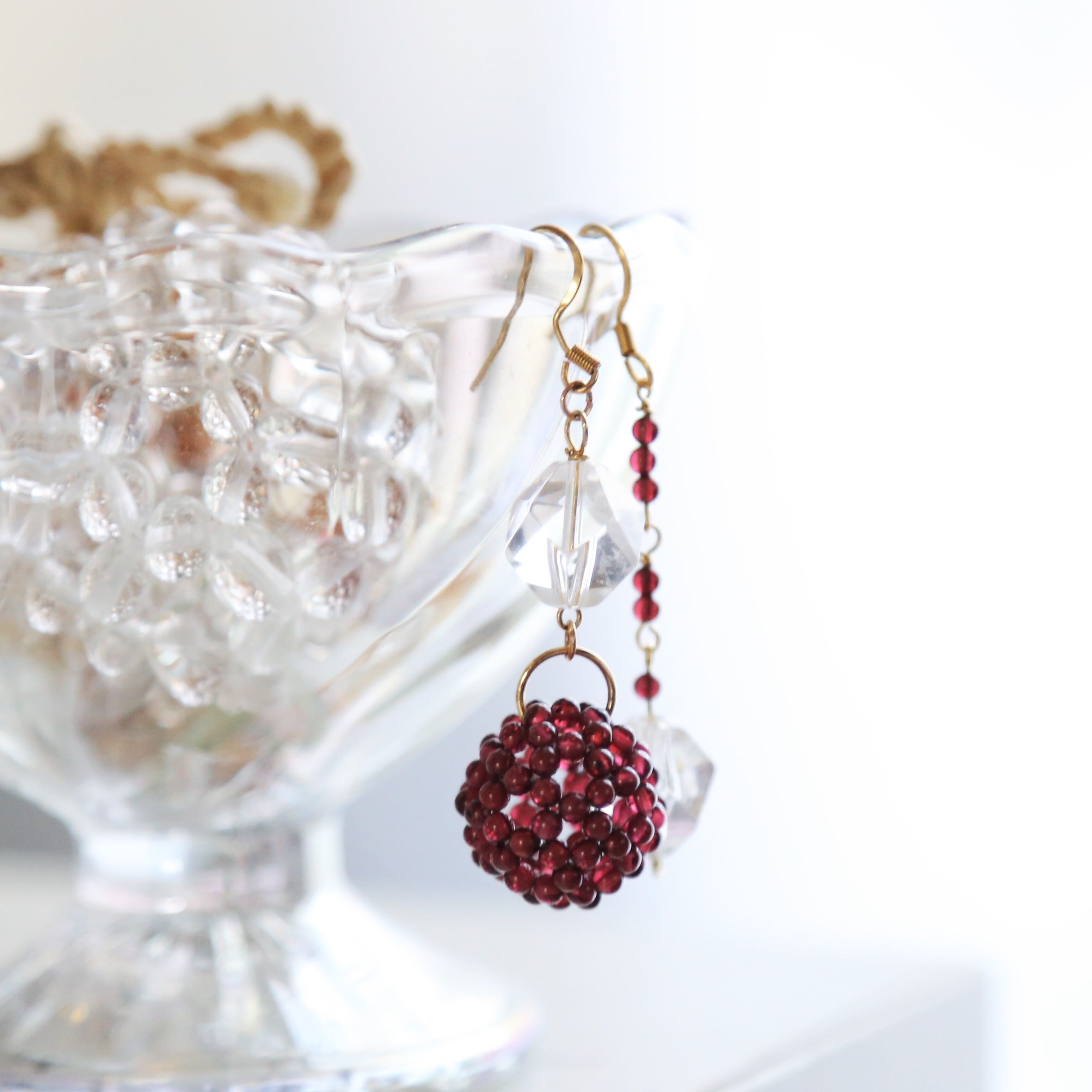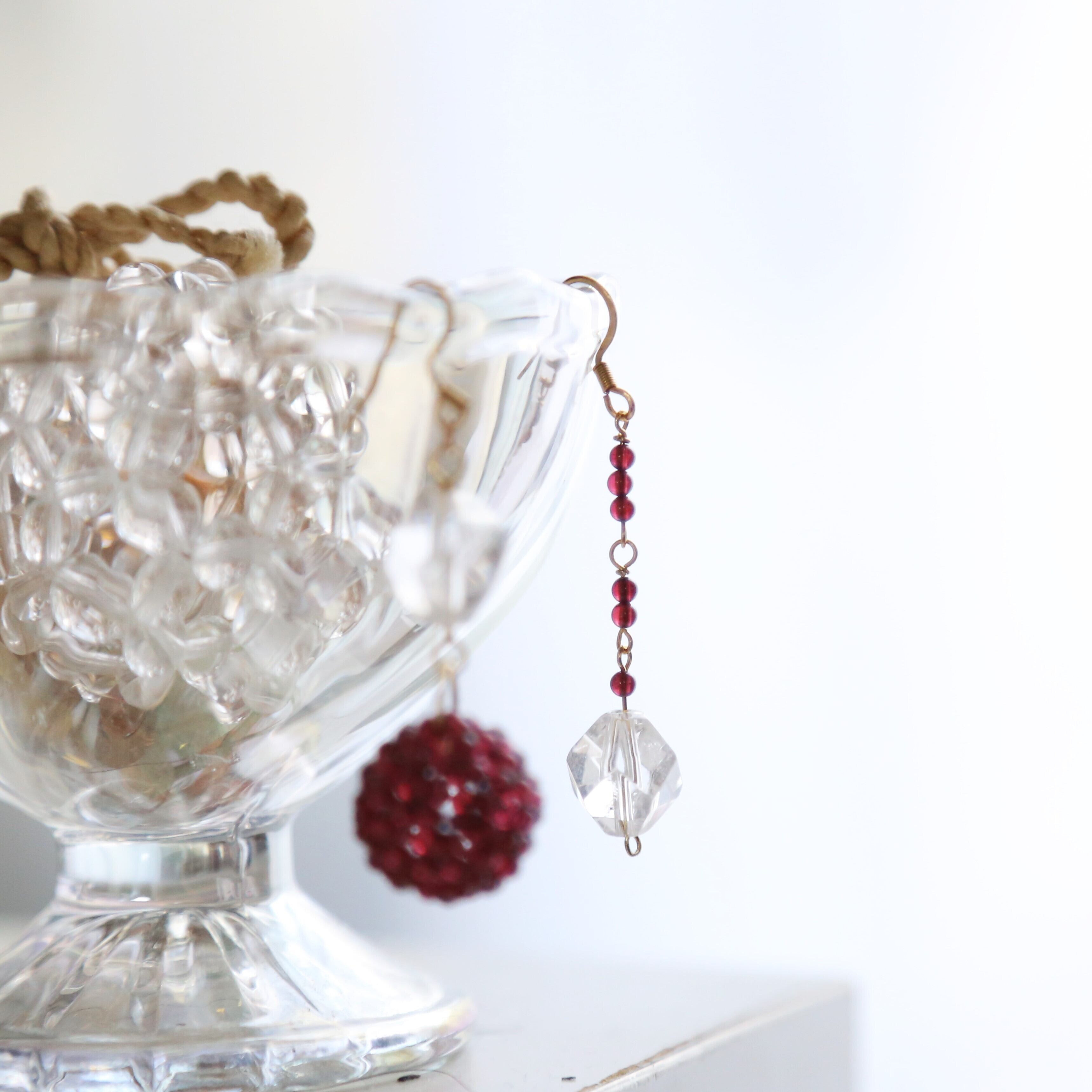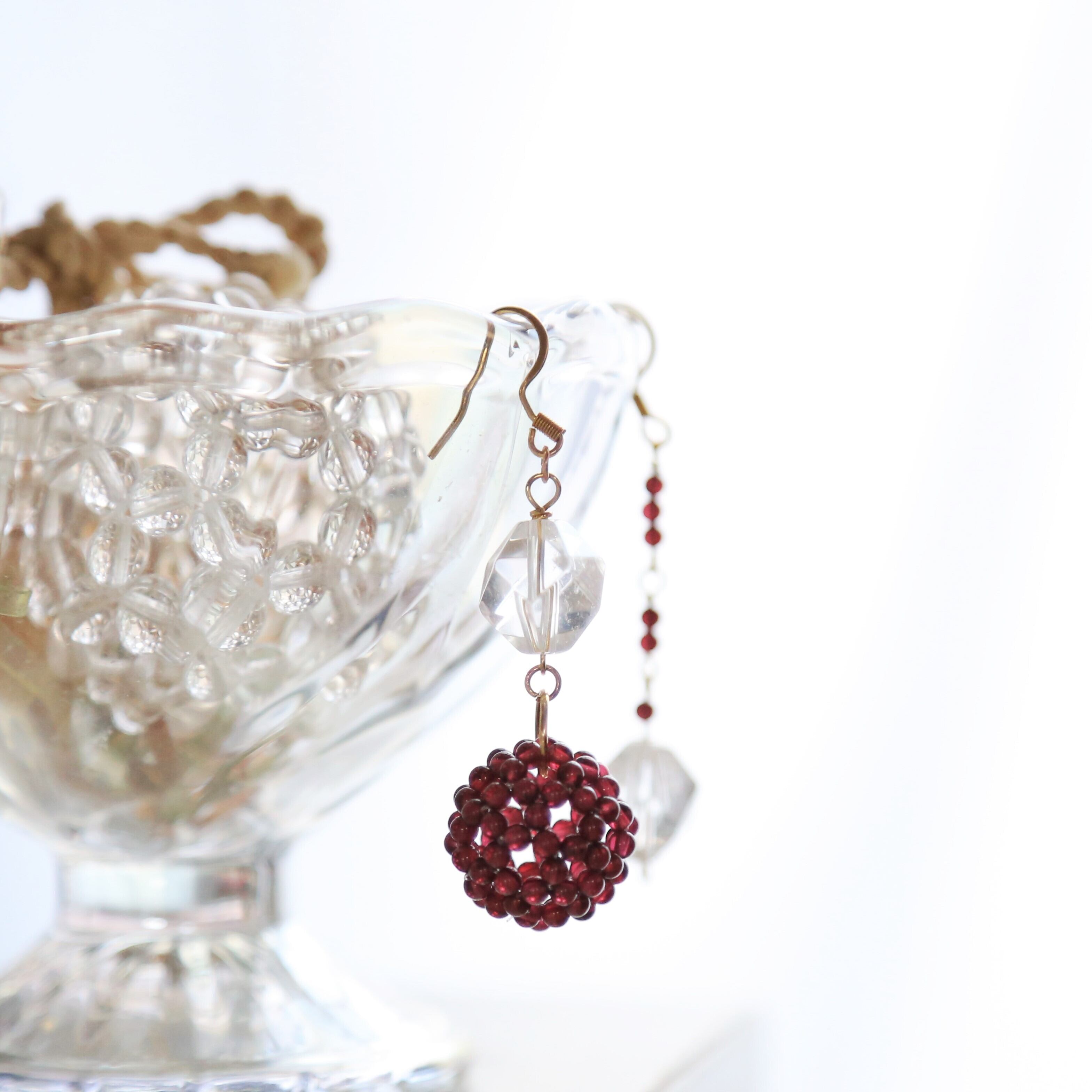 ガーネットのフラーレンのピアス*水晶(クリスタル)