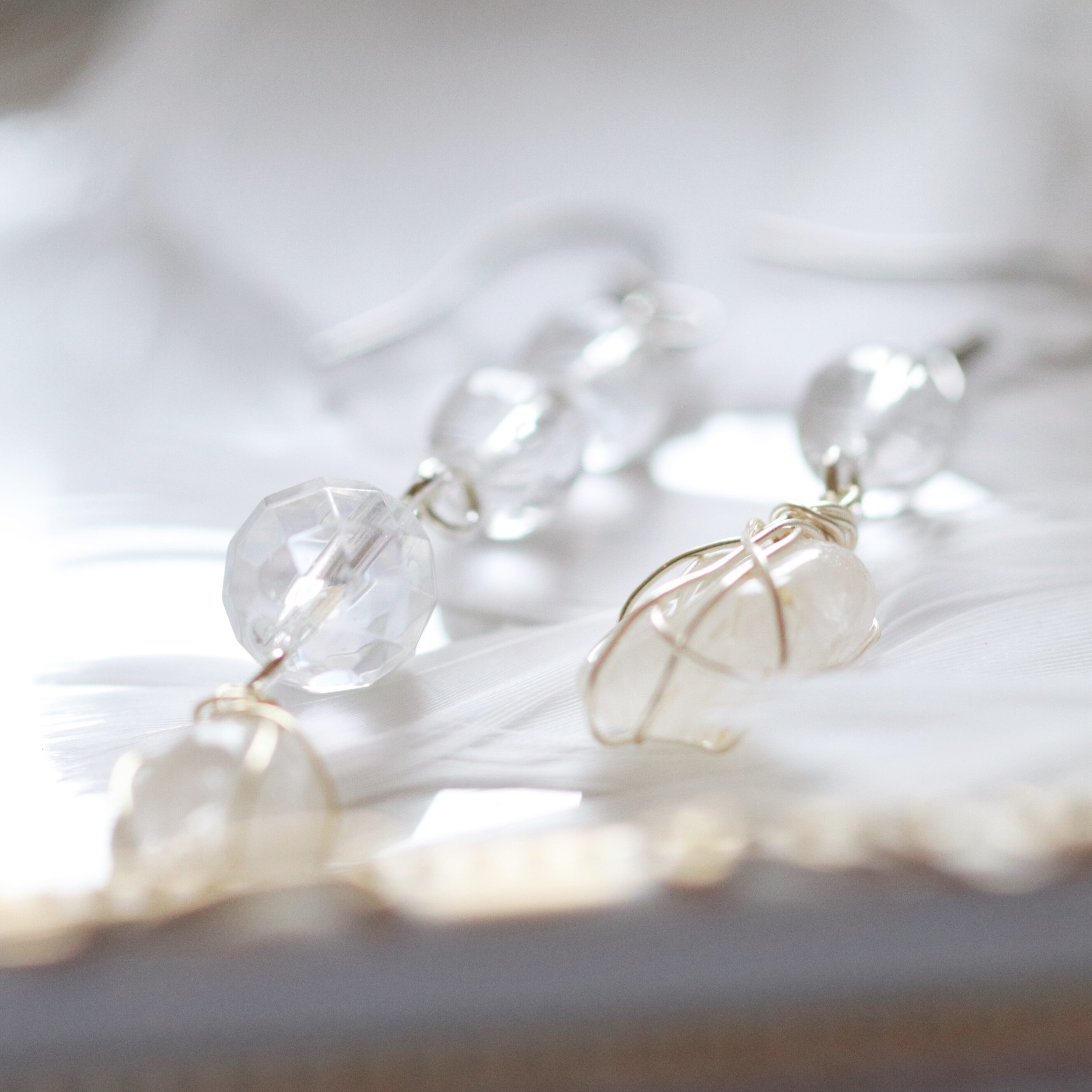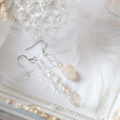 ルチルクォーツに水晶を合わせたアシンメトリー(左右非対称)のピアスです。