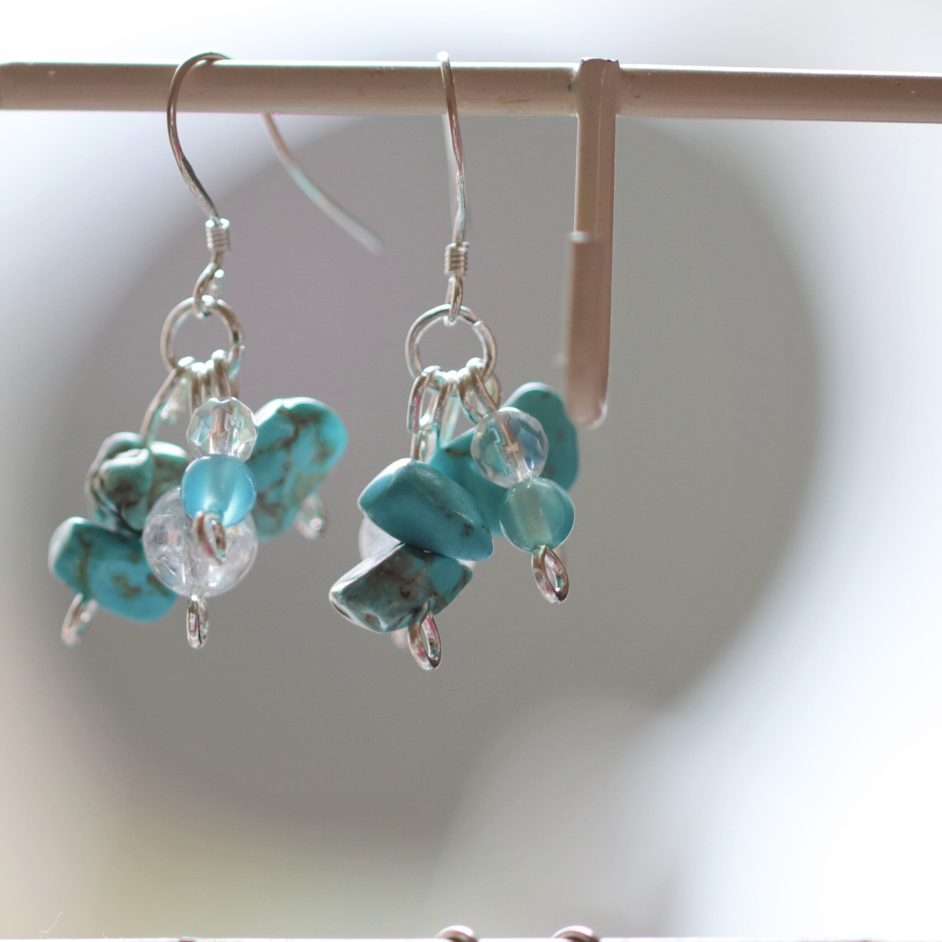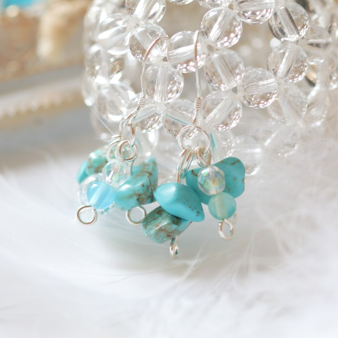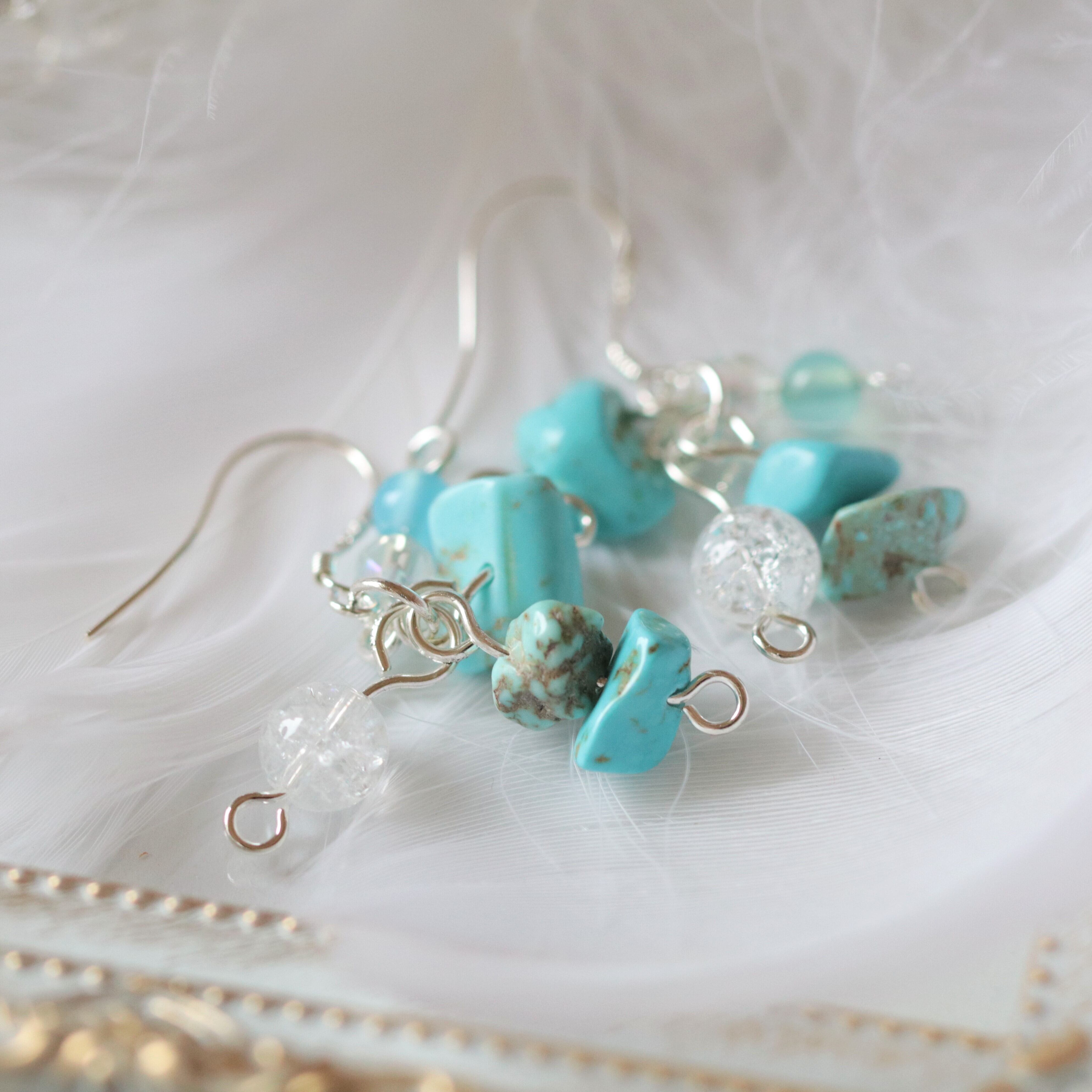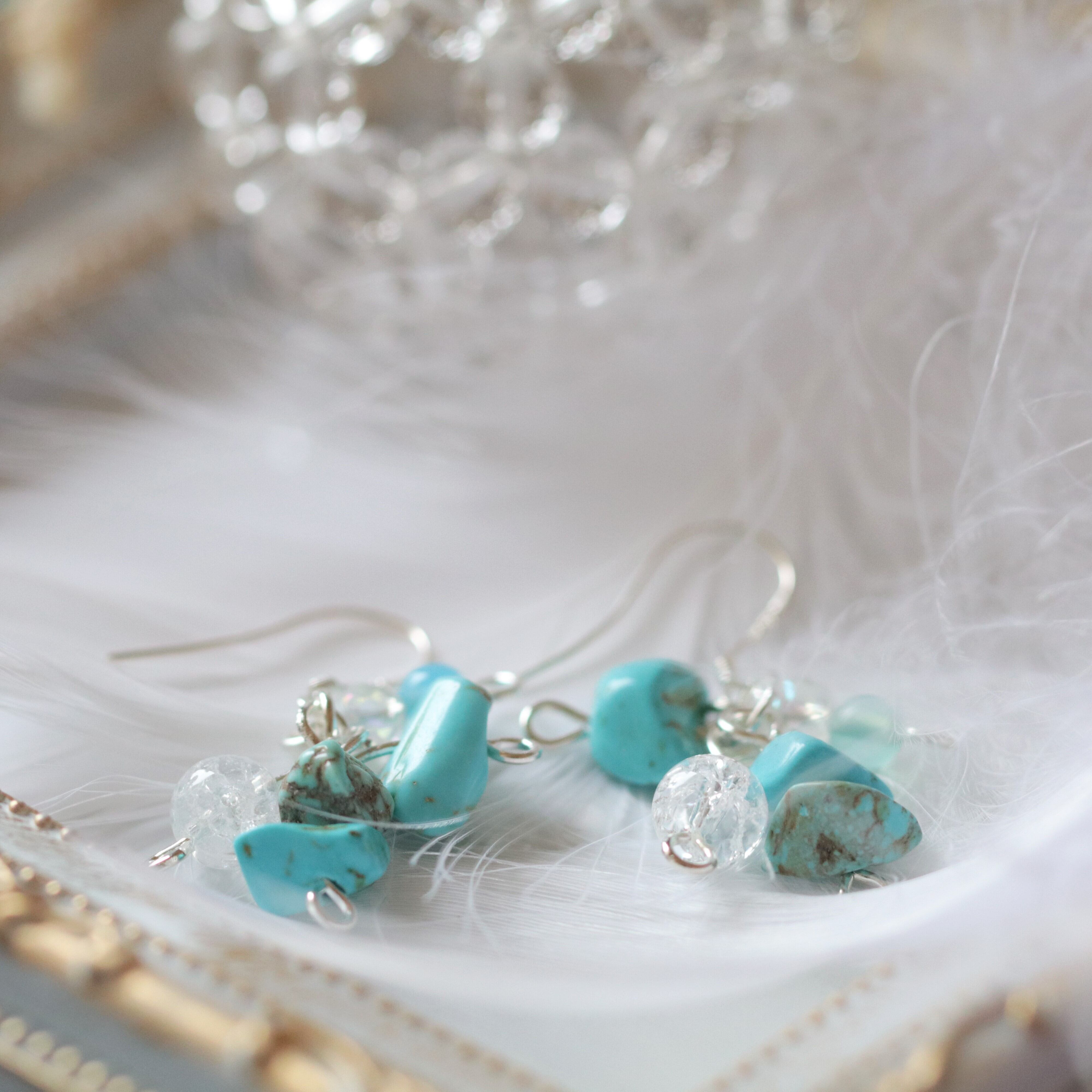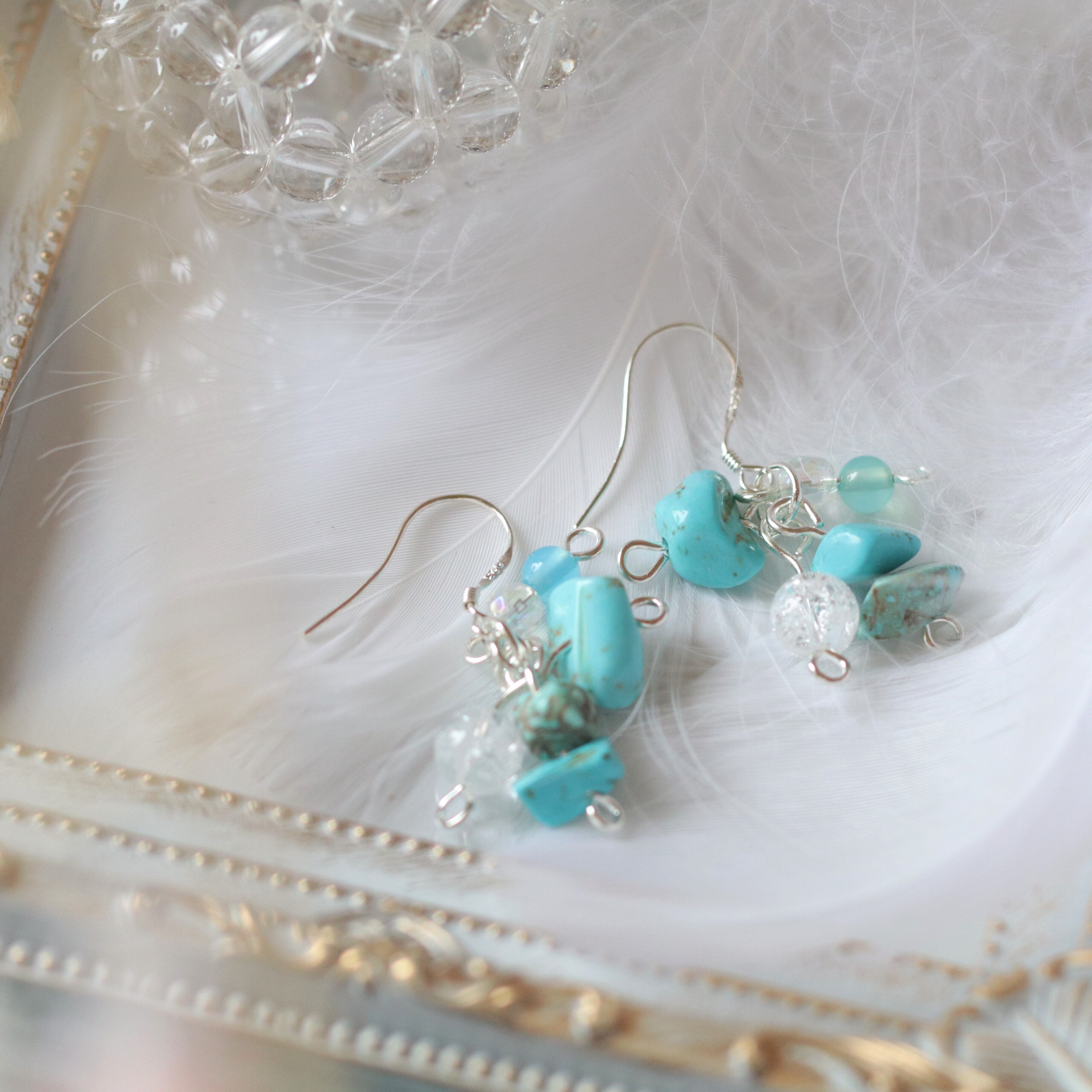 ターコイズに水晶とブルーアゲートを合わせたピアス。
