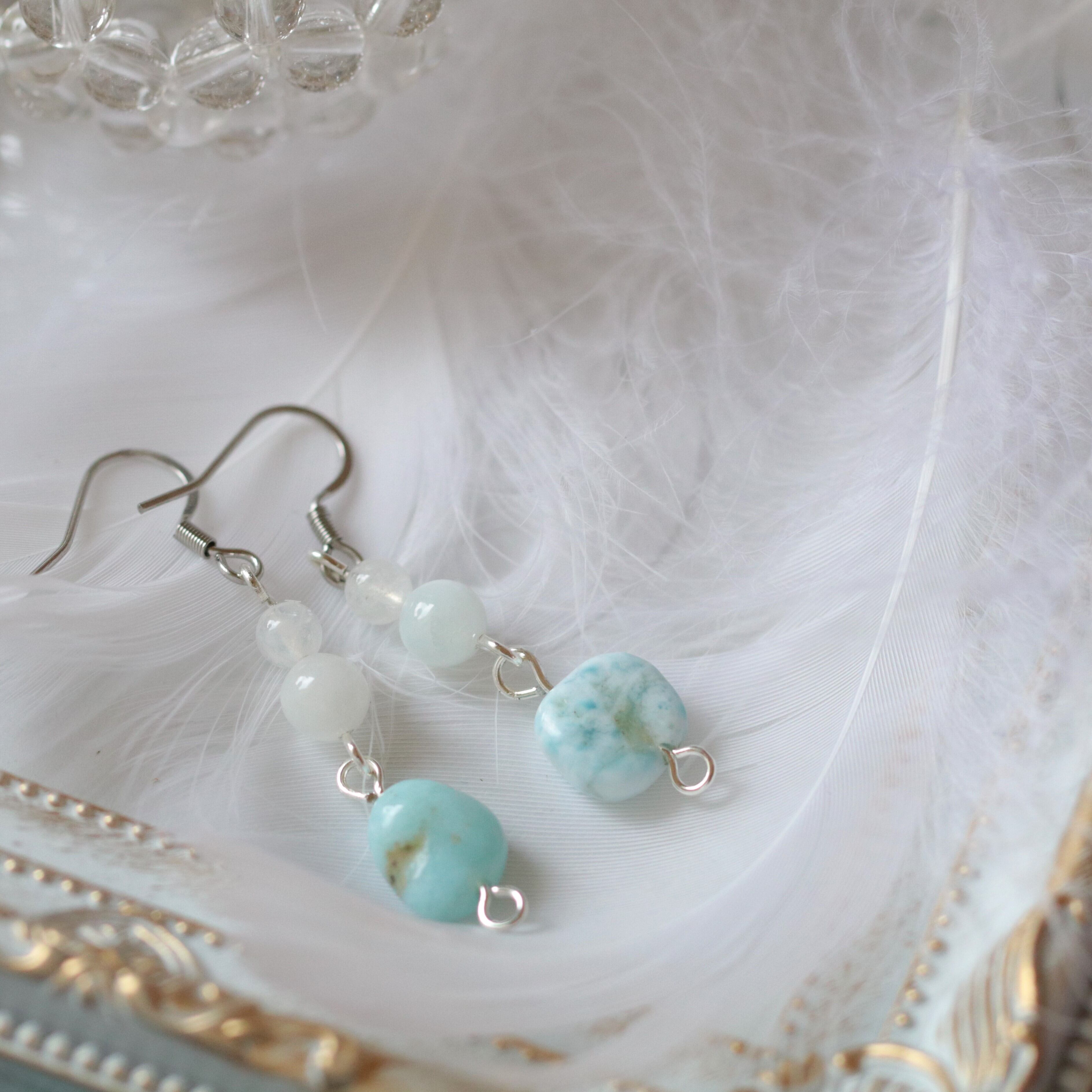 ラリマー♡にホワイトラリマーとムーンストーン*優しい癒しストーンピアス*イヤリング