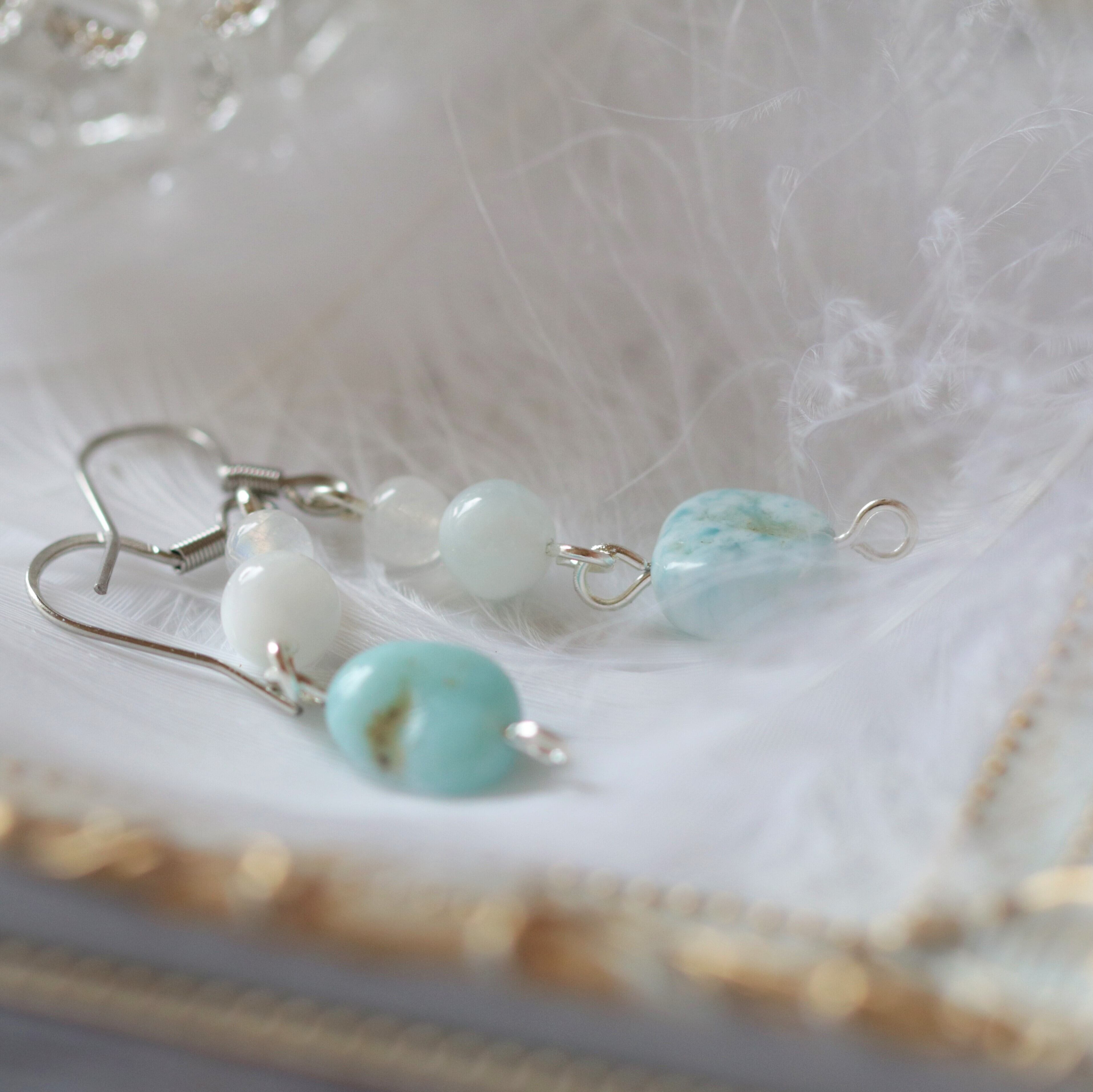 ラリマーに、小さめのホワイトラリマーとムーンストーンを合わせました♡