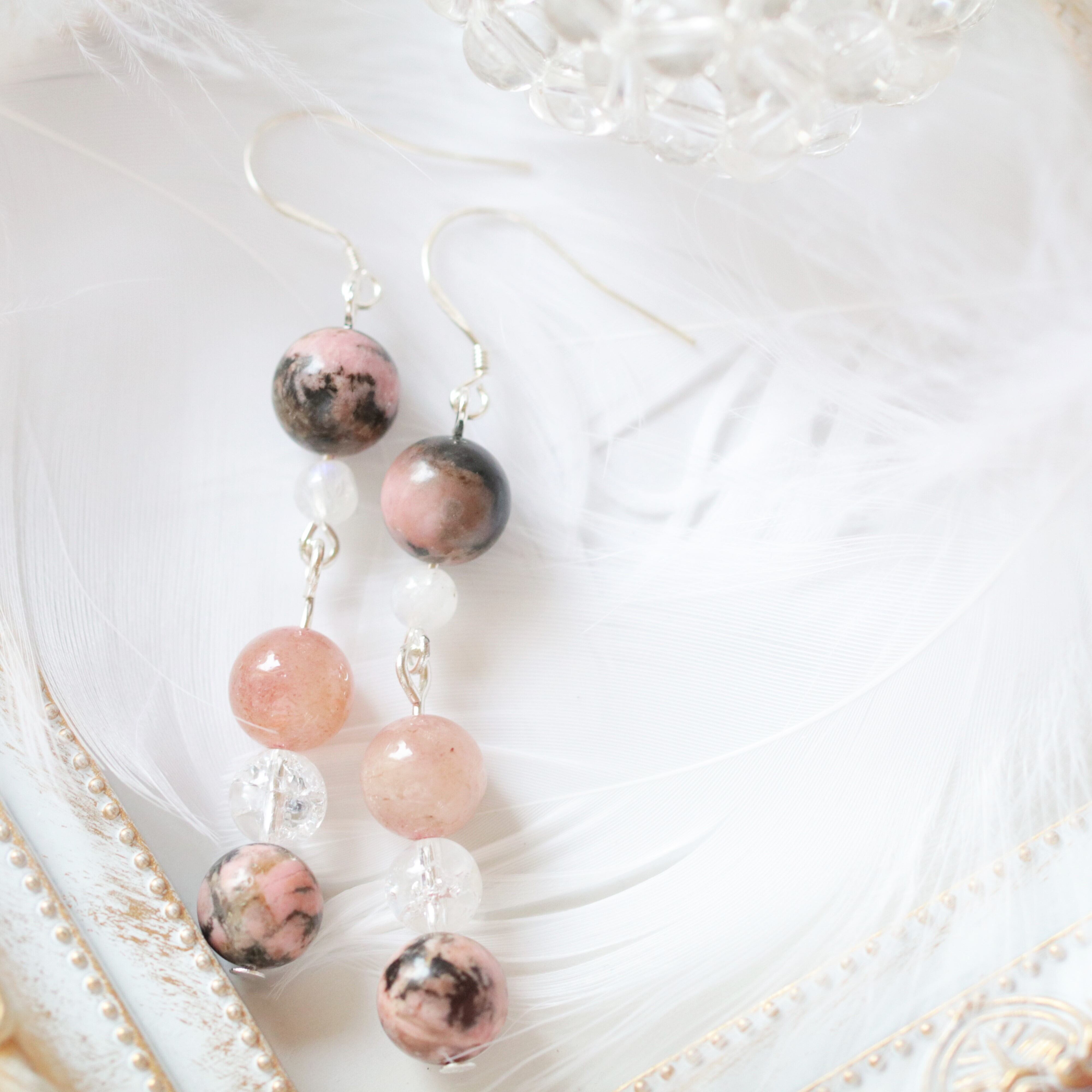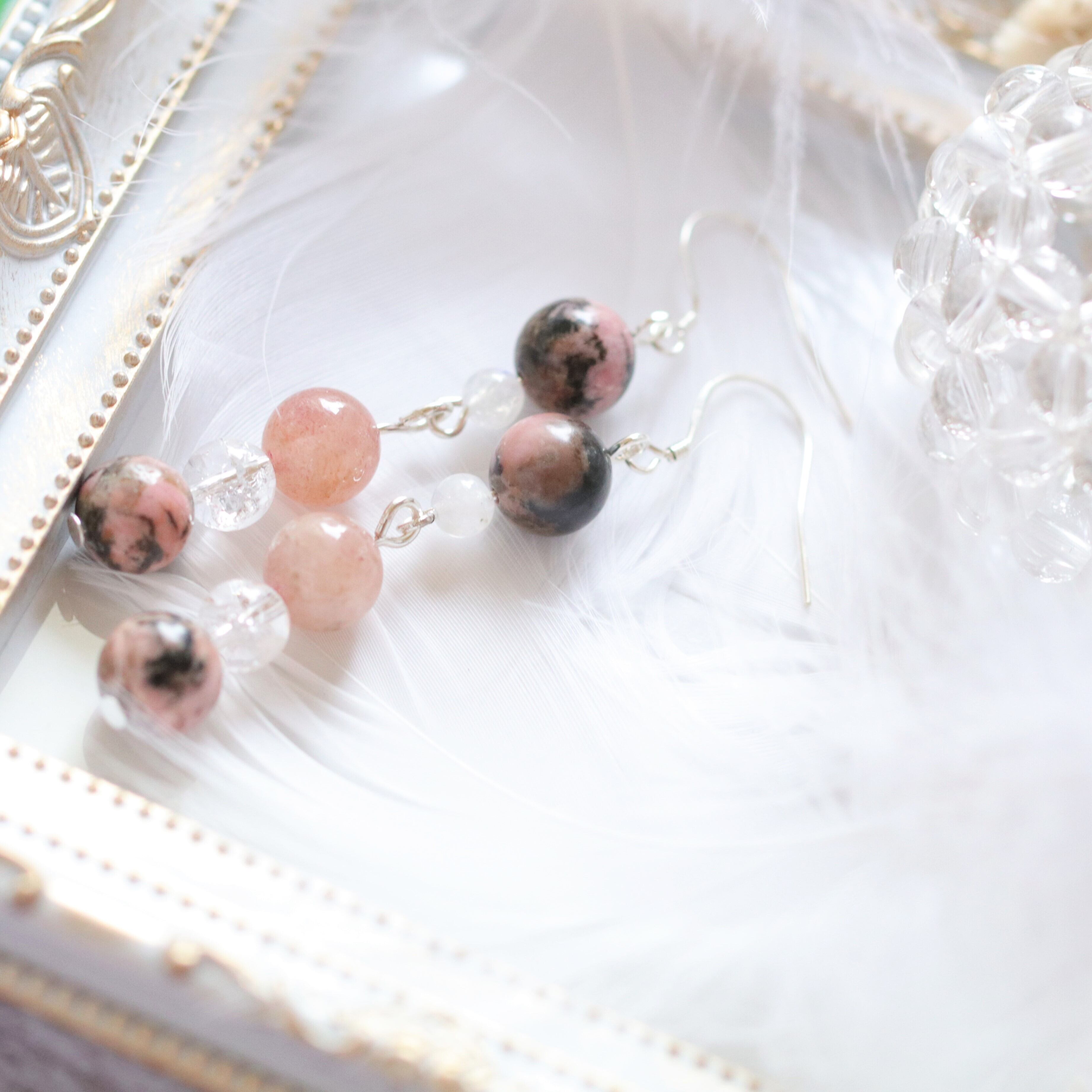 ロードナイトにストロベリークォーツ♡ふんわりピンクのピアス*イヤリング