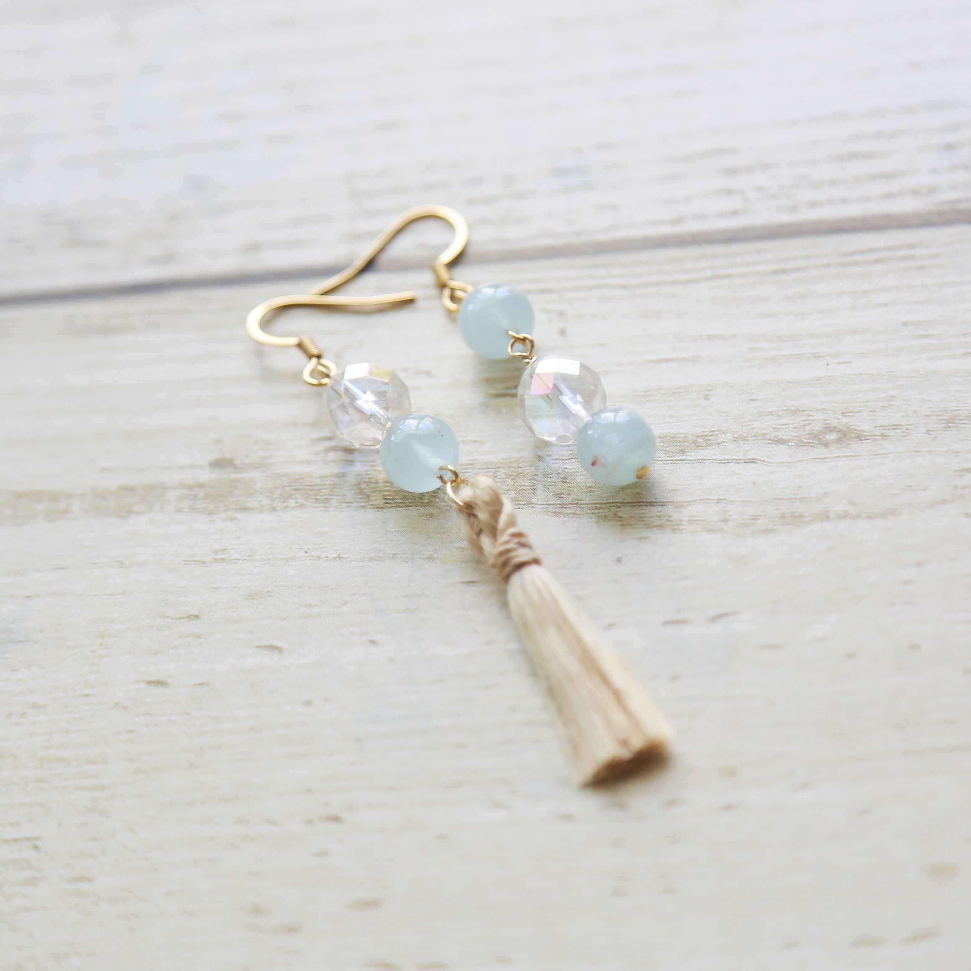 精麻+アクアマリン&水晶【幸せ、豊かさ、聡明さ】
