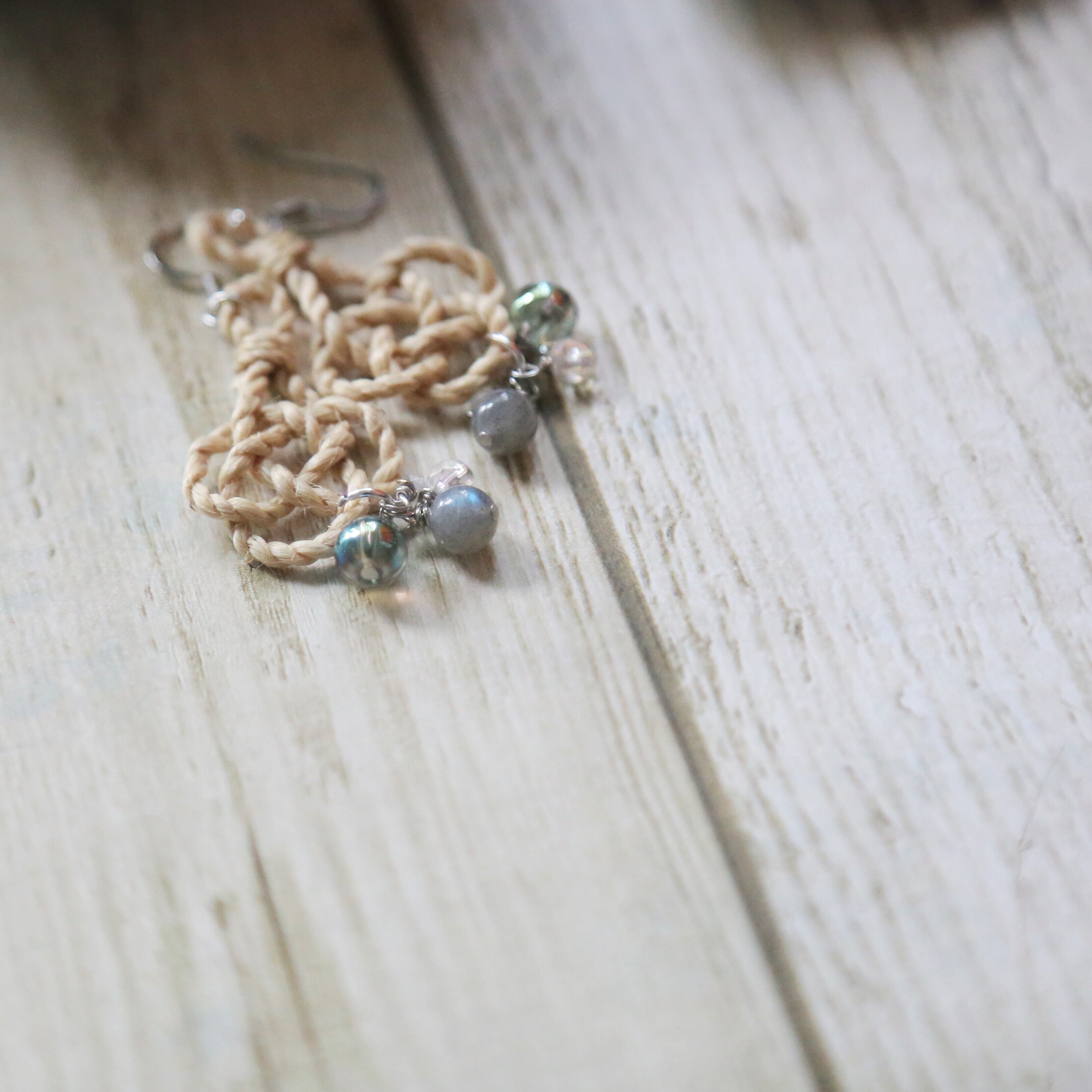 ラブラドライトと水晶、更にグリーンアクア色の水晶