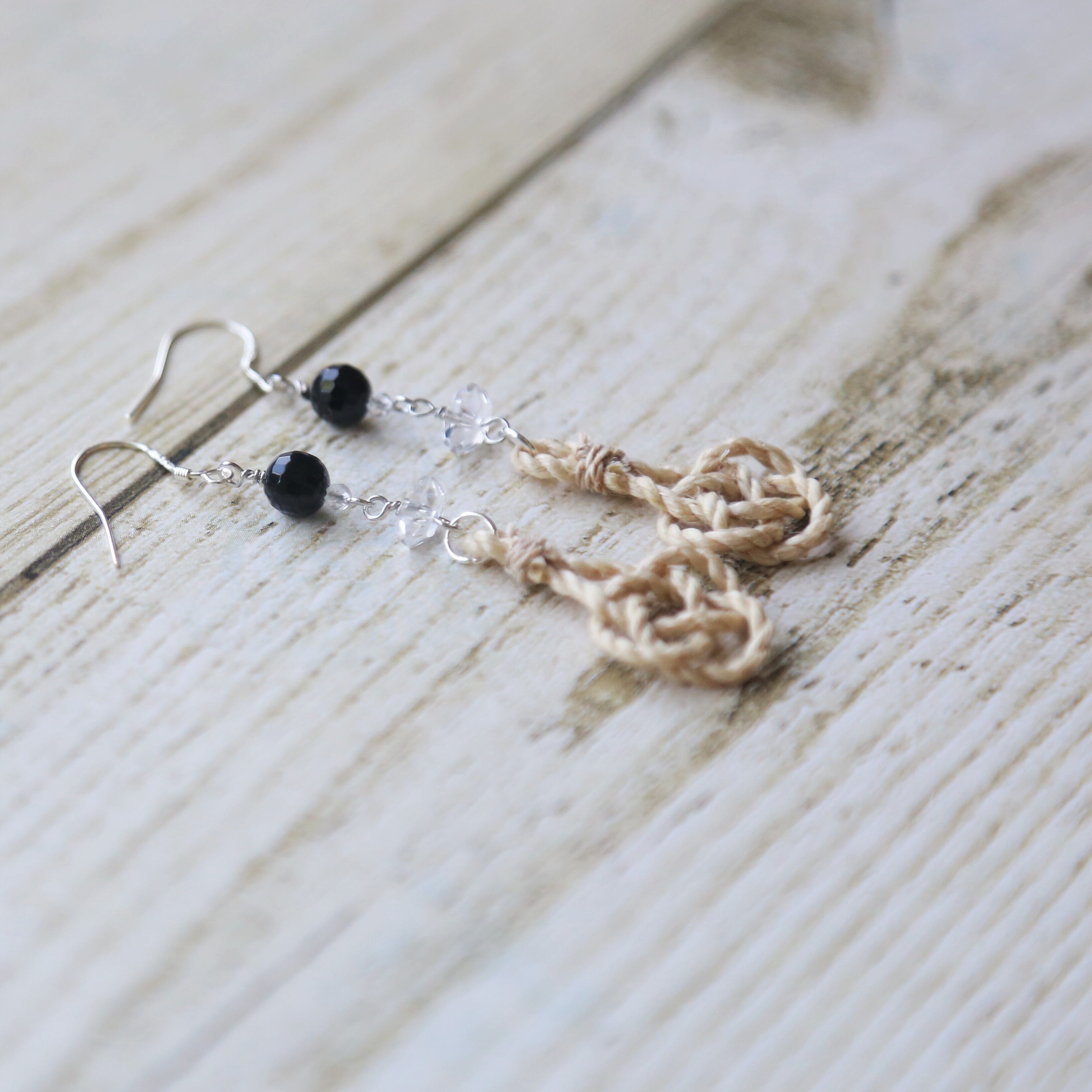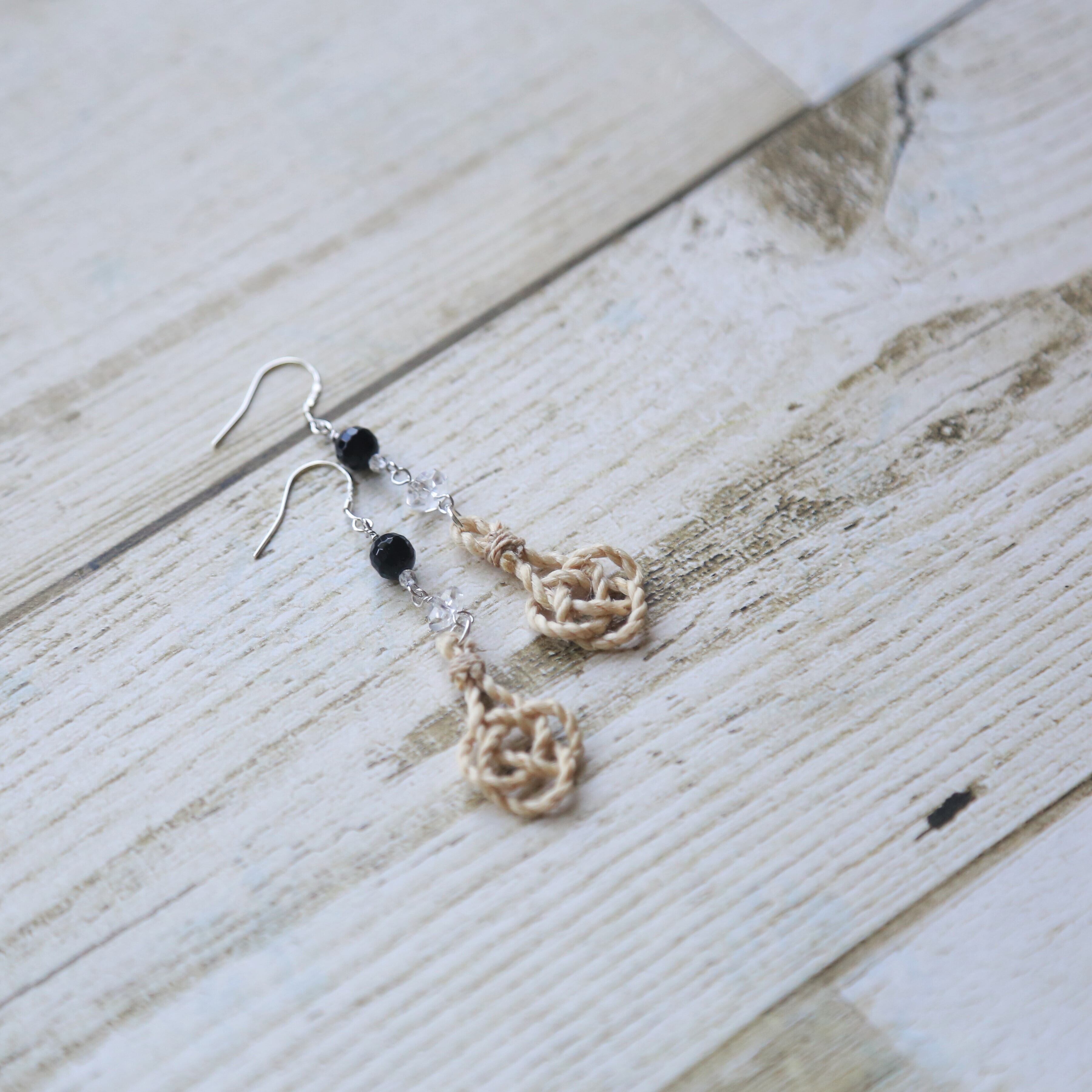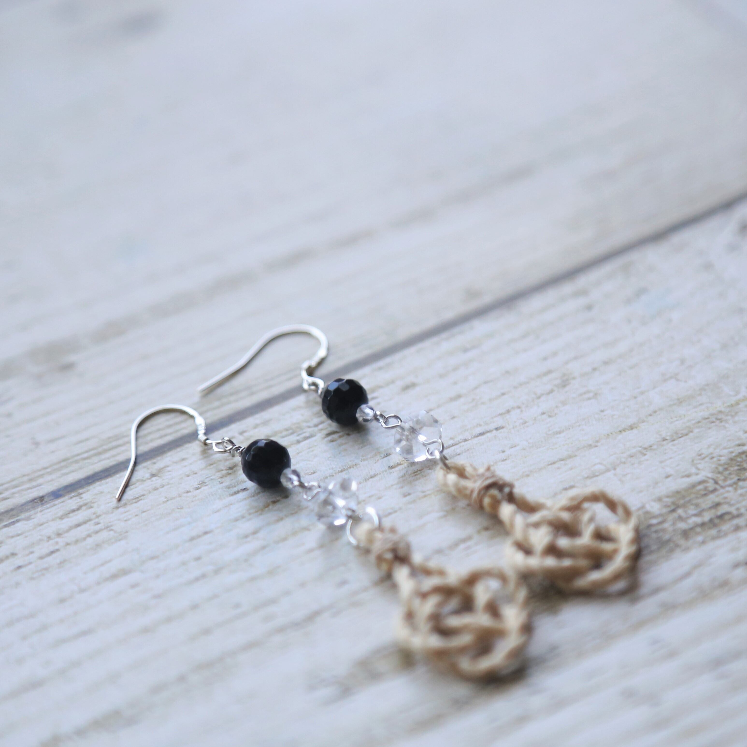 あわじ結びの精麻に、キラキラカットの水晶とオニキスのピアス(イヤリングに変更可)です♡