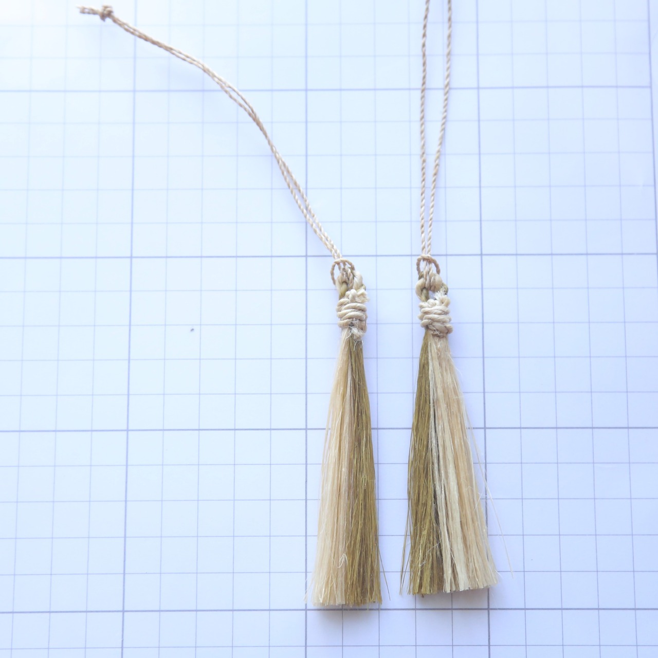 無染色の精麻に葛の葉染めの精麻を合わせ