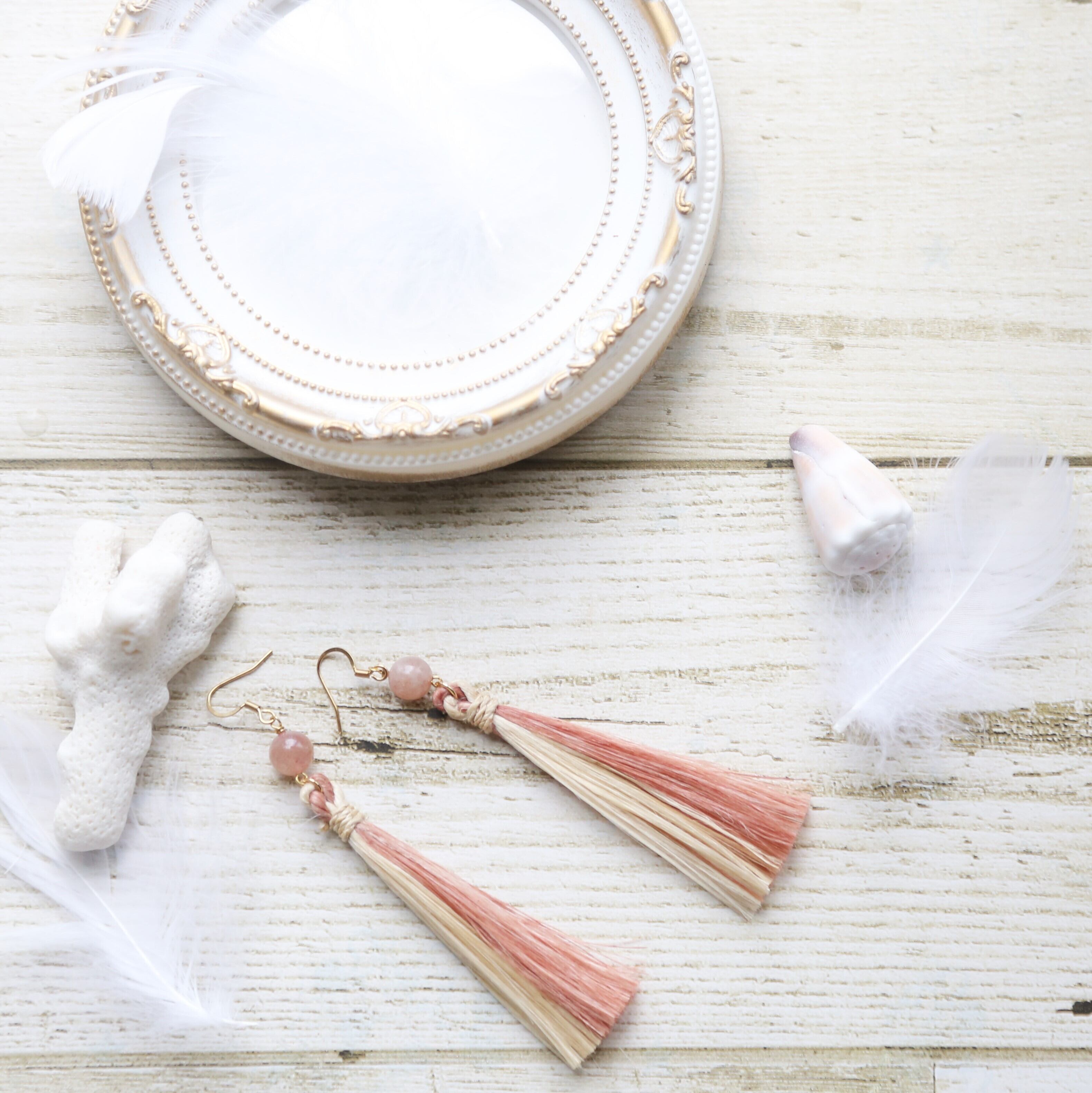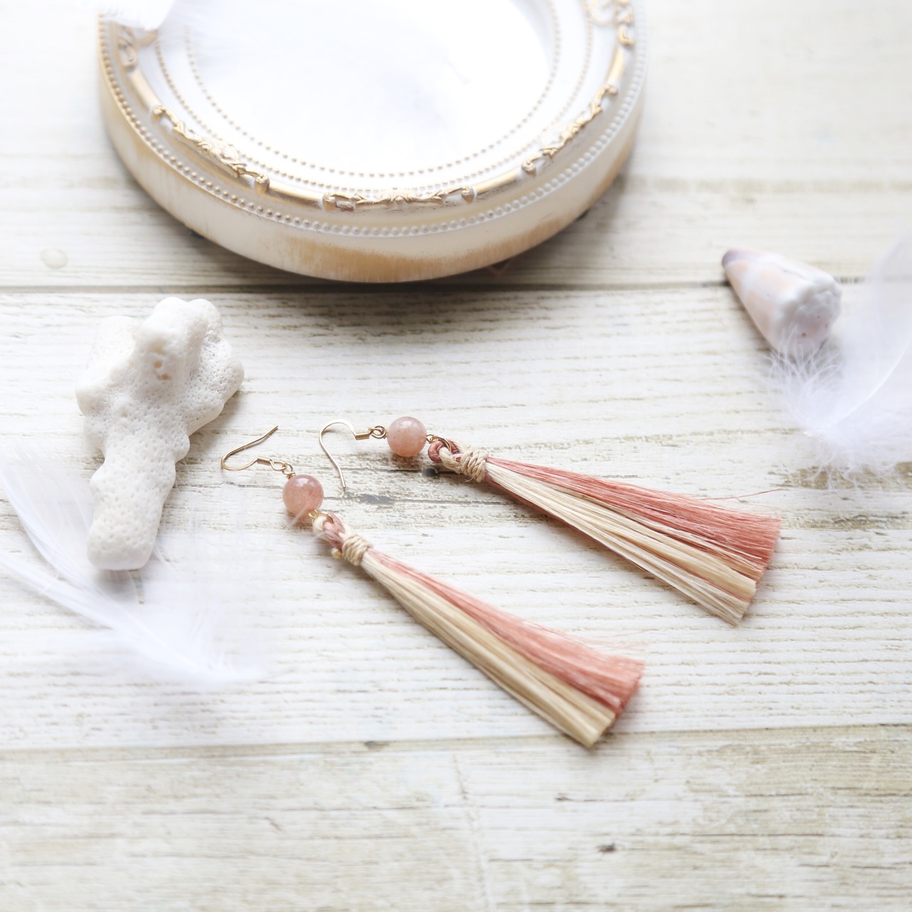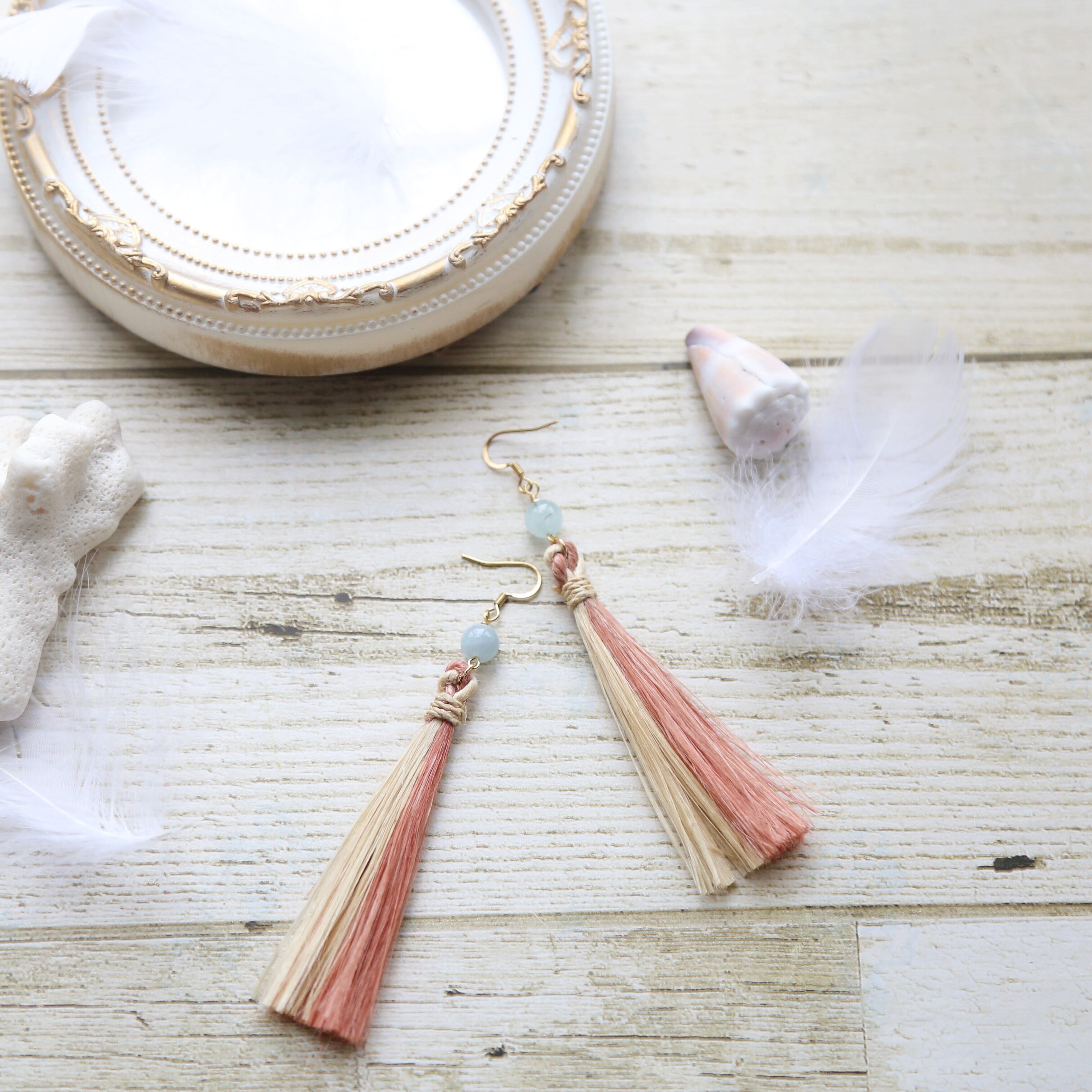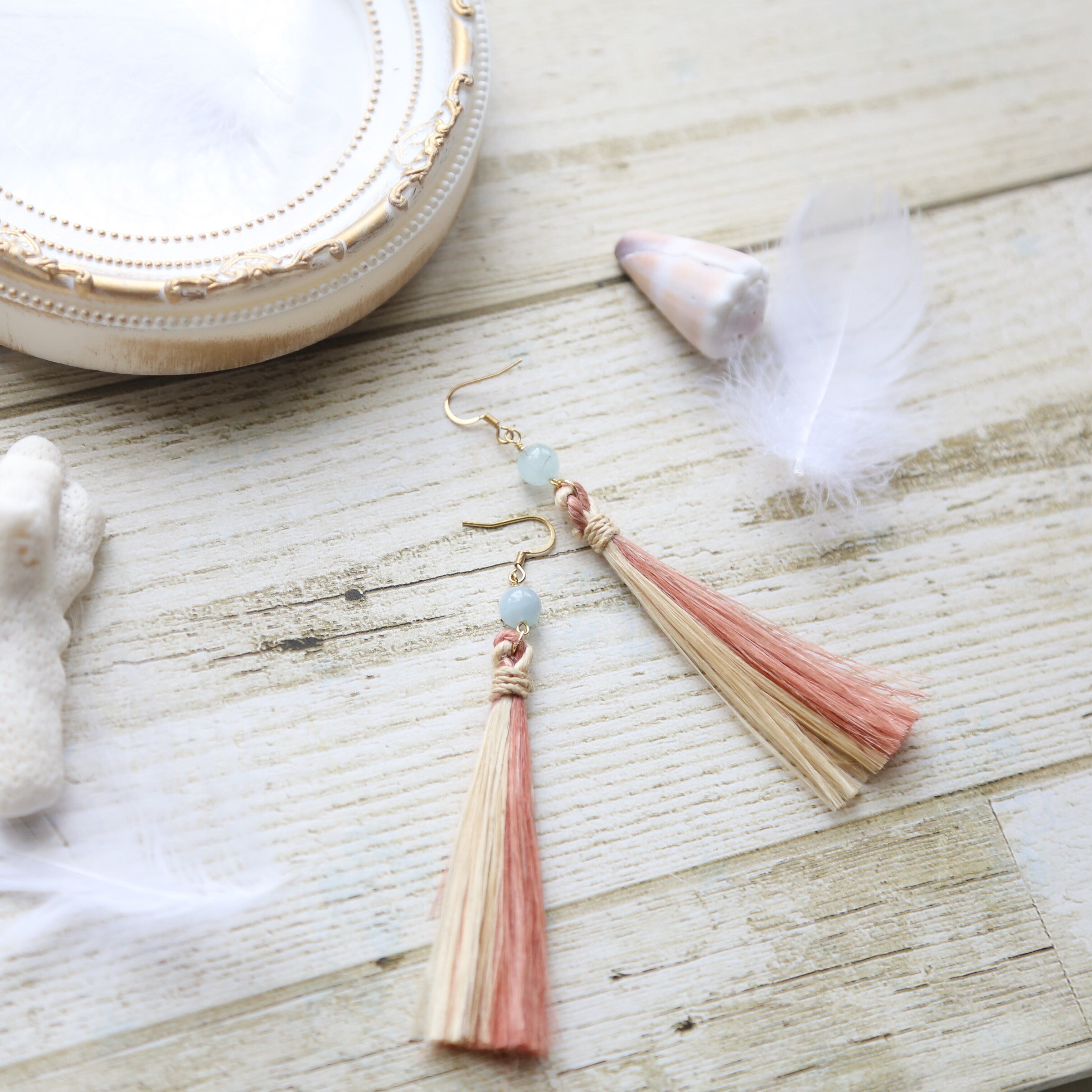 ビワの葉染め精麻~2色の精麻と天然石ピアス(イヤリングに変更可)