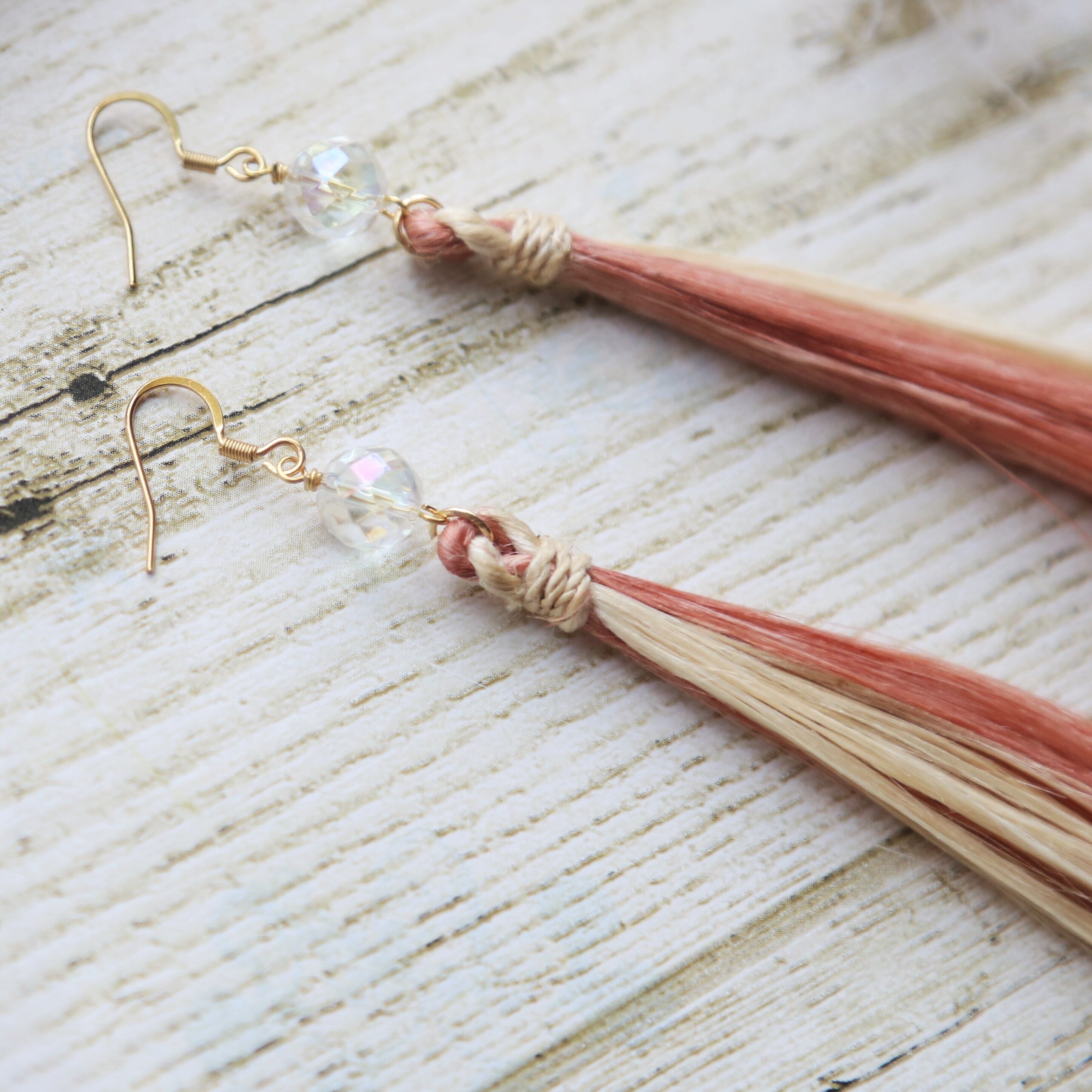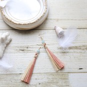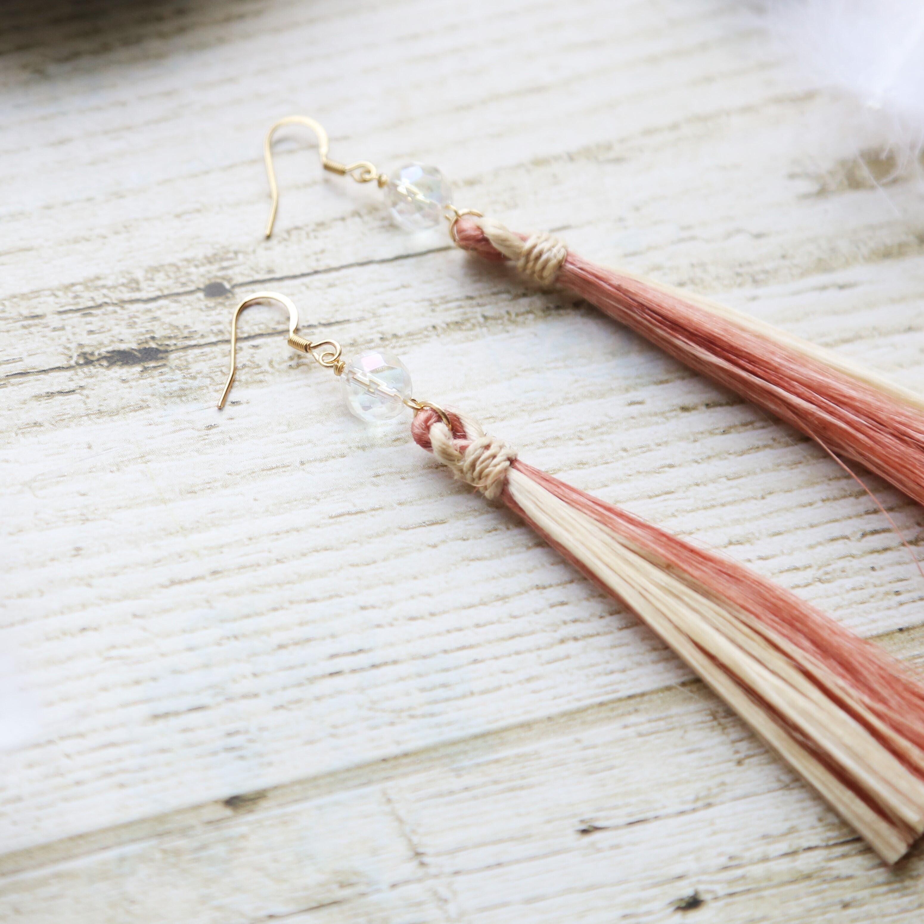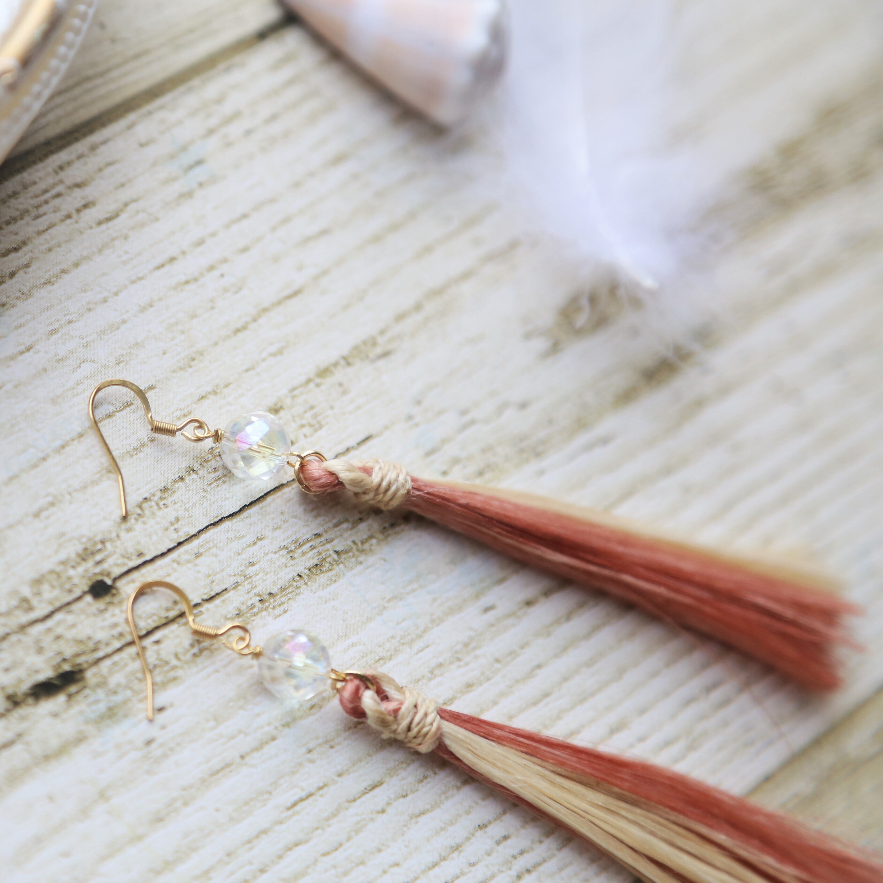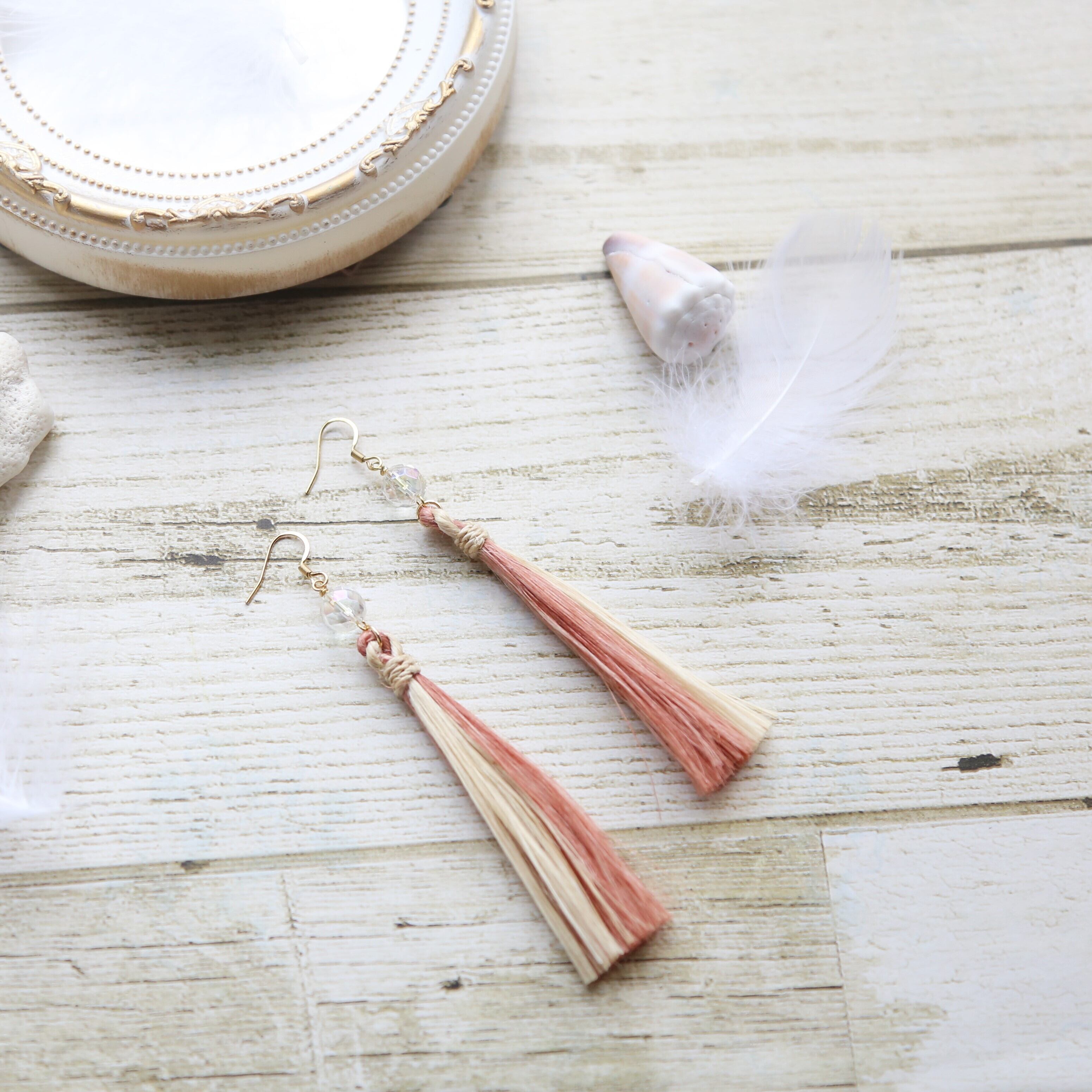 ビワの葉染め精麻~2色の精麻と天然石ピアス(イヤリングに変更可)