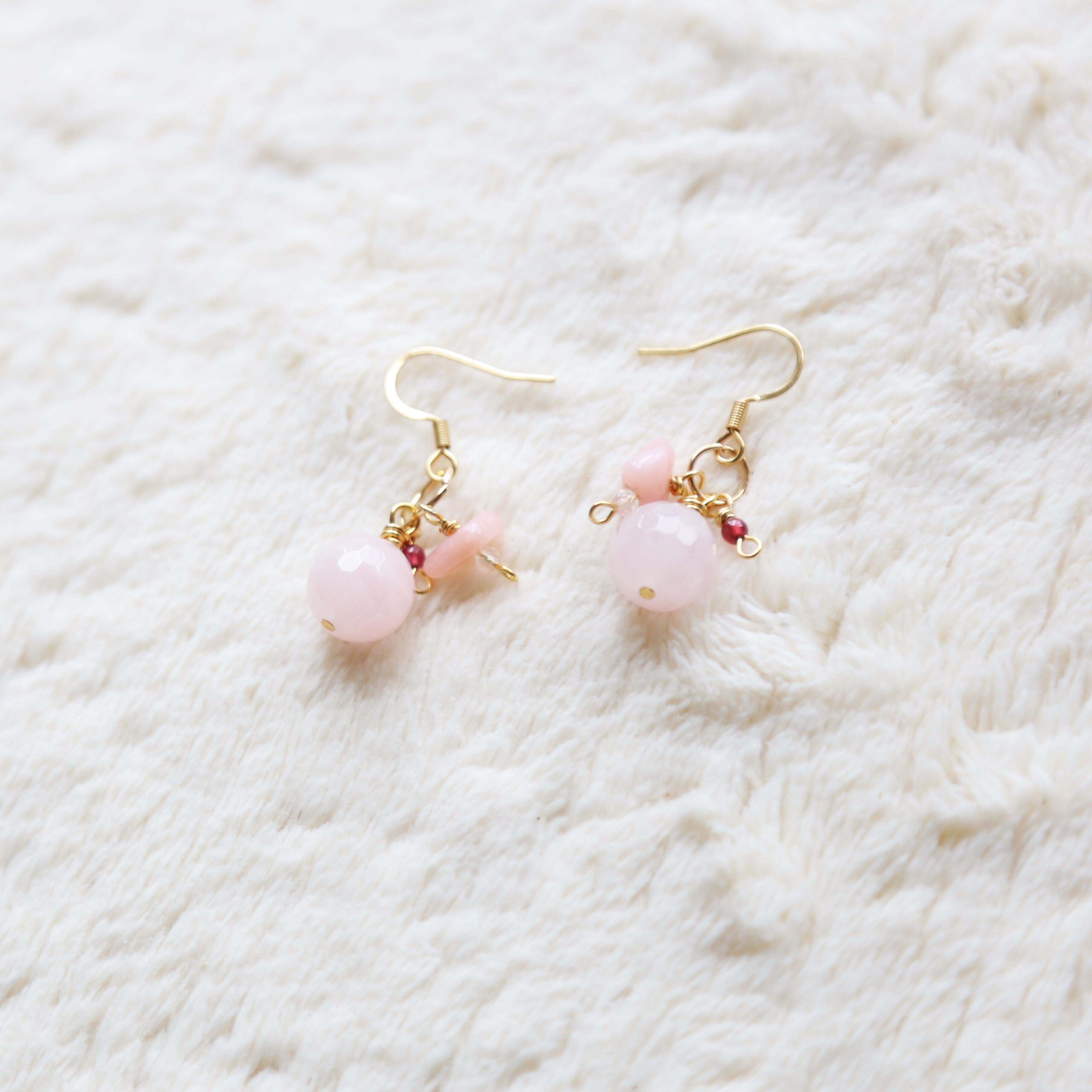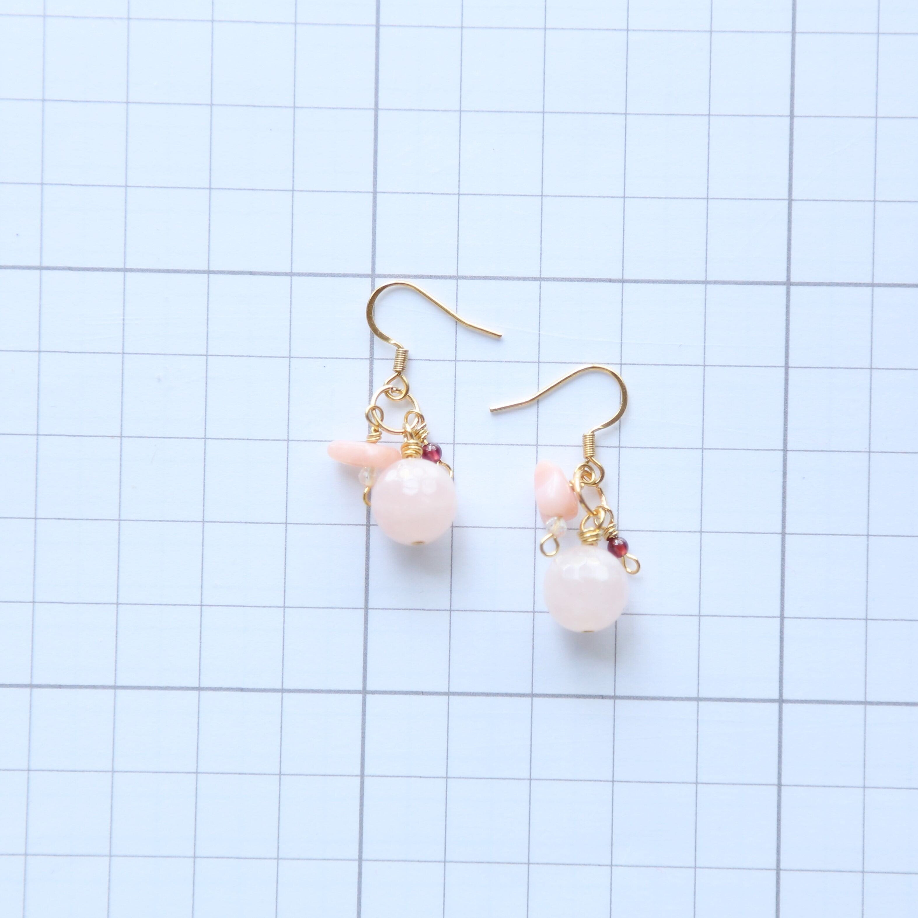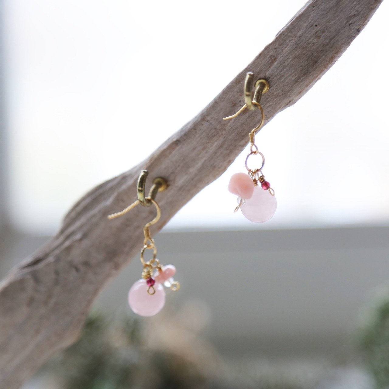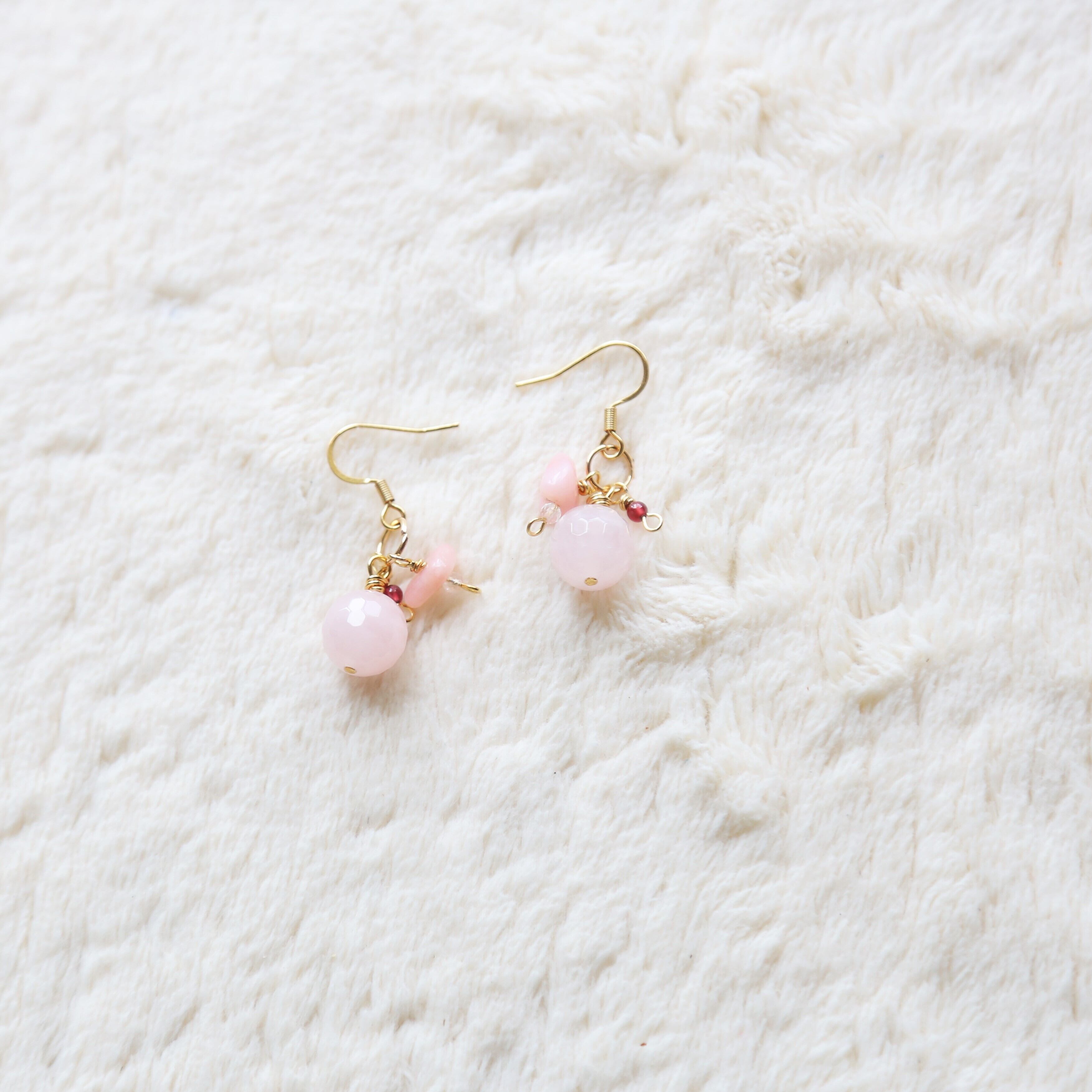 女性らしさ♡女性性♡ローズクォーツとガーネットのピアス