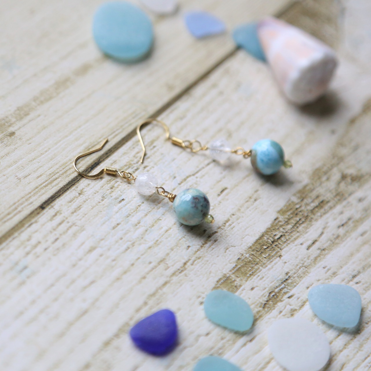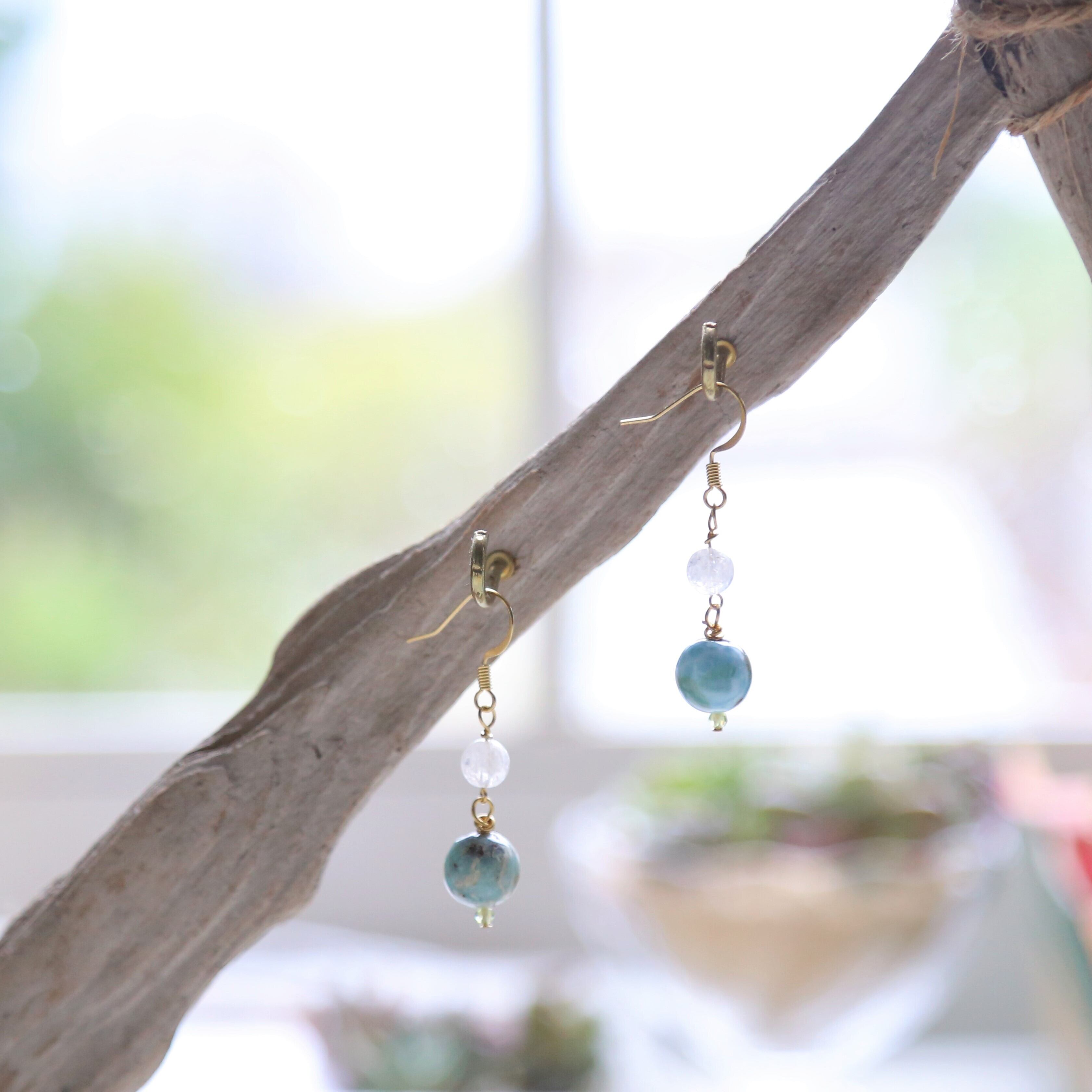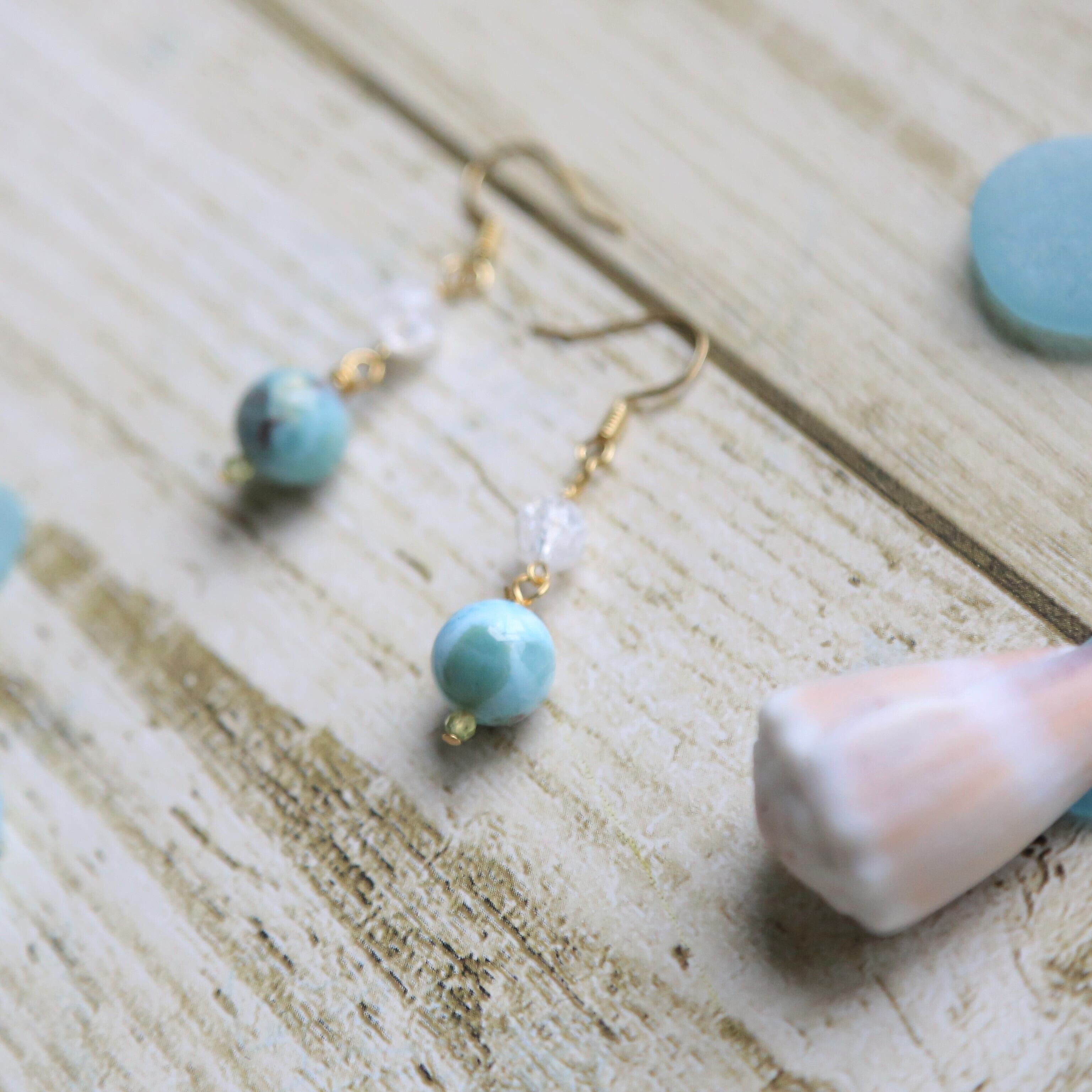 こちらで使用しているラリマーは水色一色ではない為少し手に取って頂きやすい価格♪