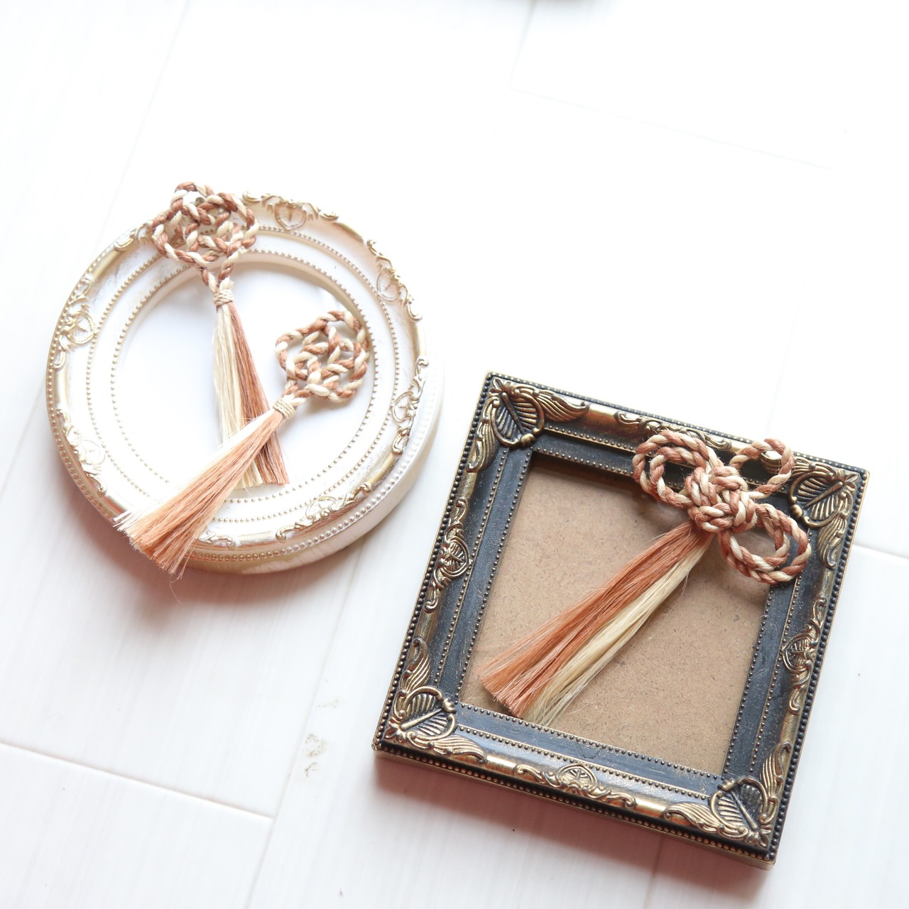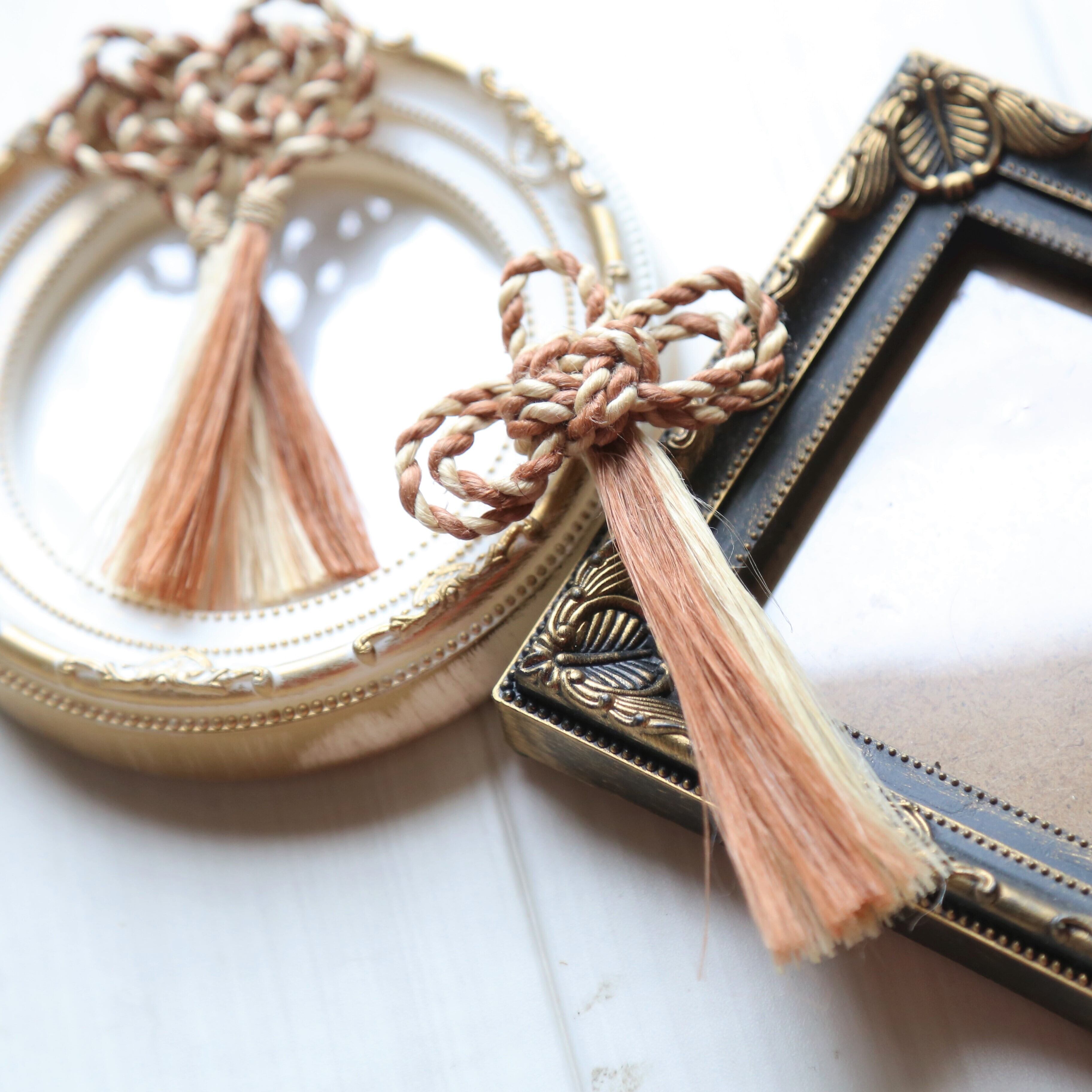 無染色の精麻に松ぼっくり染めの精麻を合わせました