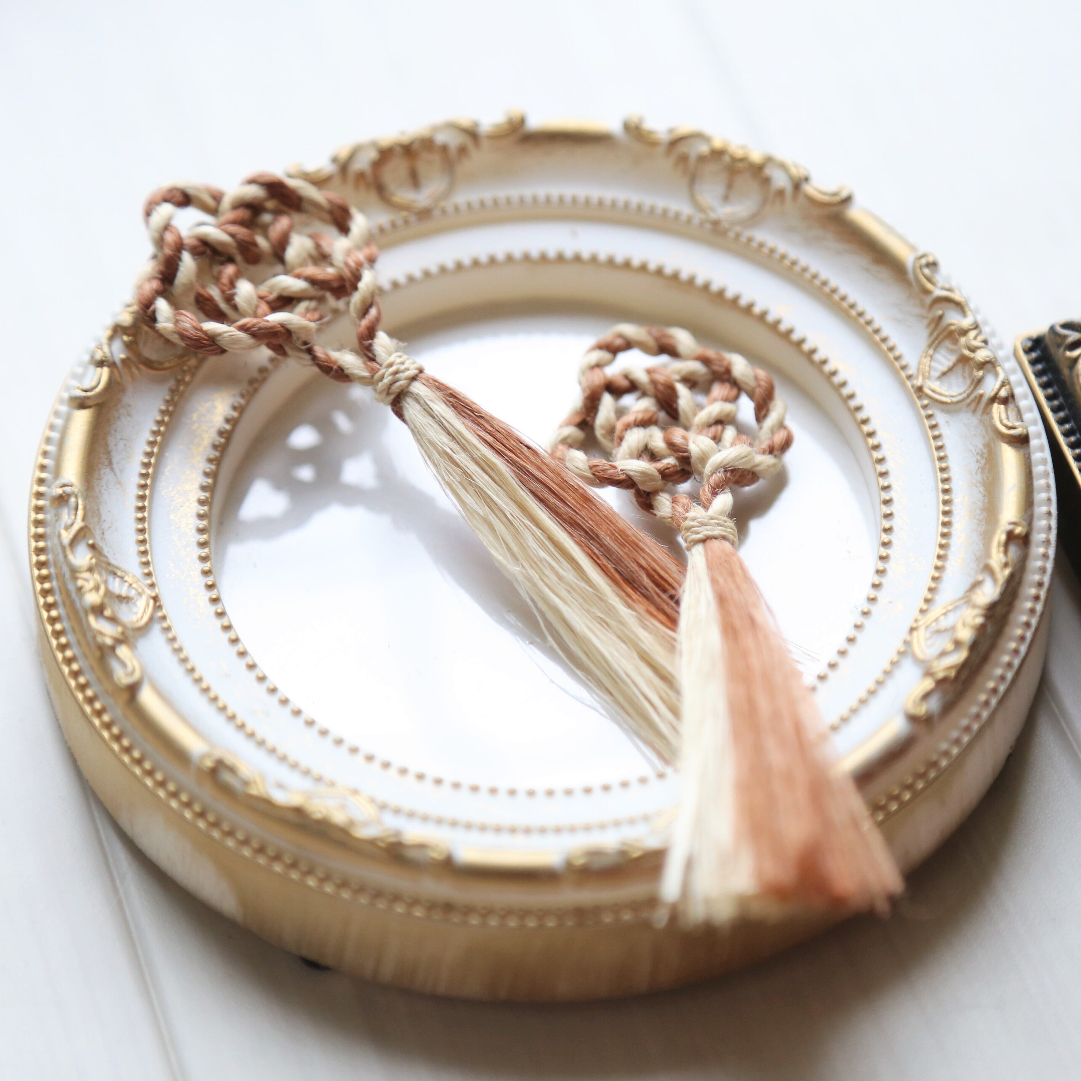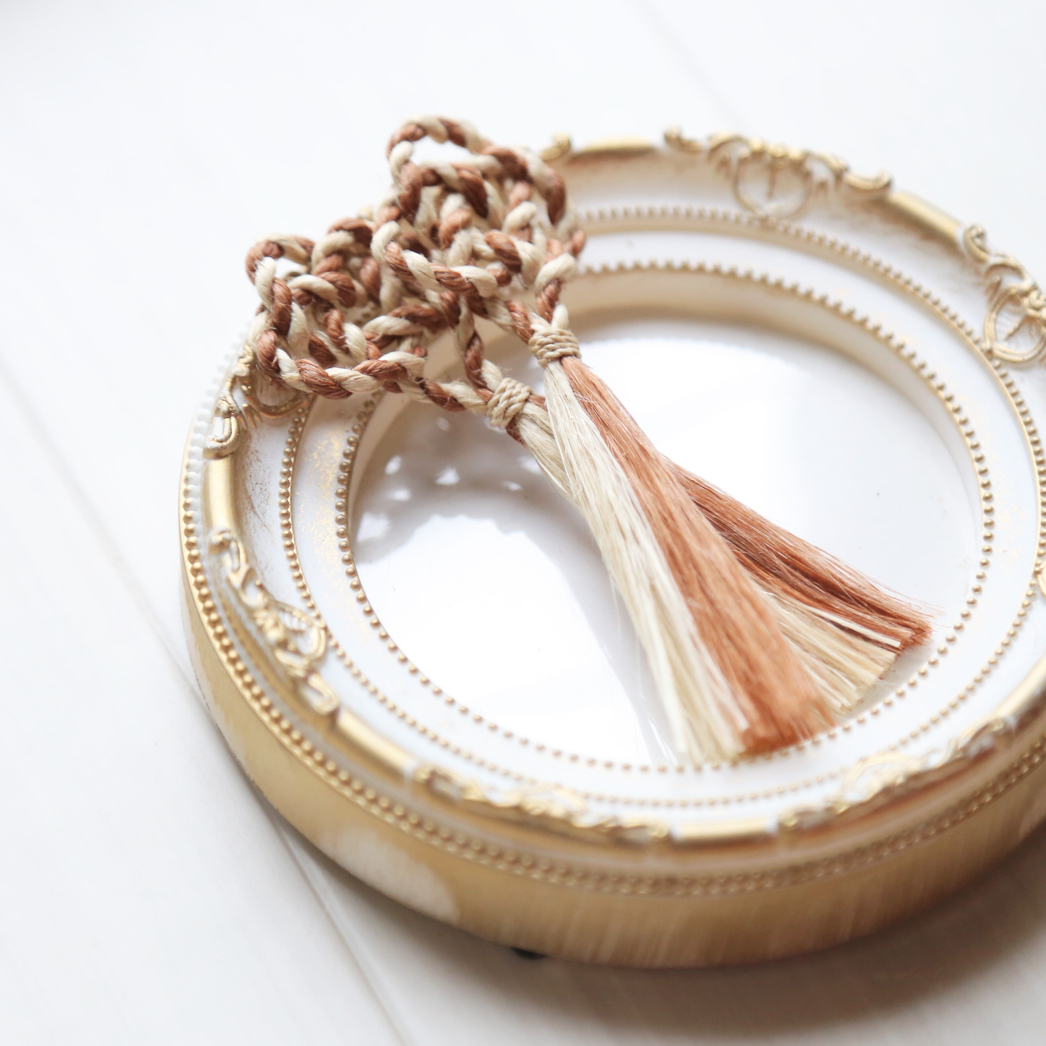 無染色の精麻に松ぼっくり染めの精麻を合わせました