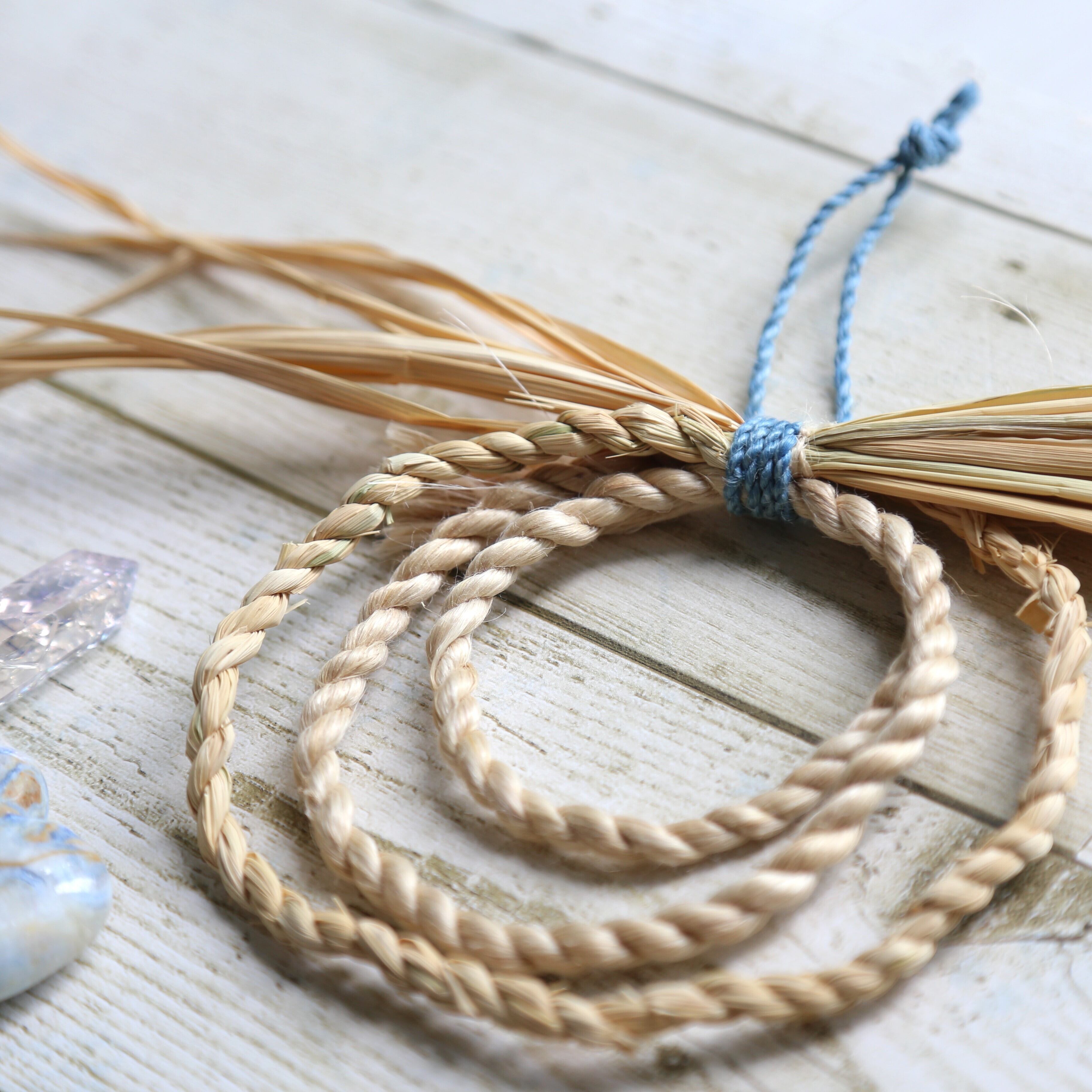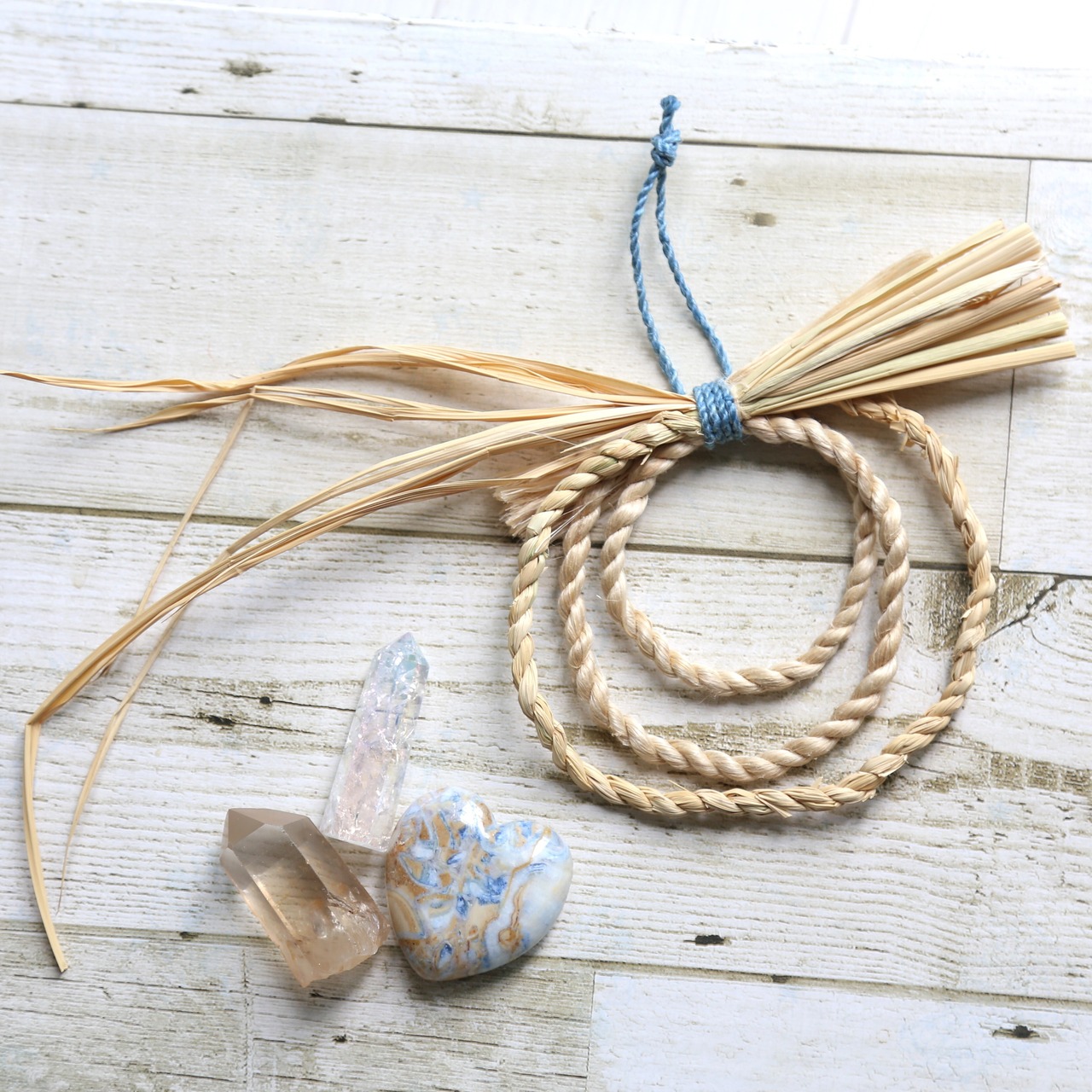 精麻と真菰、そして藍染の精麻で制作いたしました