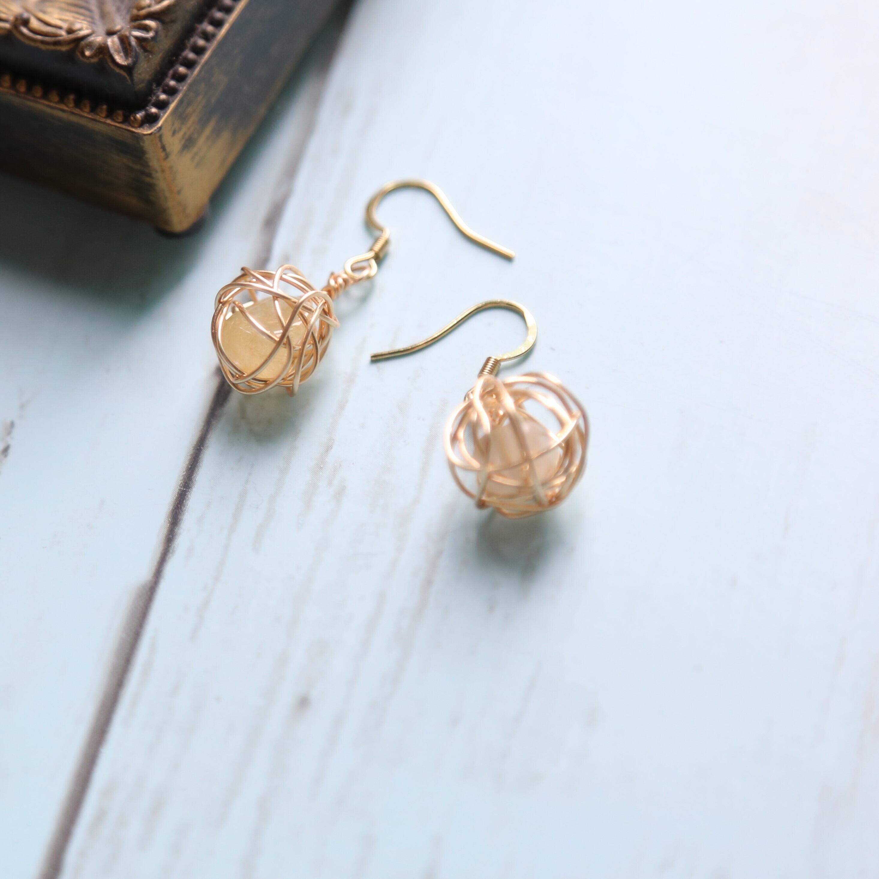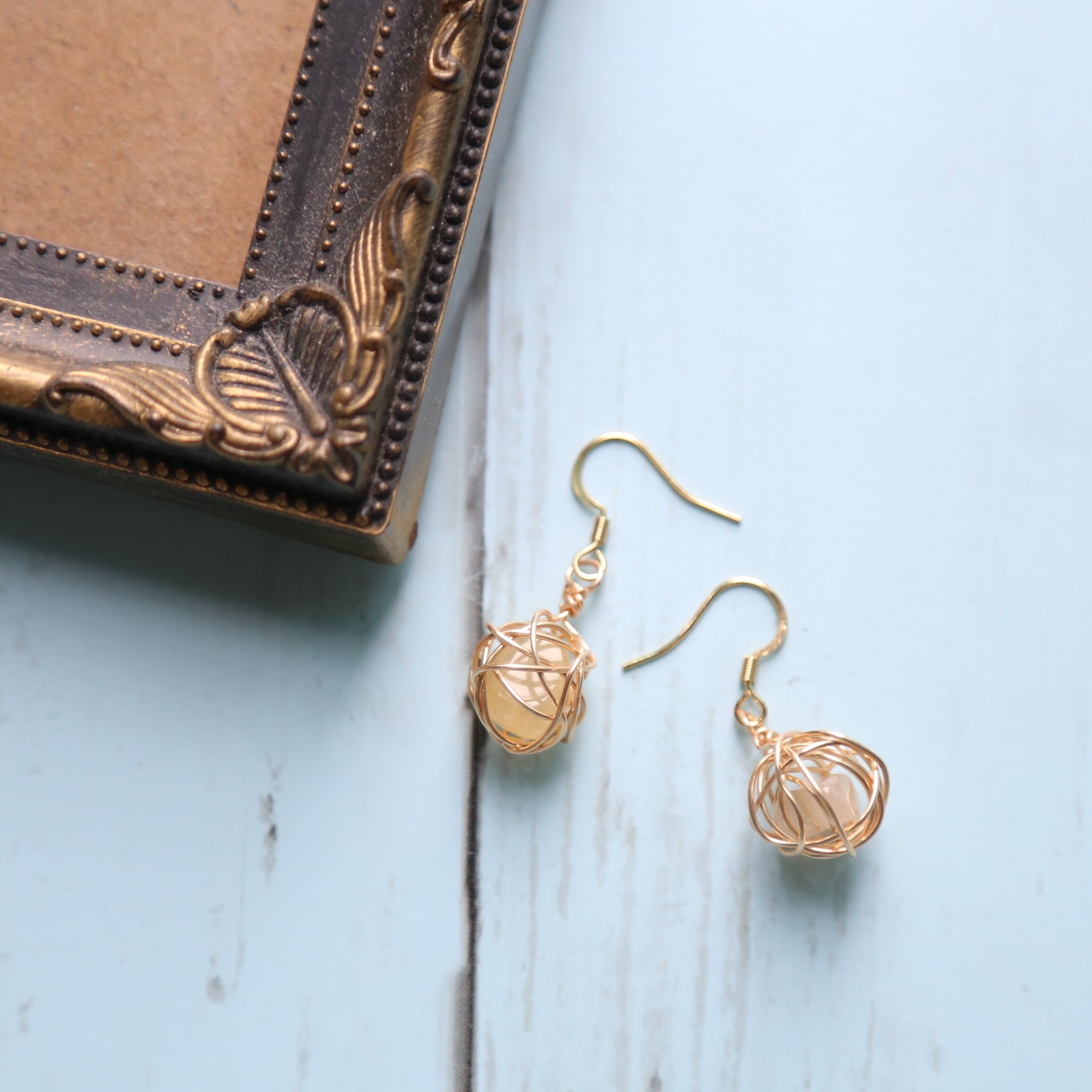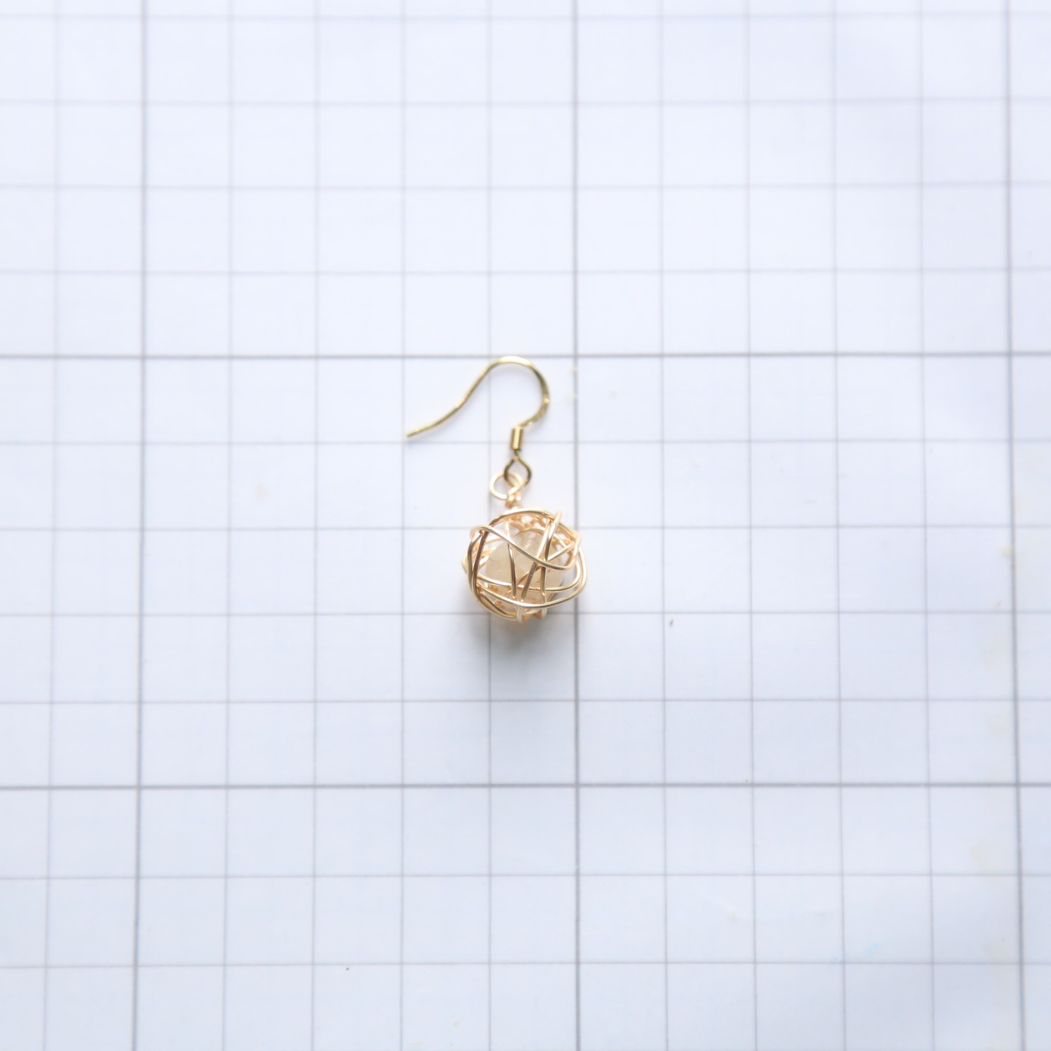 こちらはルチルクォーツのさざれ石をワイヤーで巻いたピアスです