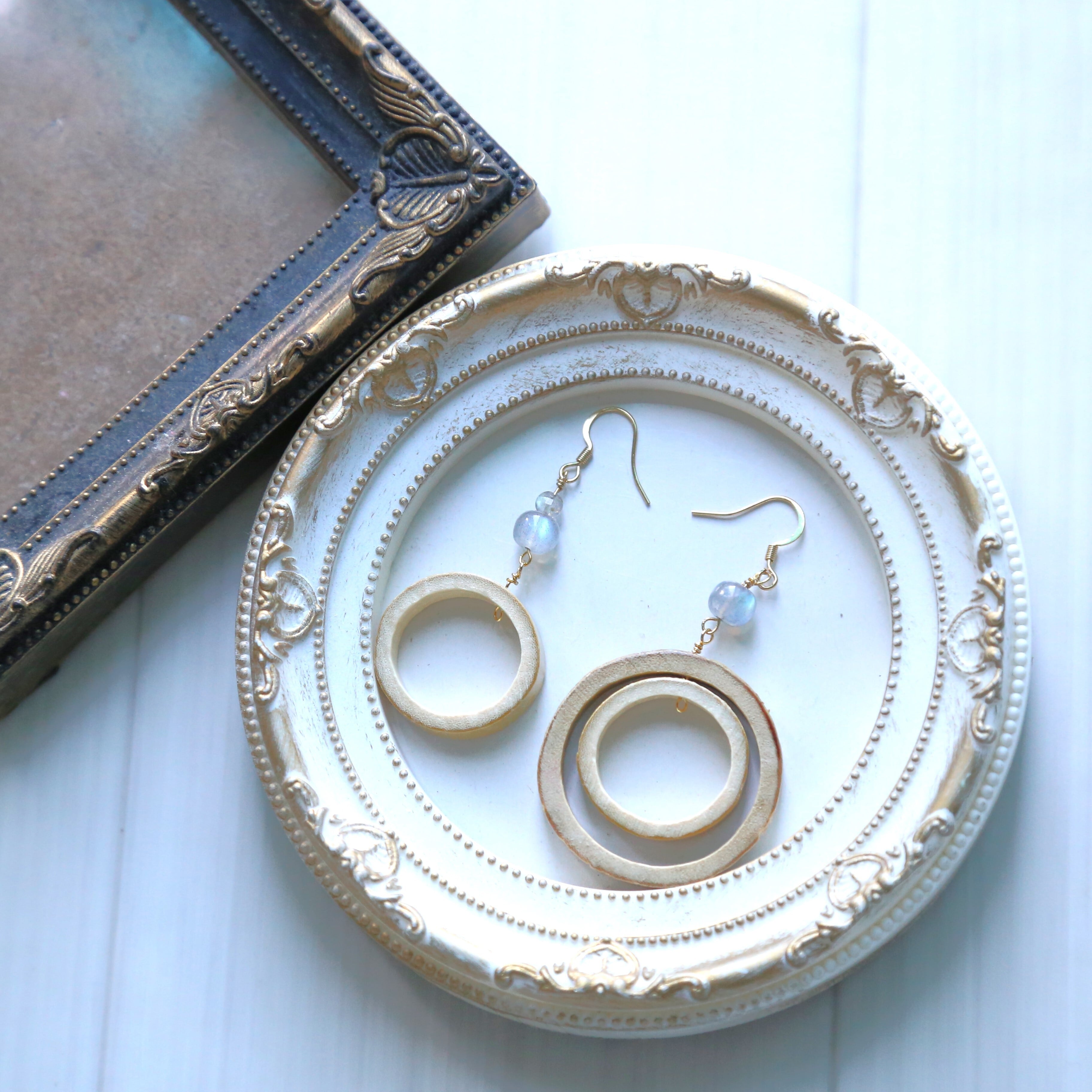 竹とラブラドライトのアシンメトリーピアス☆