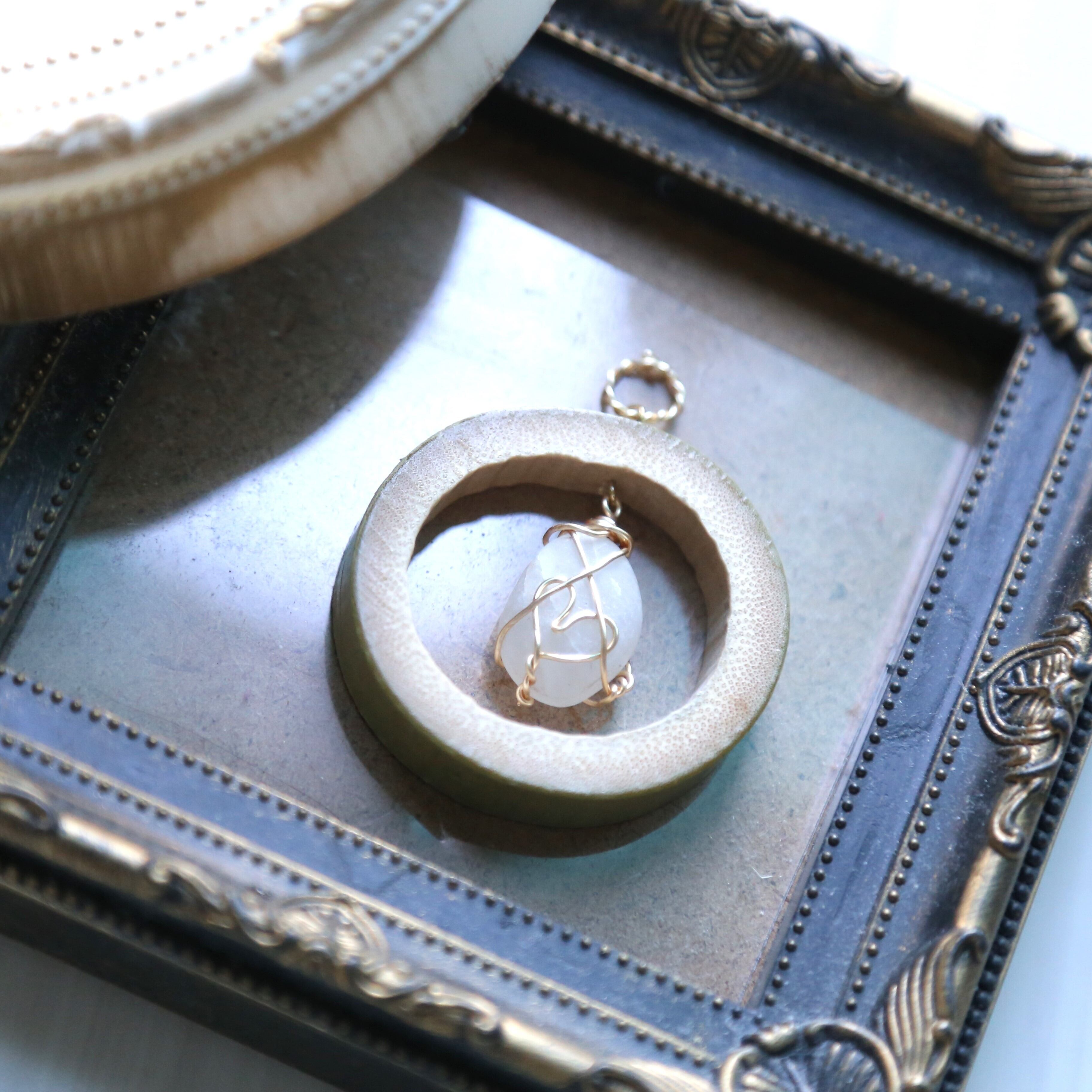 淡路島の水晶の原石をワイヤーラップでハート♡ペンダントに
