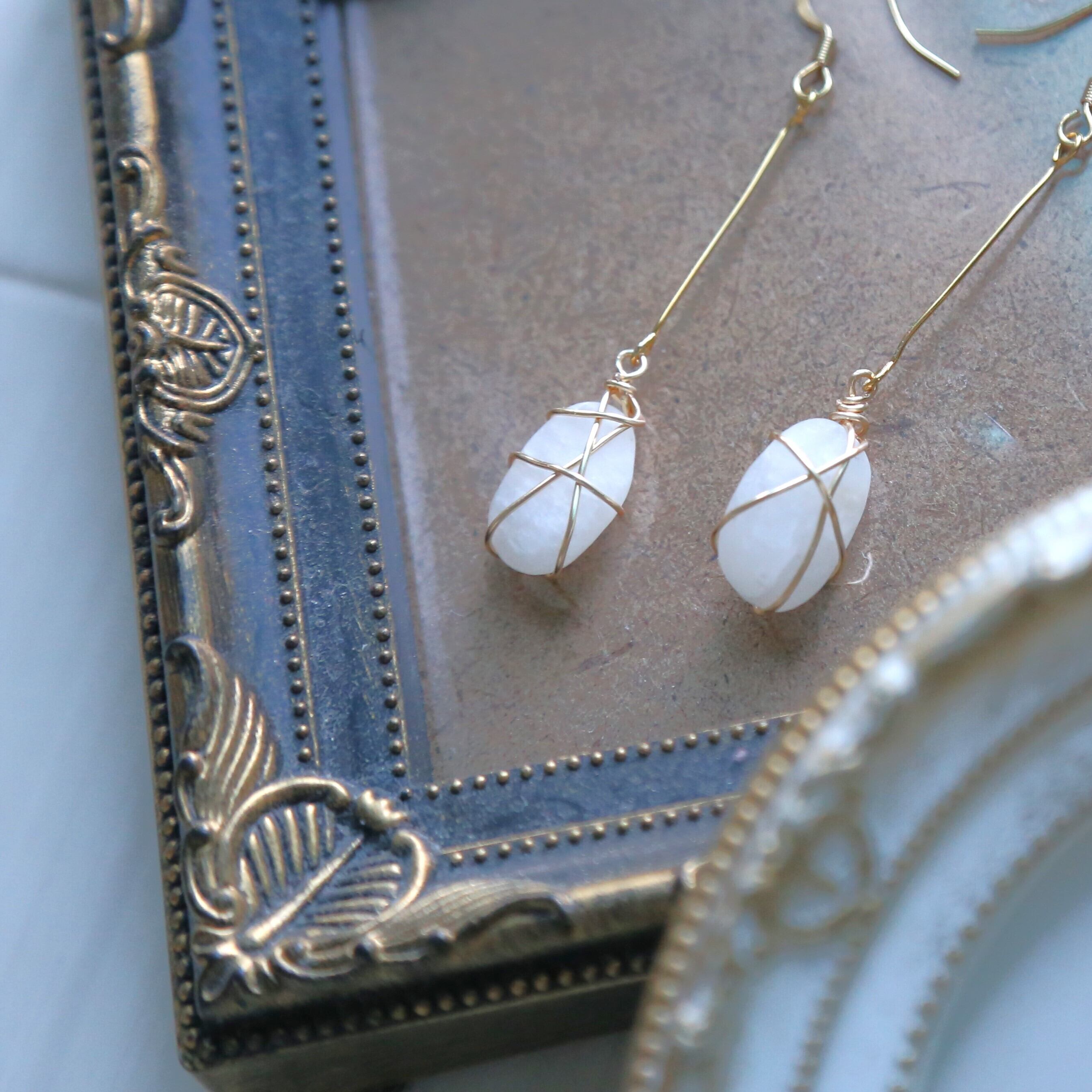 淡路島の水晶の原石をワイヤーラップでピアスに°˖✧