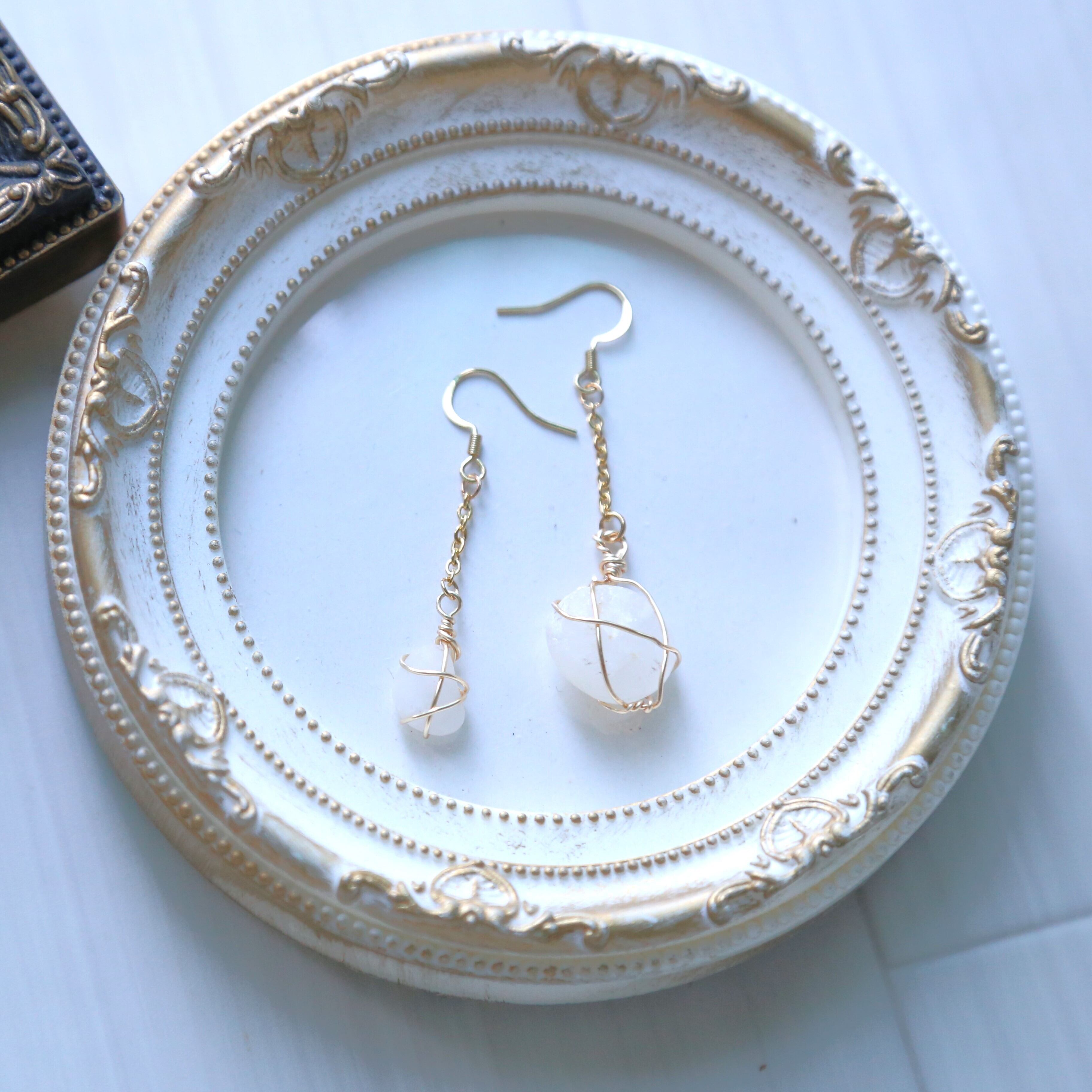 淡路島の水晶の原石をワイヤーラップでピアスに°˖✧