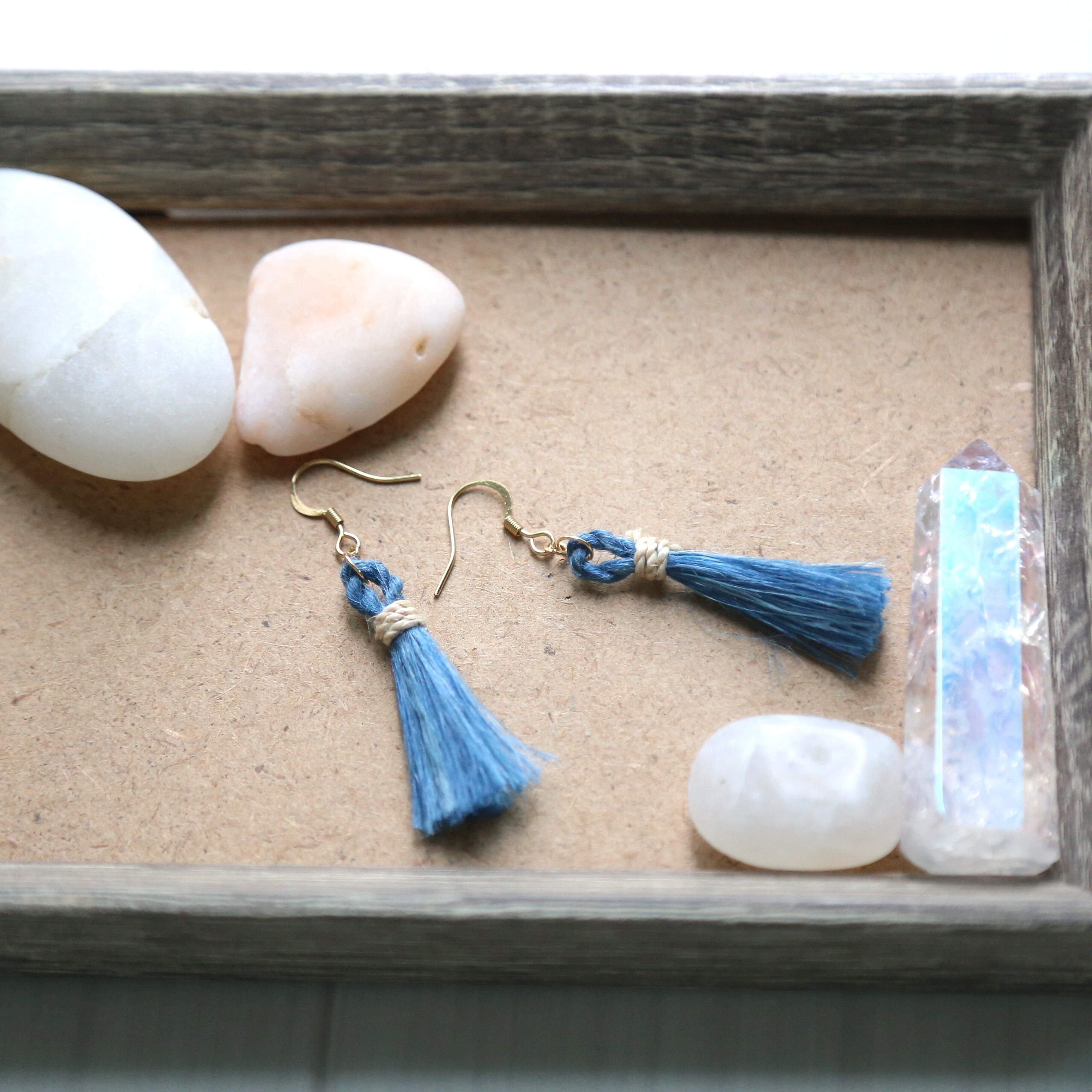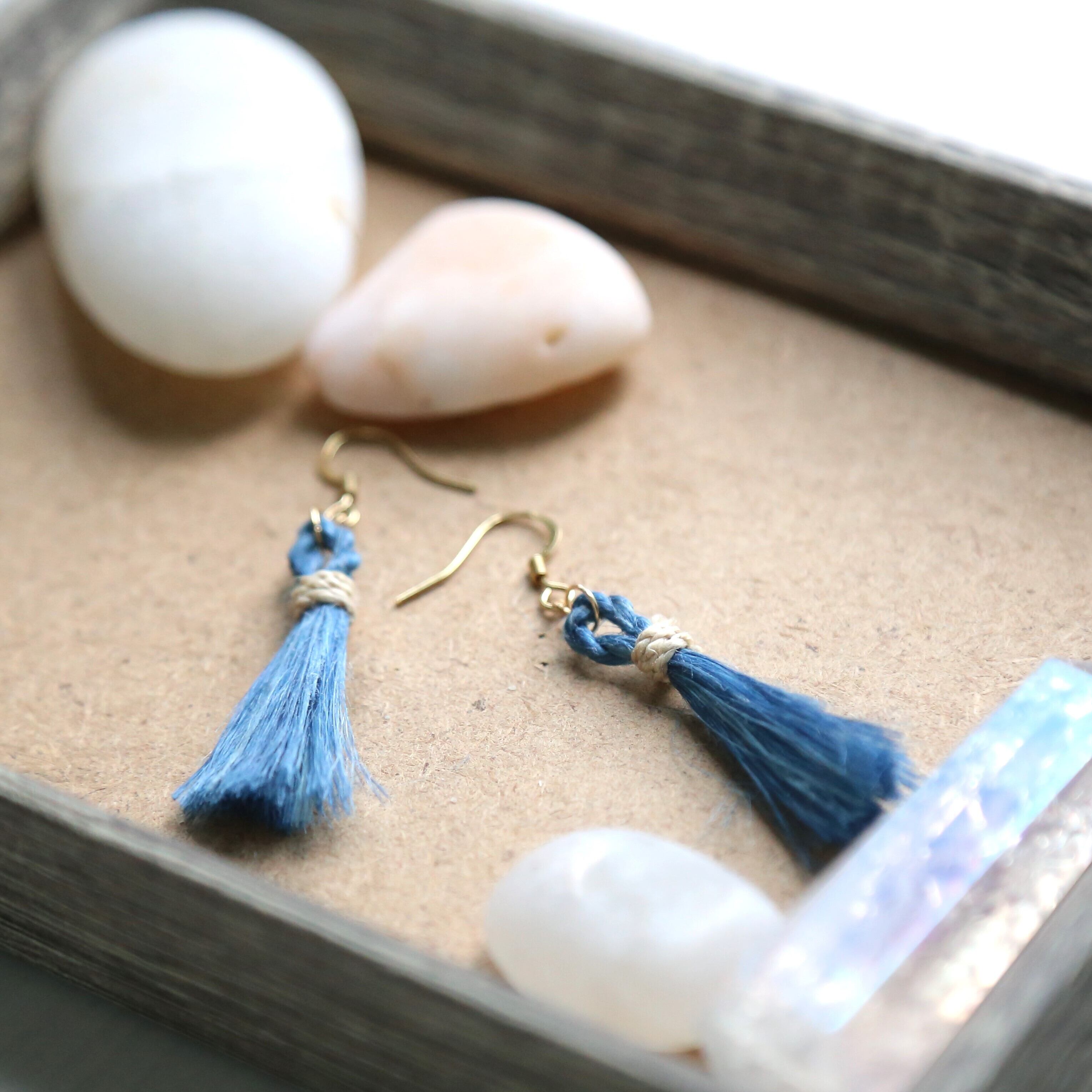 藍染め精麻のシンプルピアス